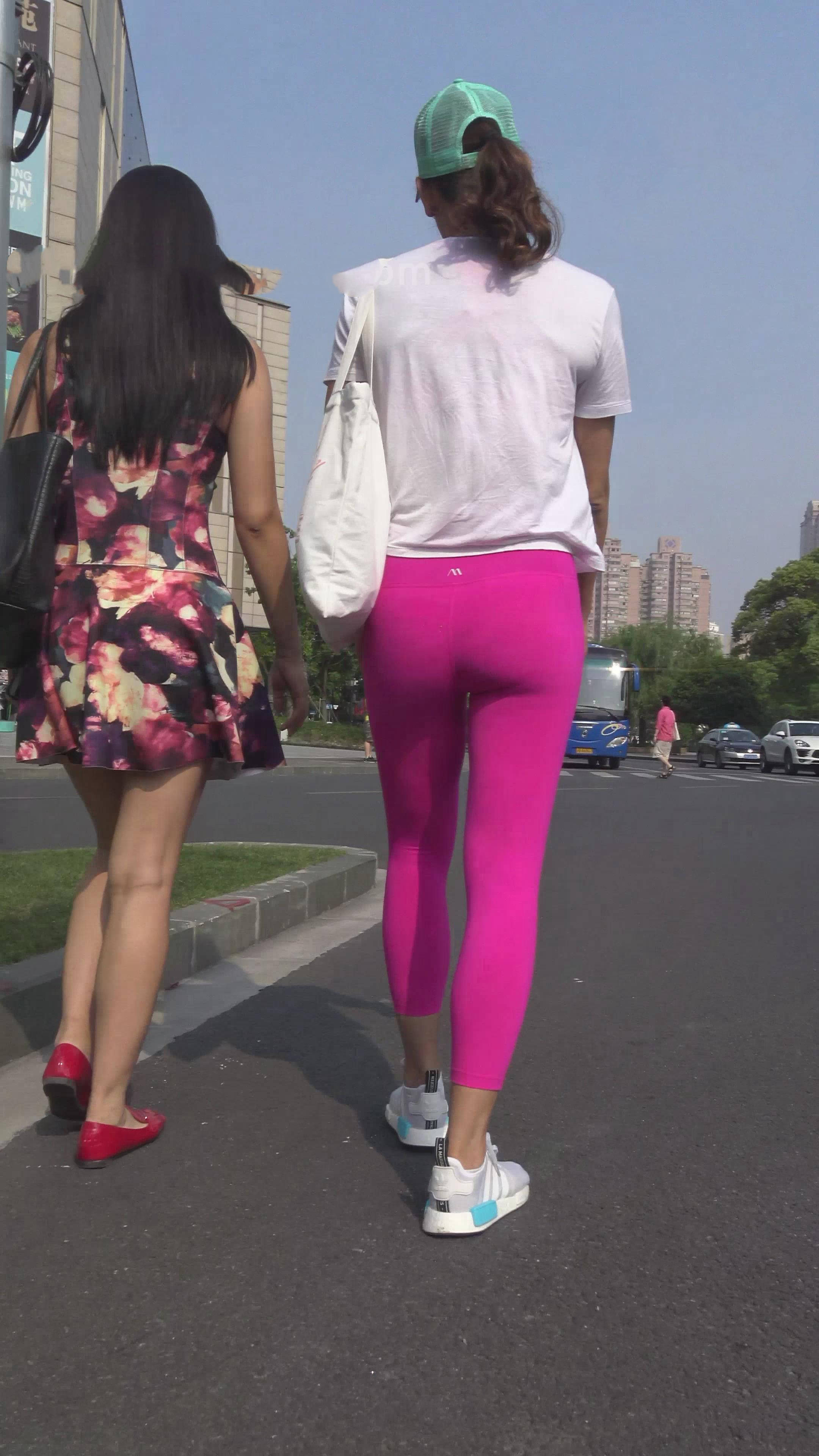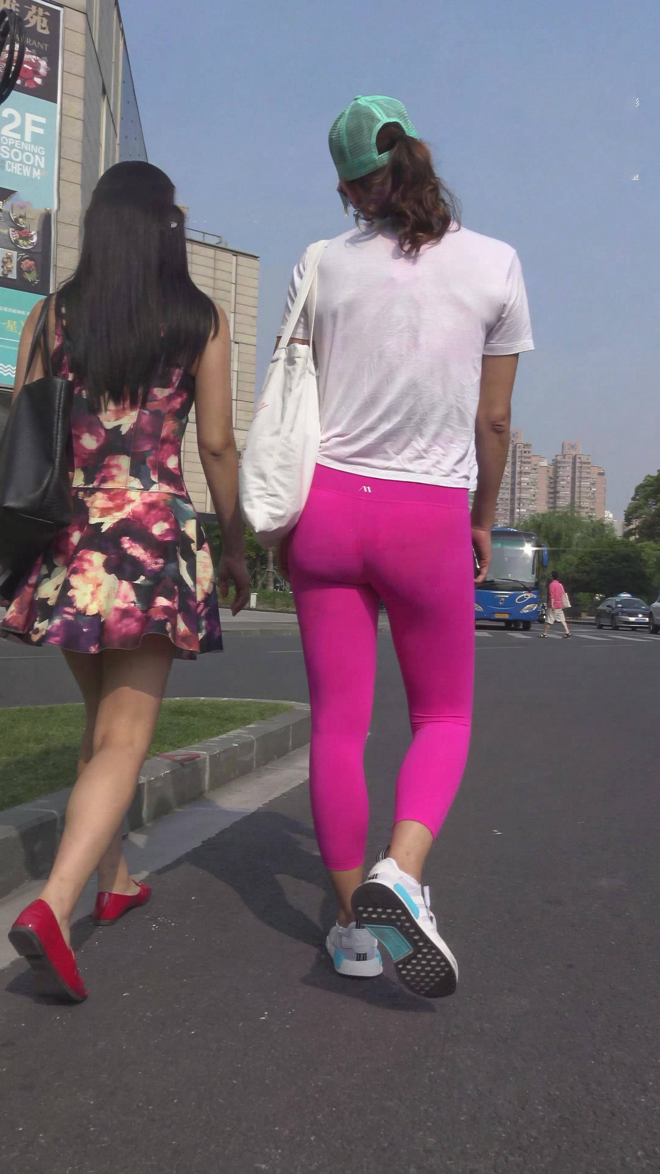 4k-粉色紧身运动裤苗条美女,半透明T恤文胸可见真诱惑 编号7435