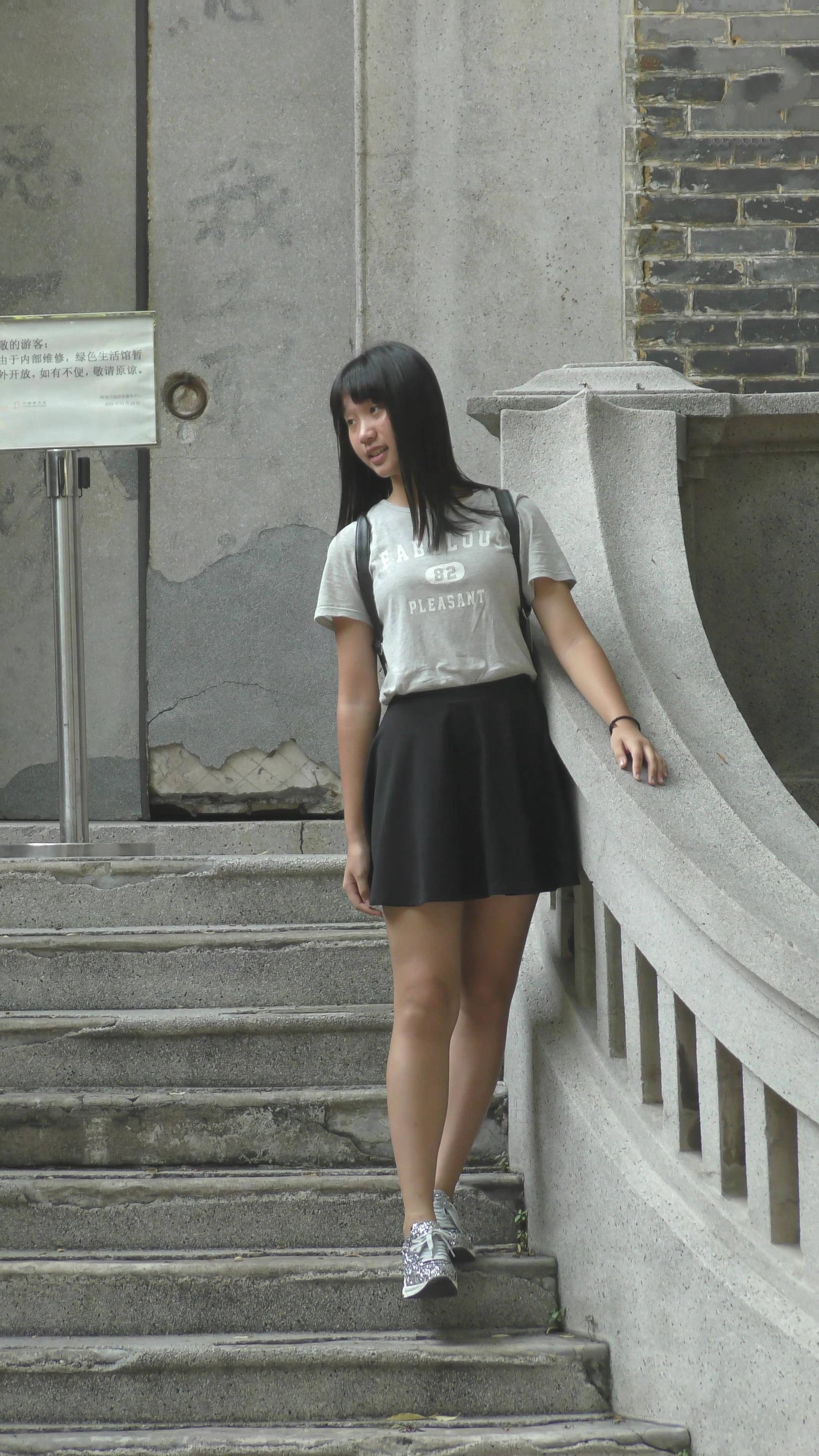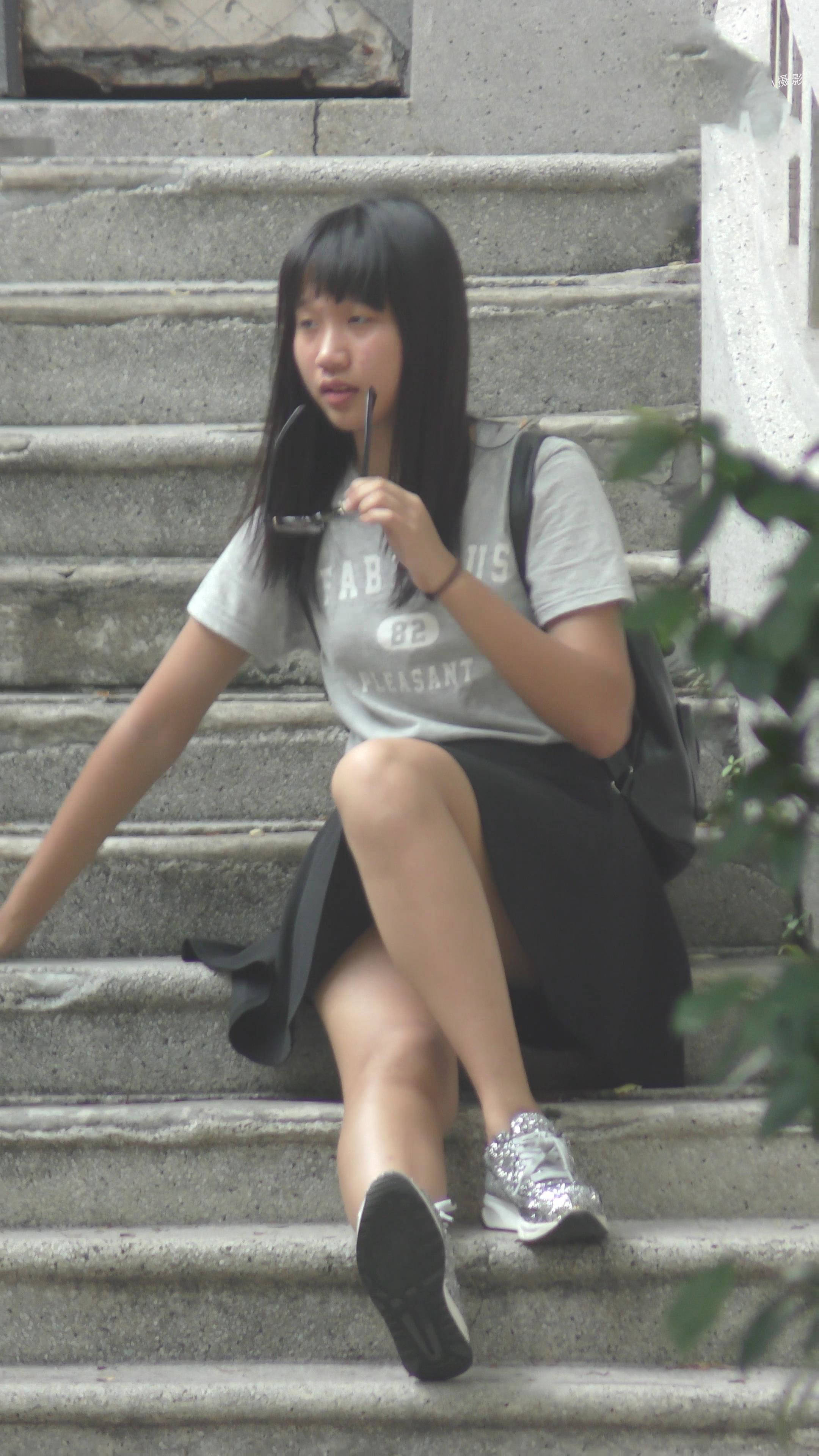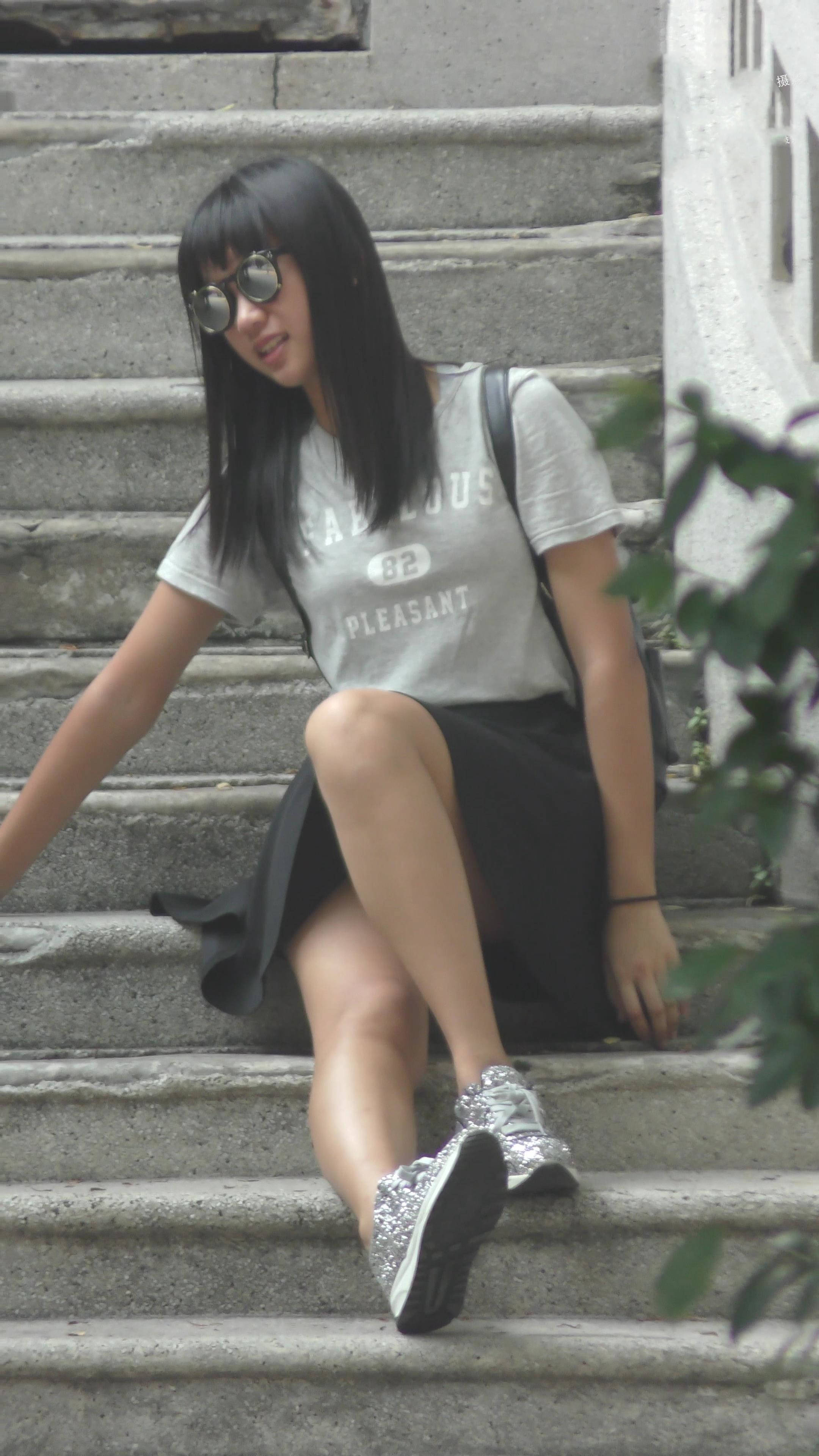 4k-街拍黑色短裙爱拍照的年轻妈妈 编号7437