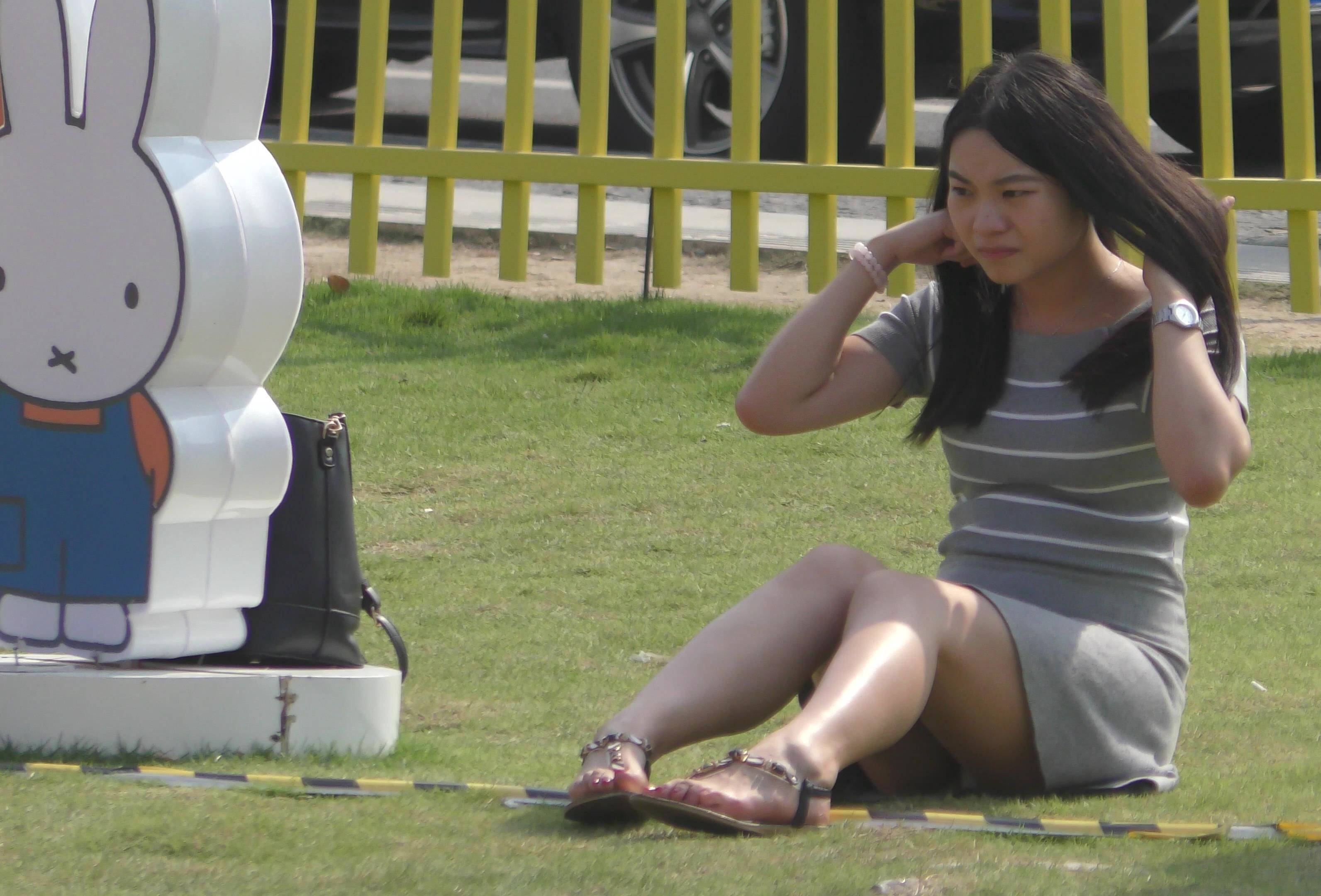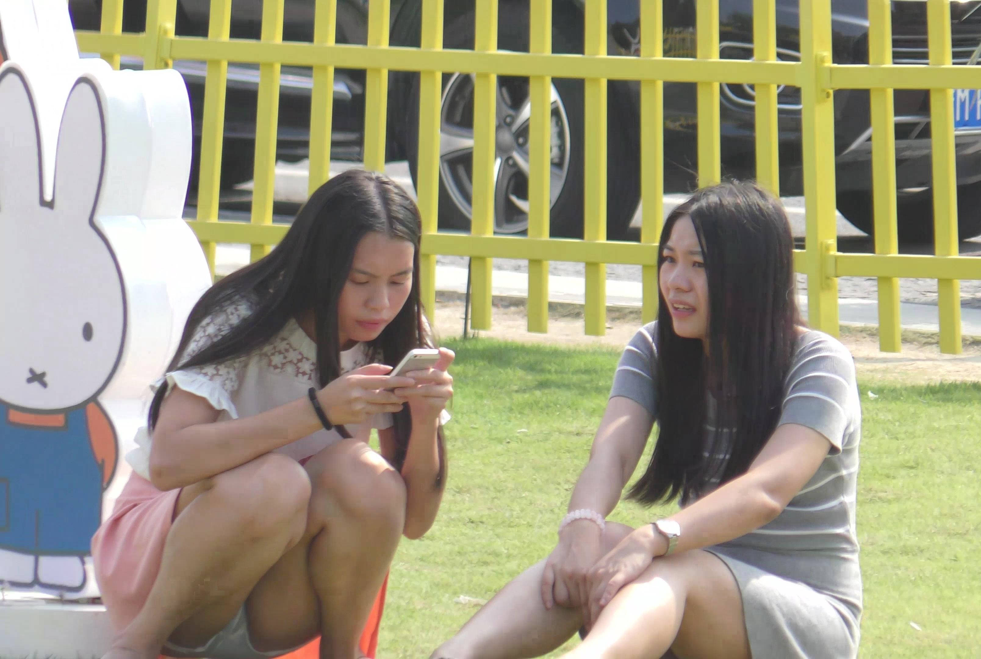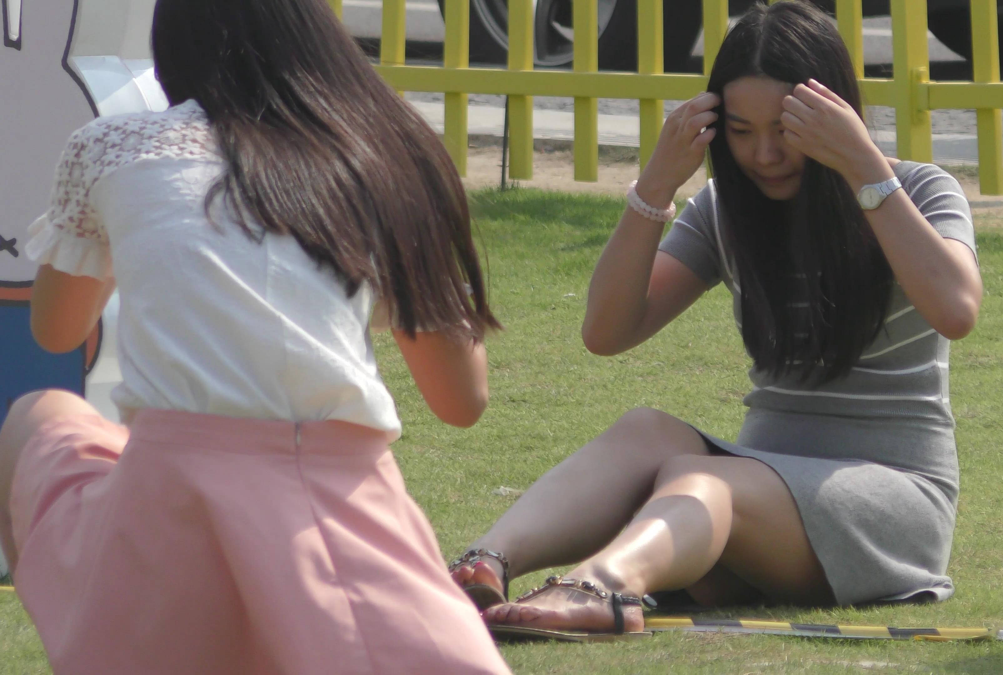 4k-公园草地上忙拍照的两位粉嫩少女,内内走光一点没发觉 编号7439