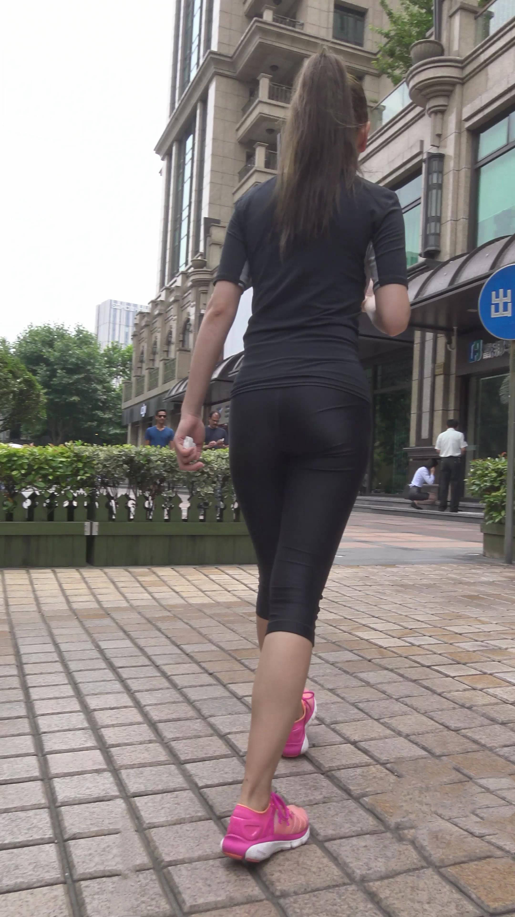4k-紧身秀美黑色运动弹力裤美女 编号7443