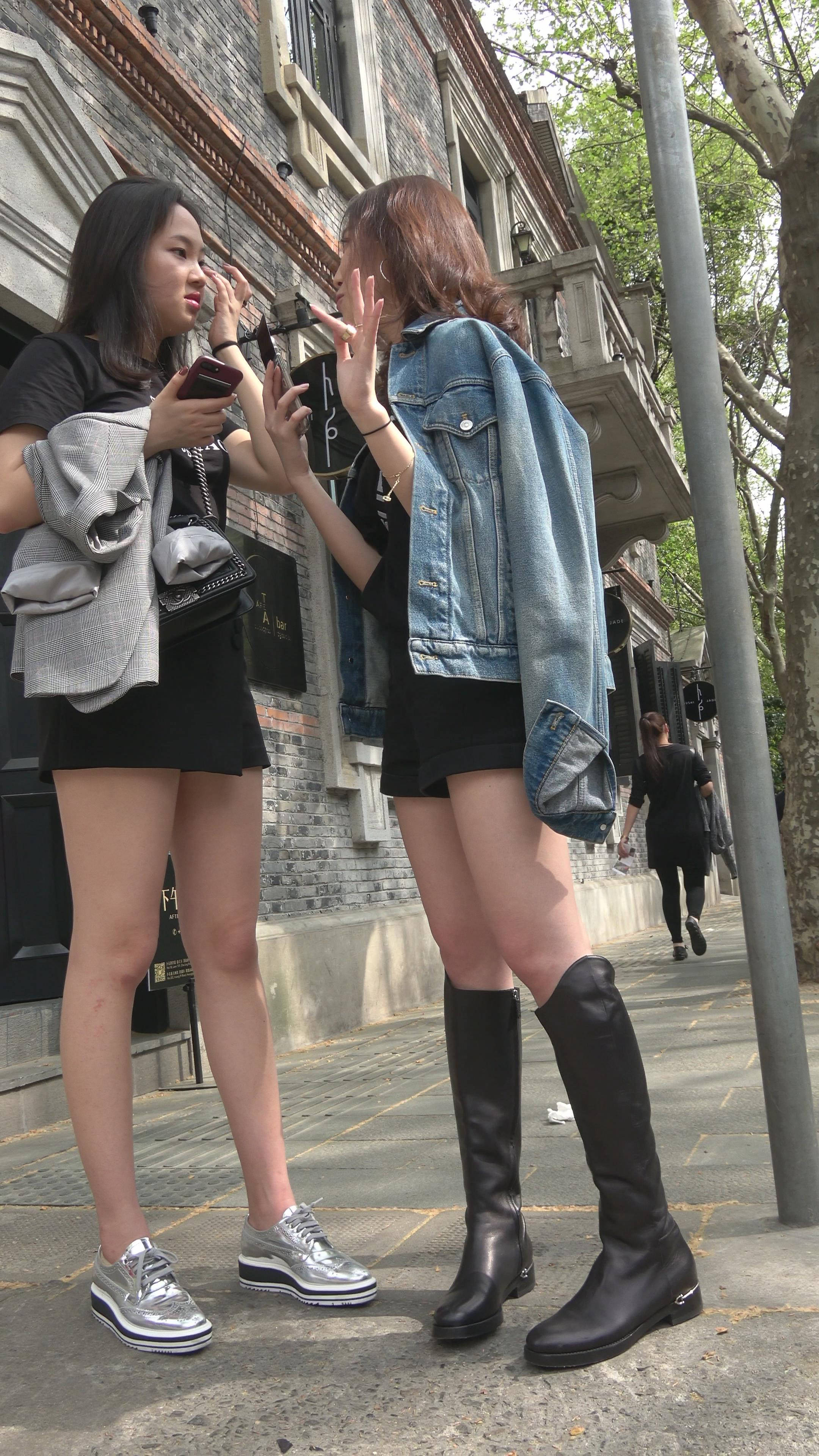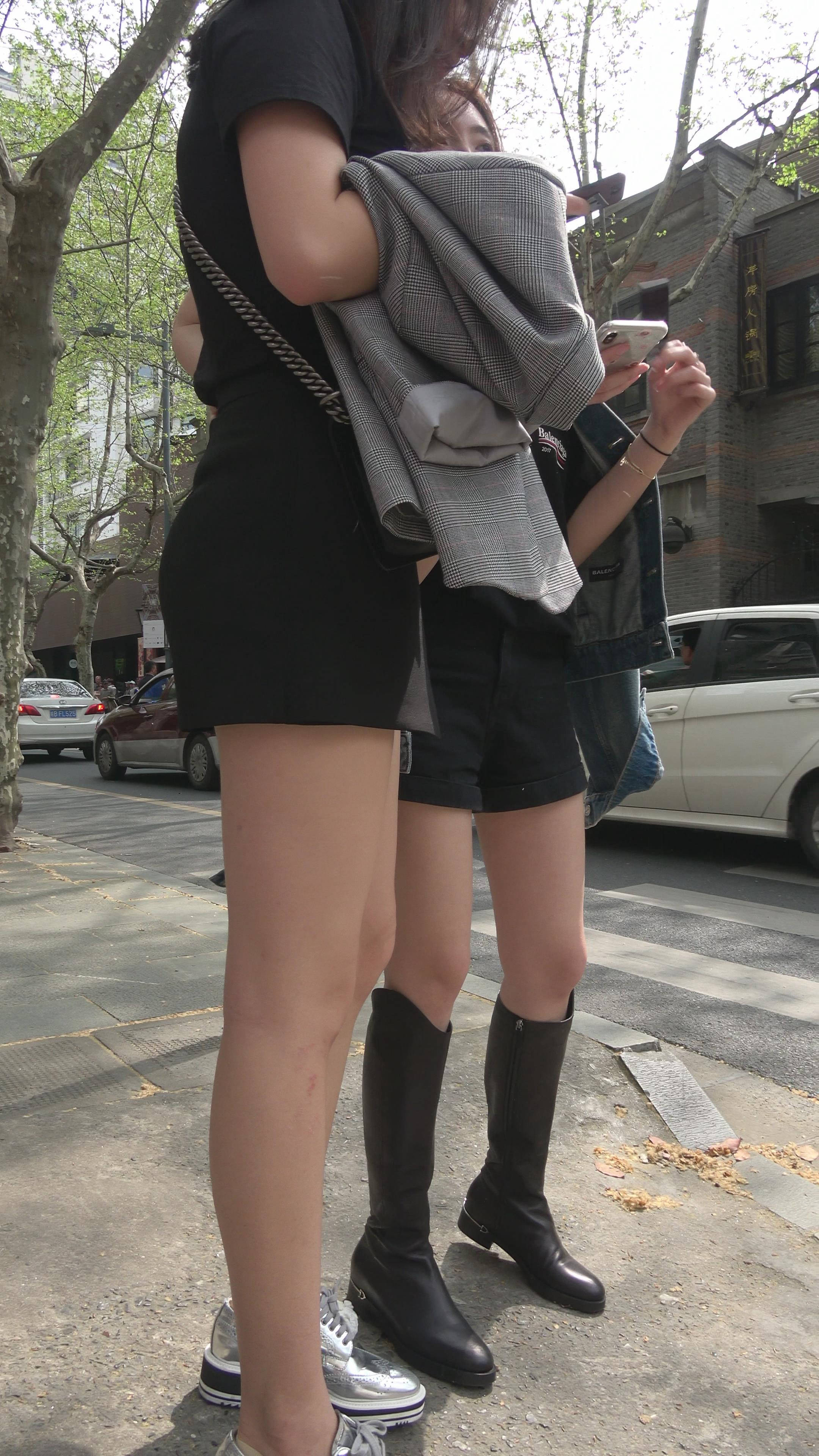 4K - 街拍性感美腿美女姐妹逛街 编号7484