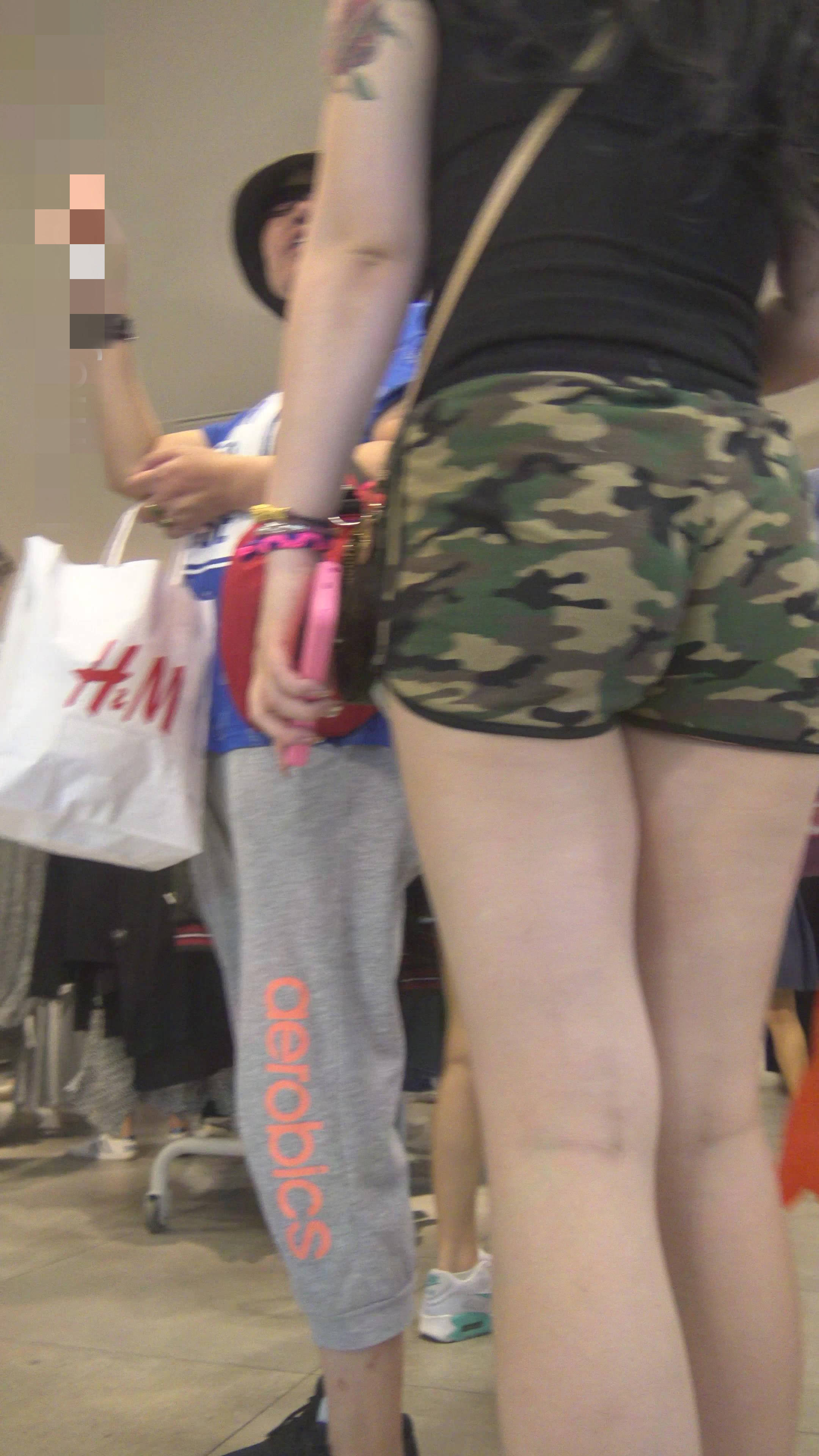 4k-军绿色迷彩热裤圆臀美眉商场当众试裤子 编号7509