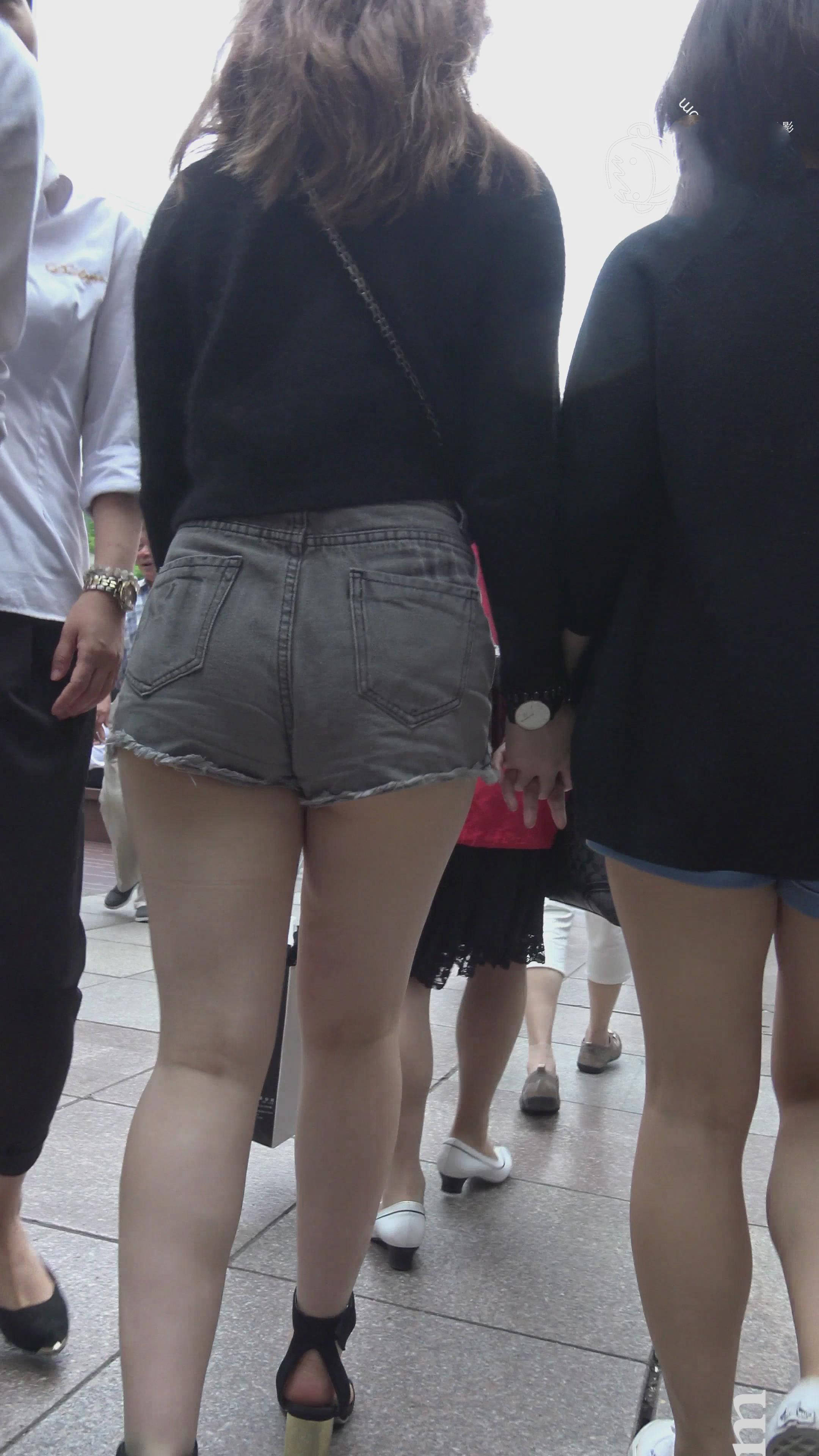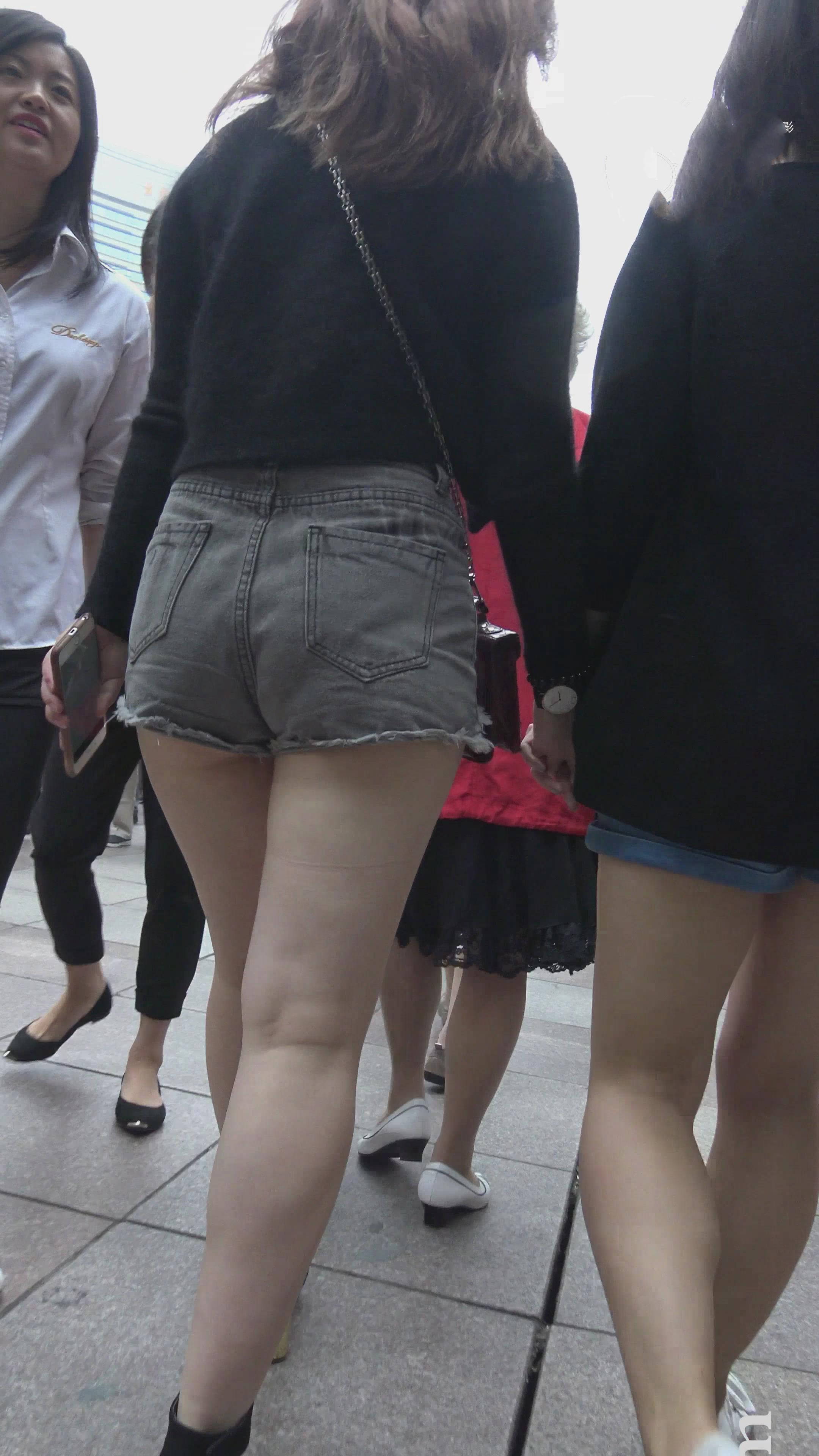 4k-街拍丰满肥臀牛仔热裤美丽女神跟闺蜜逛街 编号7515