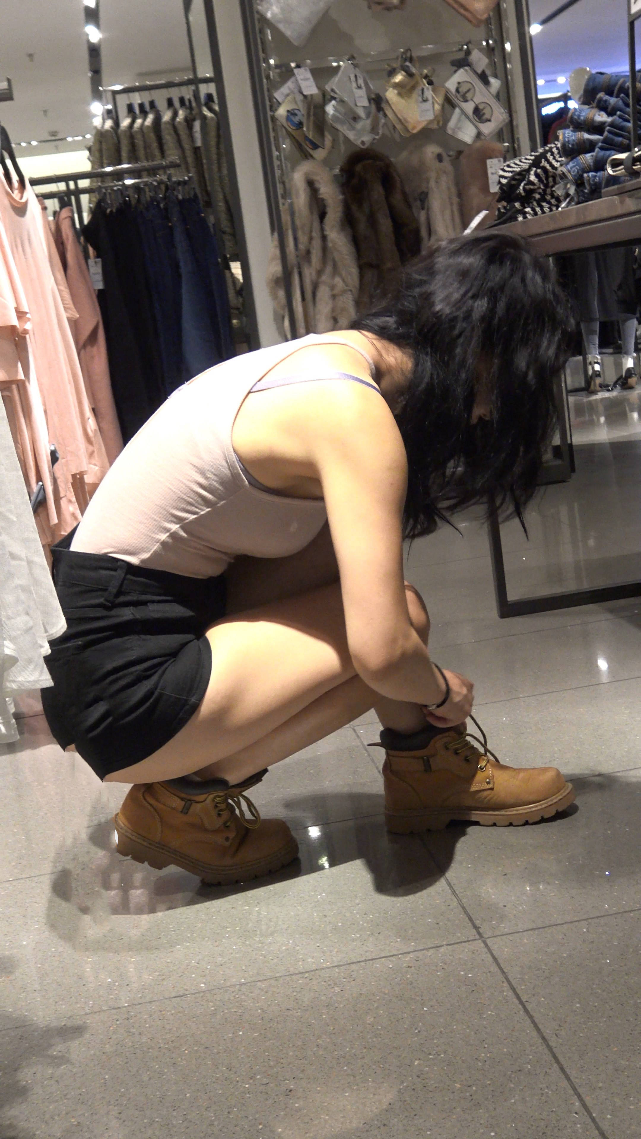 4k-鞋店试靴子的美女居然穿的大头皮鞋 编号7538