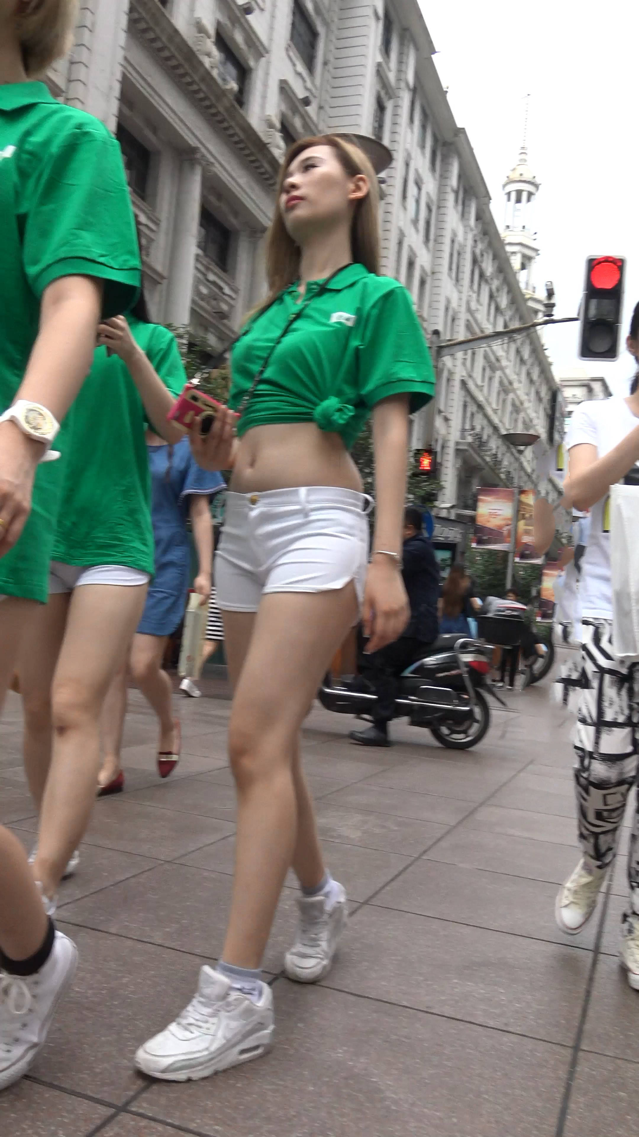 4k-街拍的眉清目秀的白紧热裤美女 编号7550
