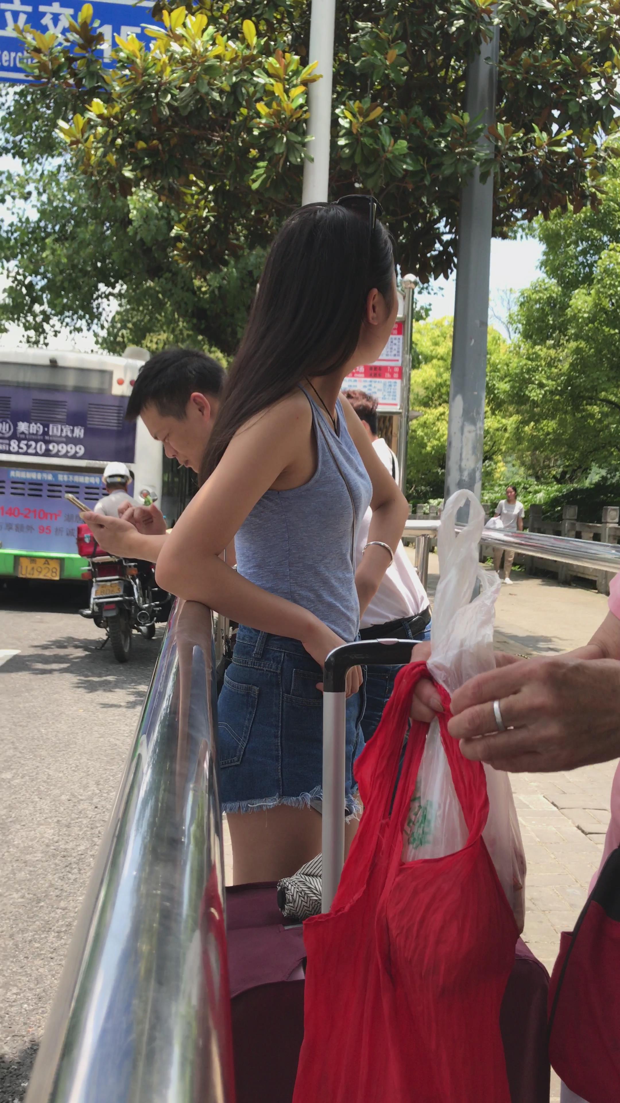 4K - 等车的高腰热裤丰满街拍美女 编号3356