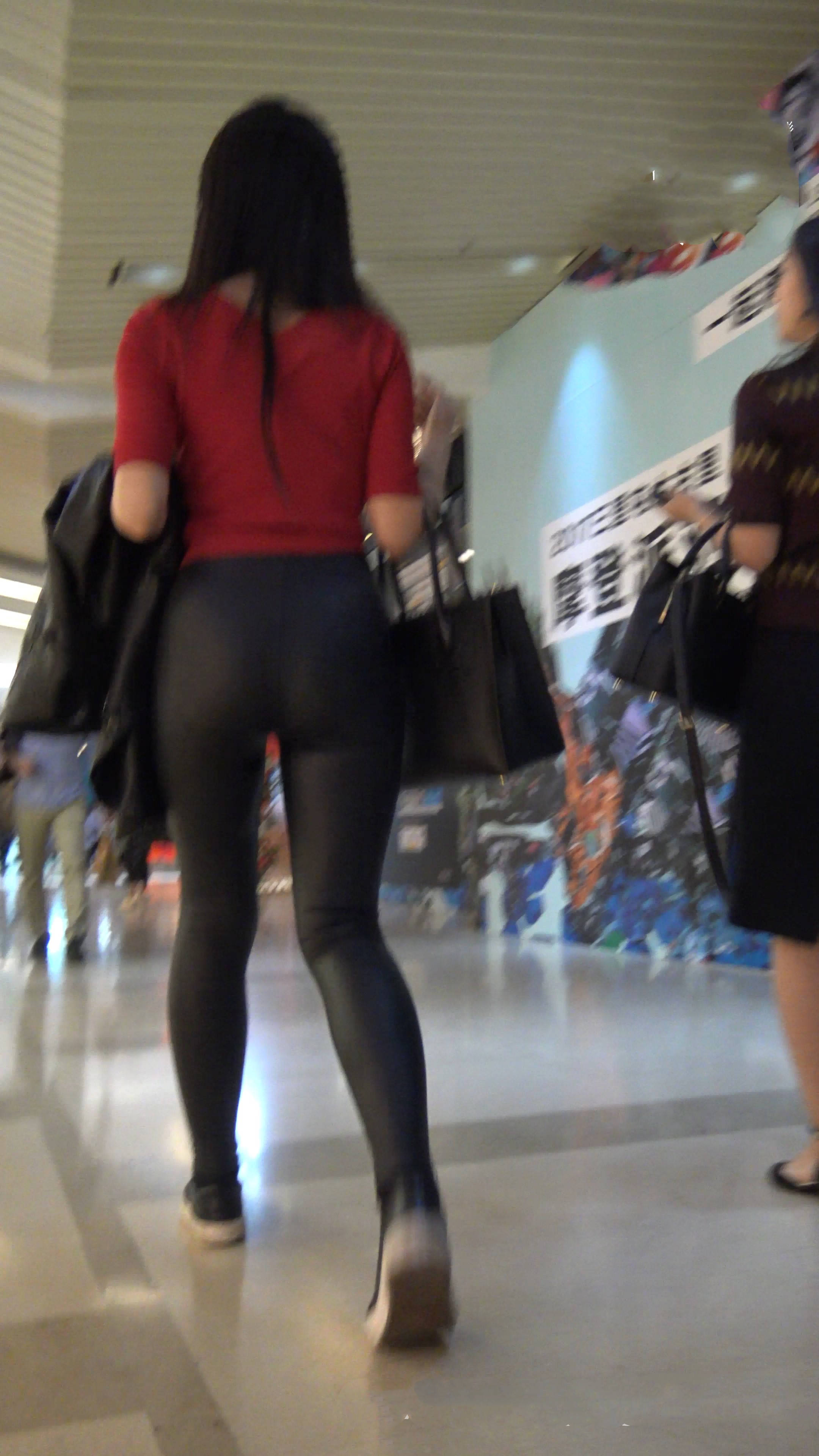 4k-极品红衣皮裤翘臀美女 编号7573