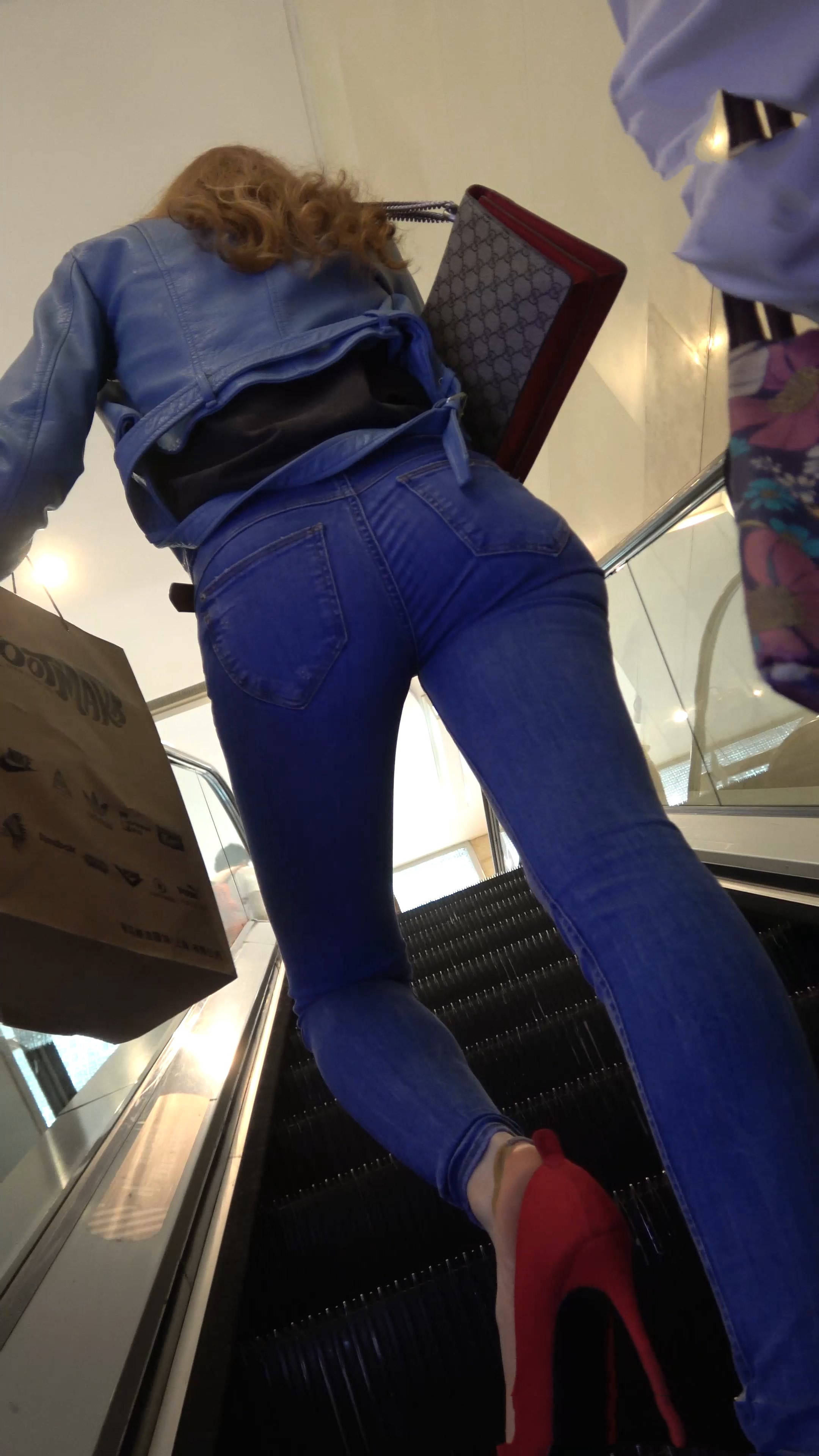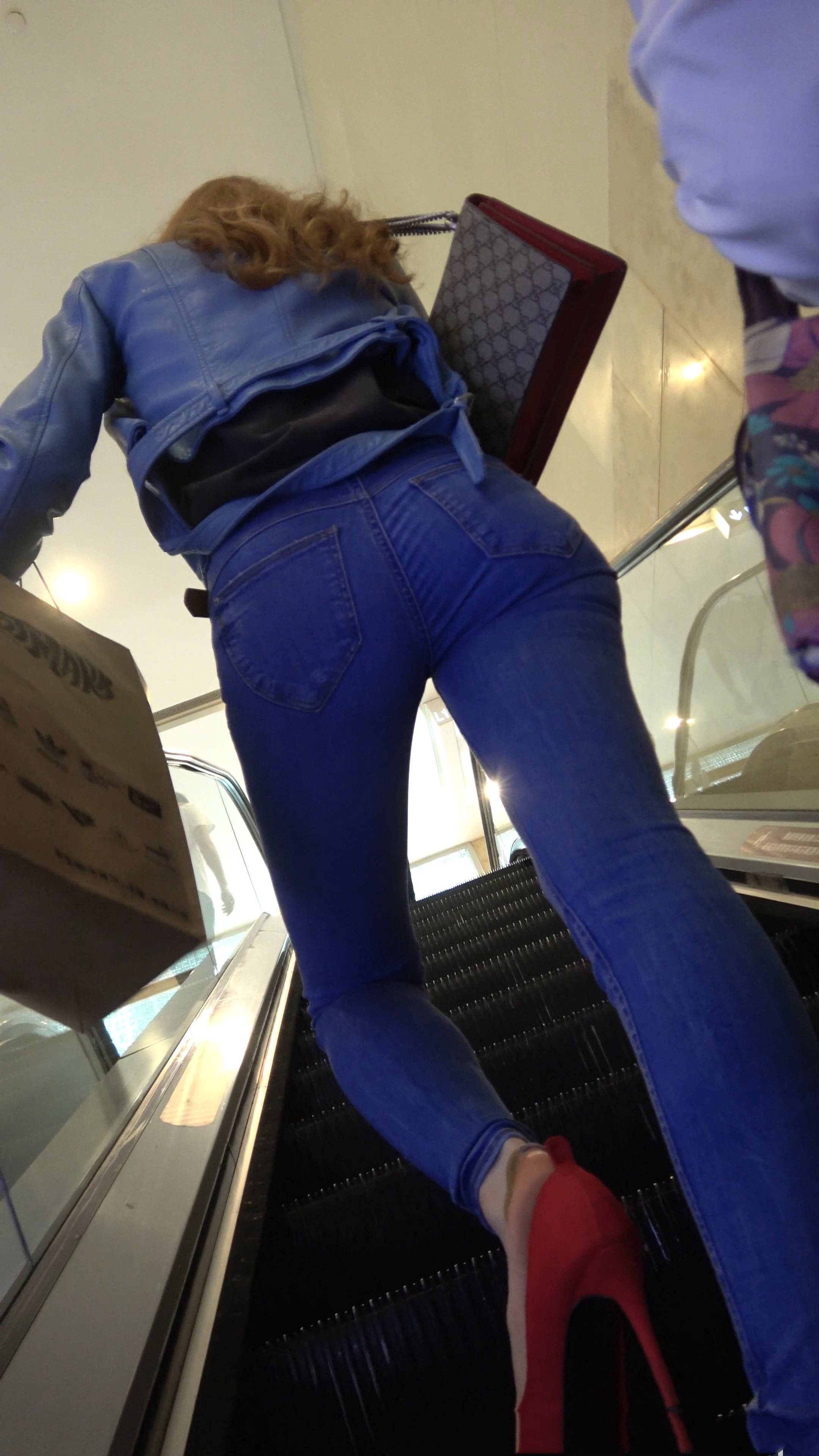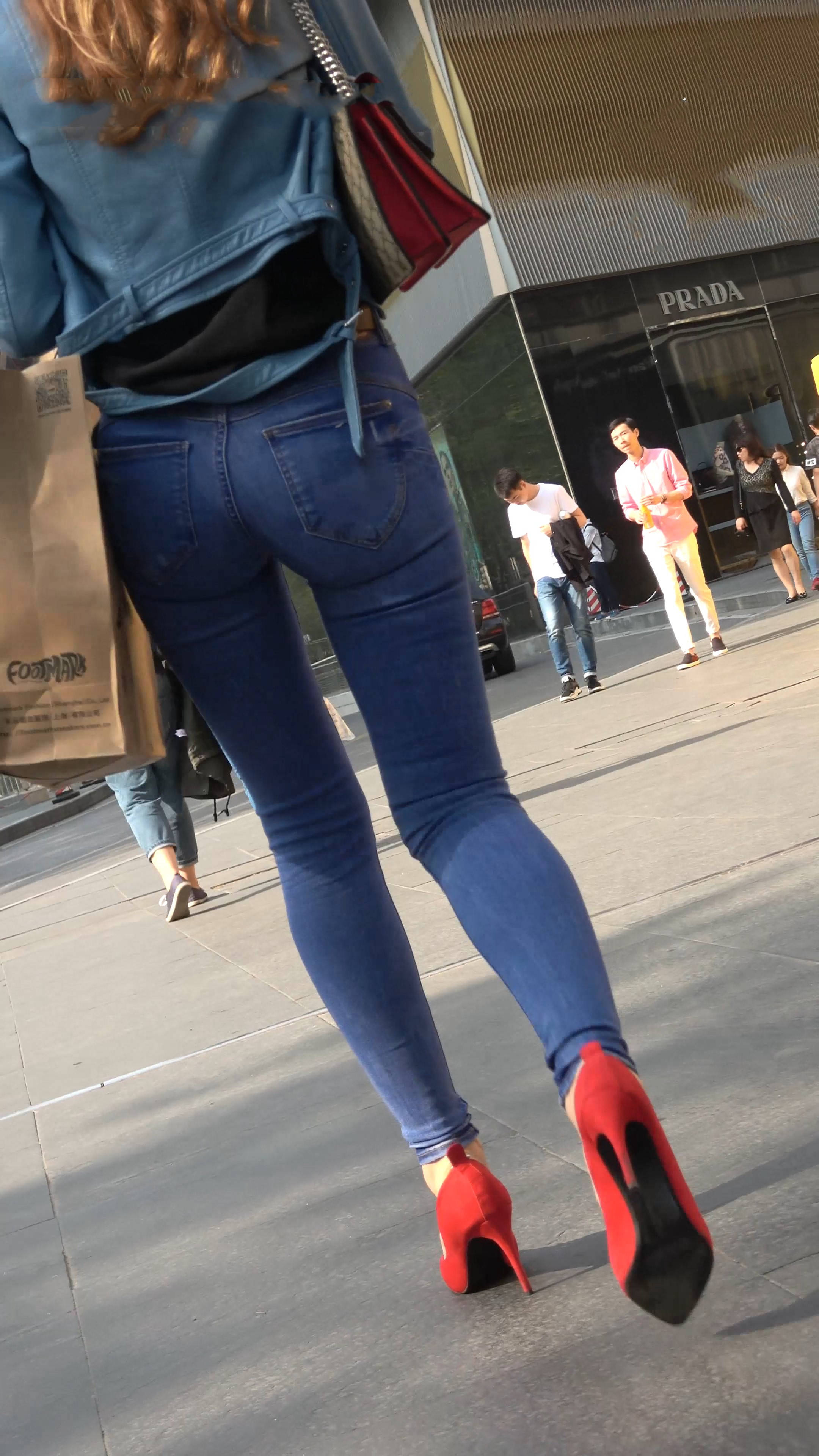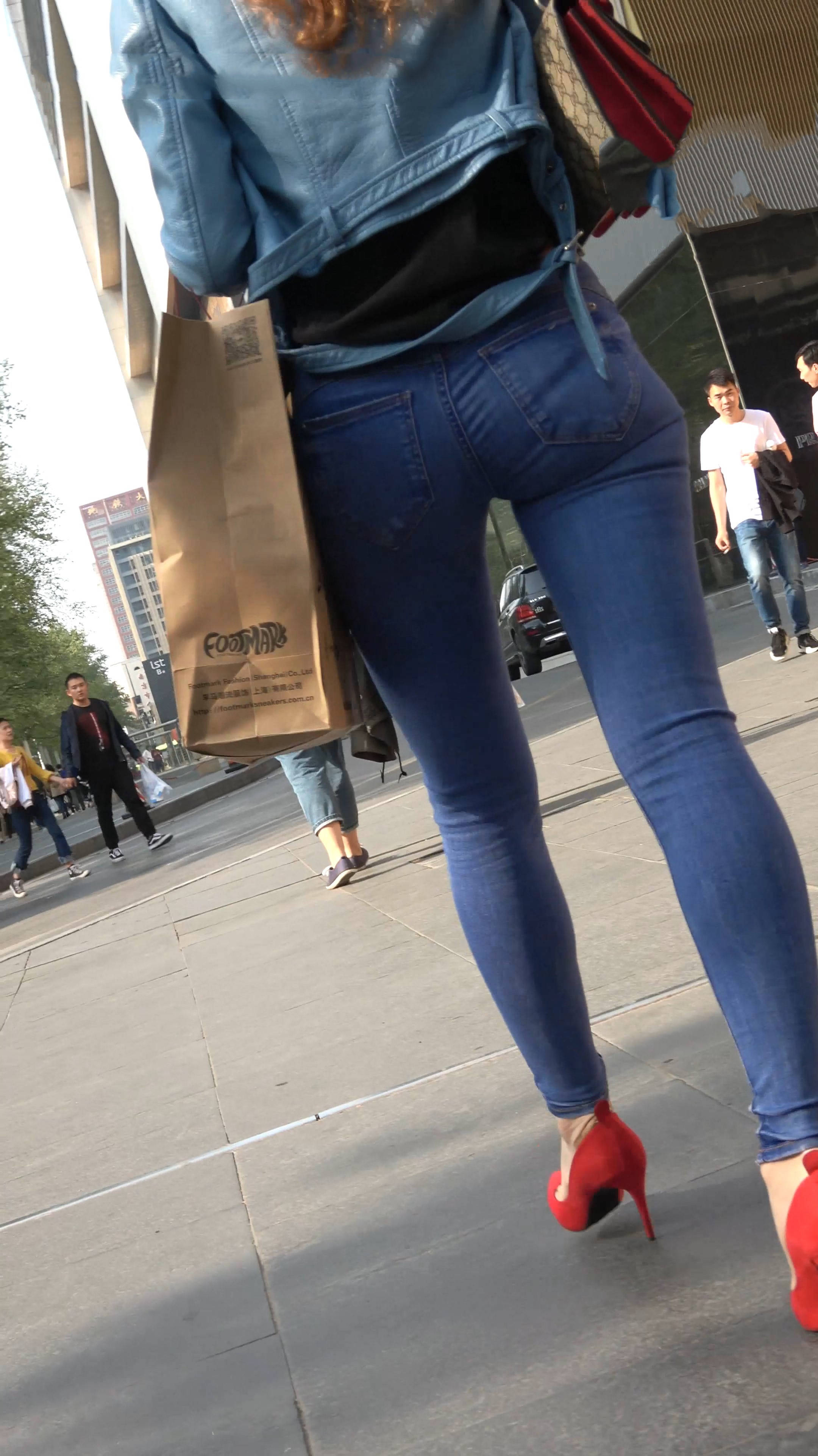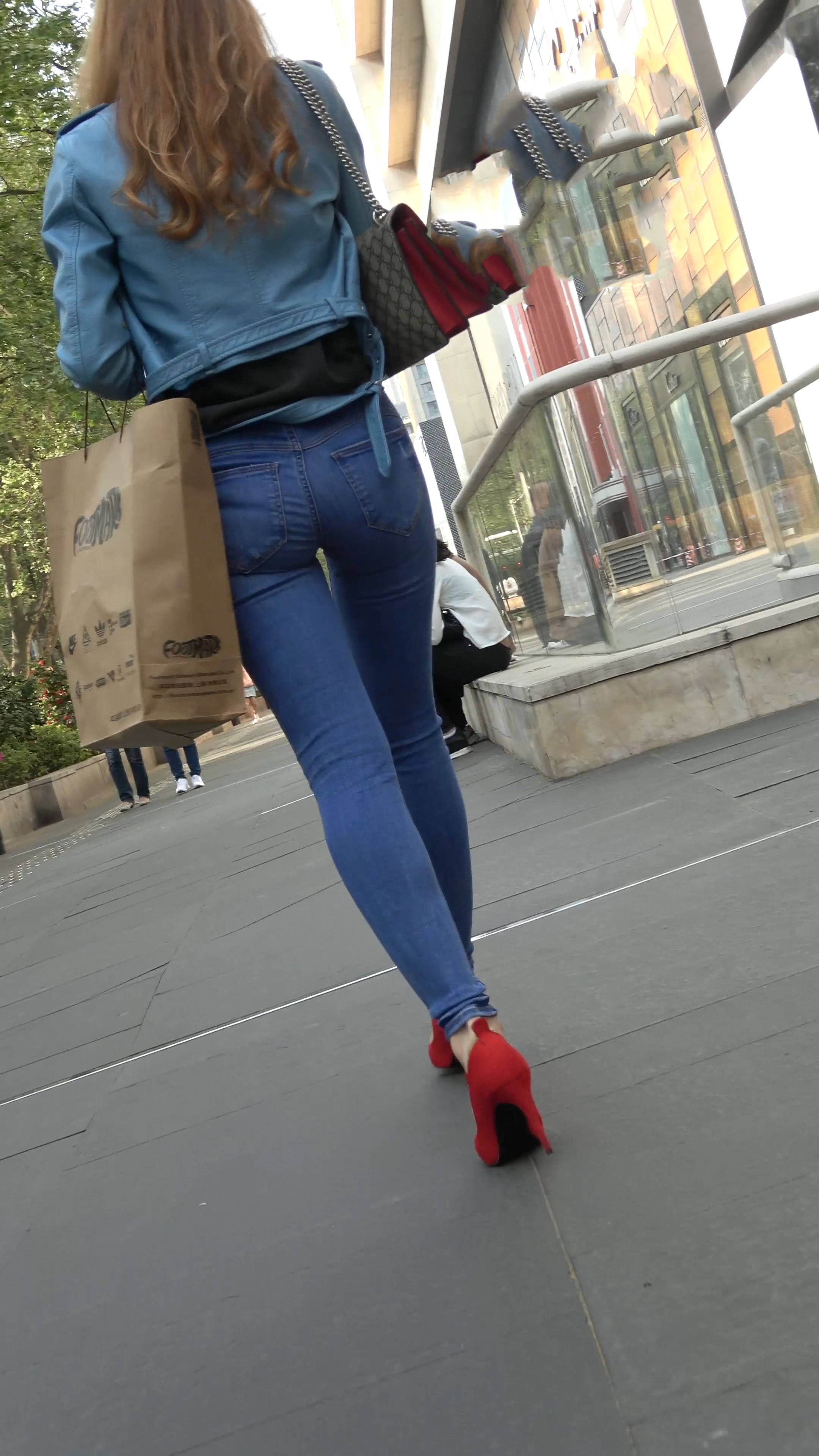 4k-街拍超紧身蓝牛红高跟鞋高挑美女(下) 编号7579