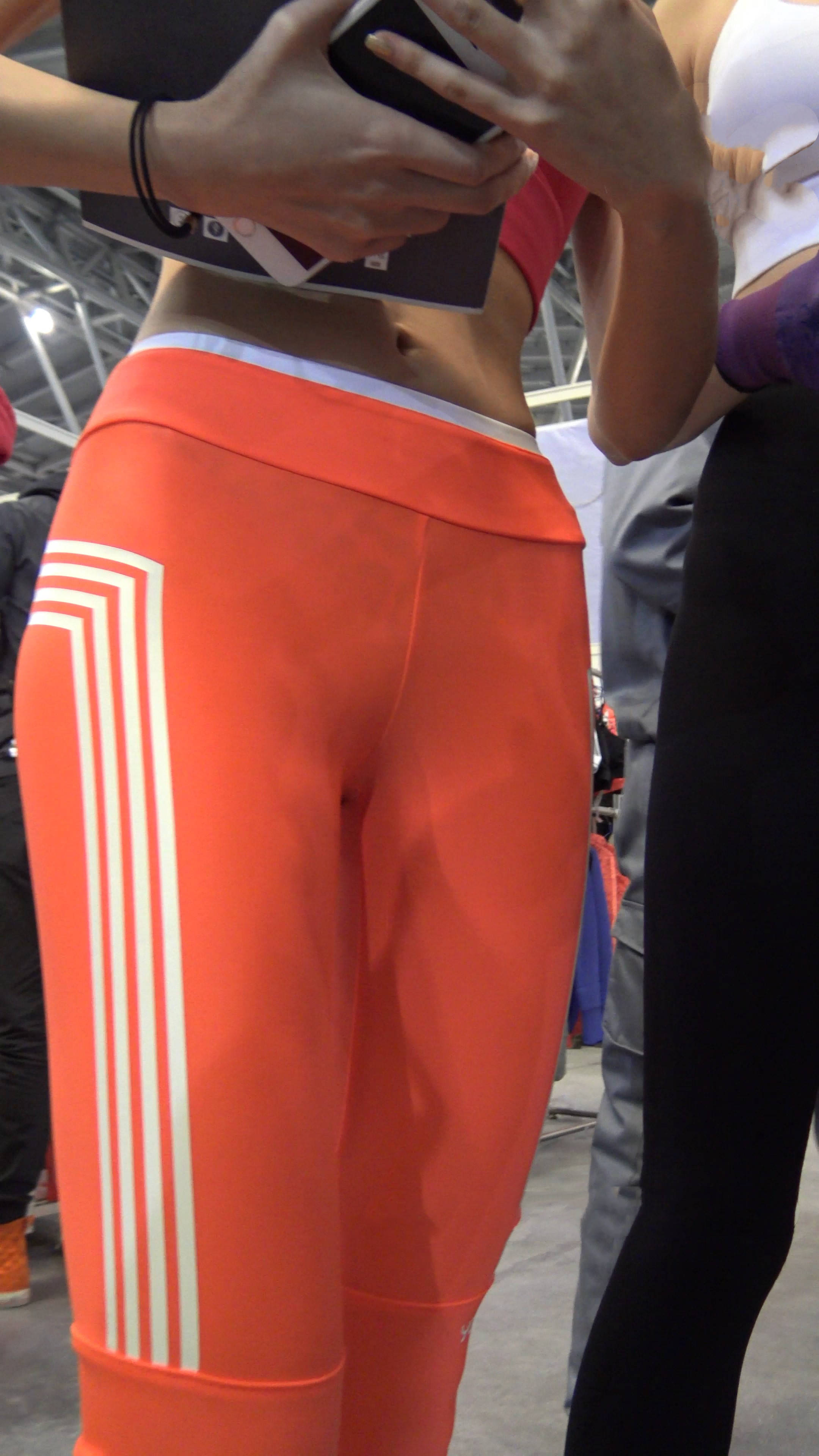 4k-性感的橙色紧身裤健身美女 编号7583