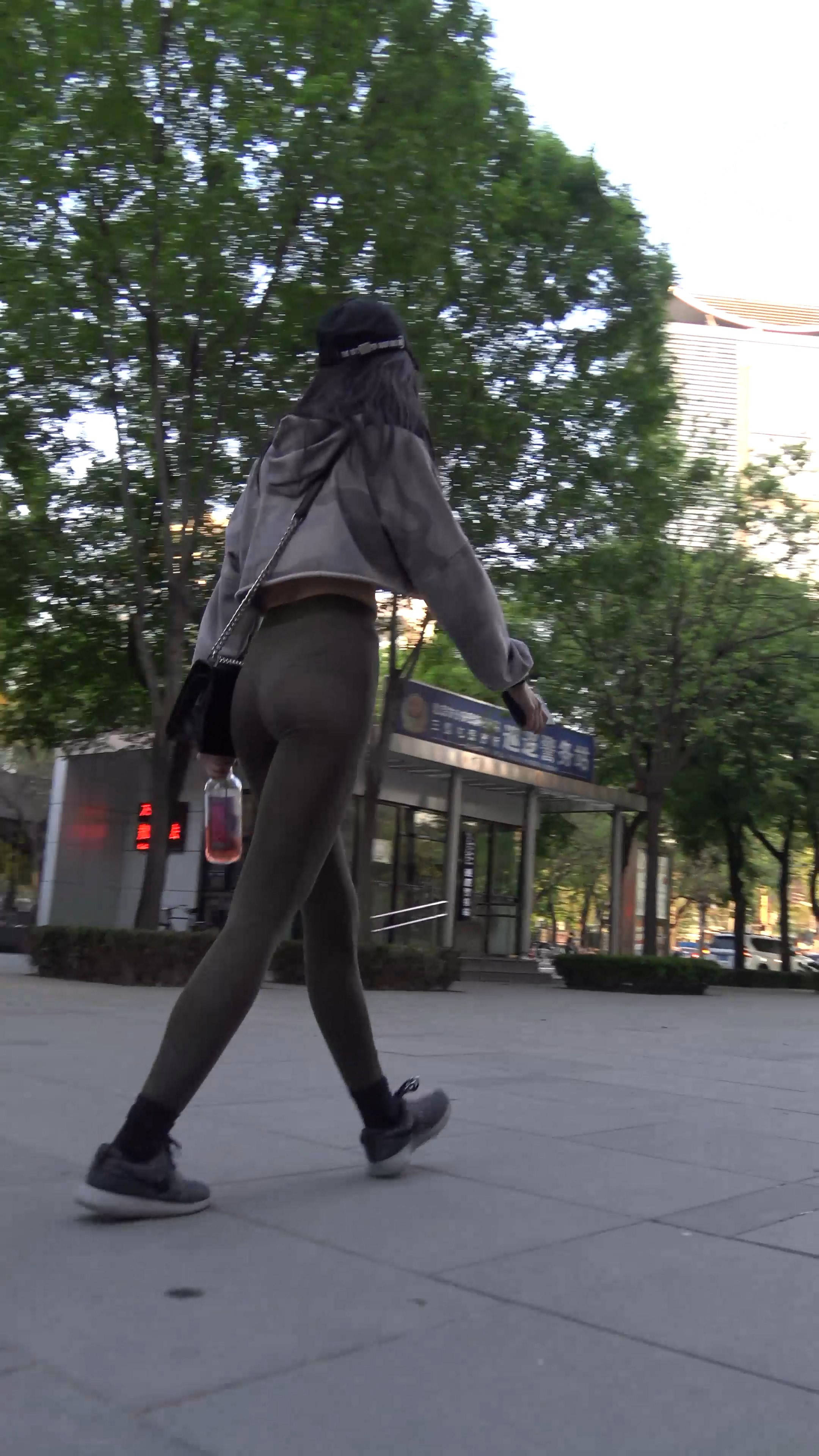 4k-街拍鸭舌帽瑜伽弹力裤美女 编号7660