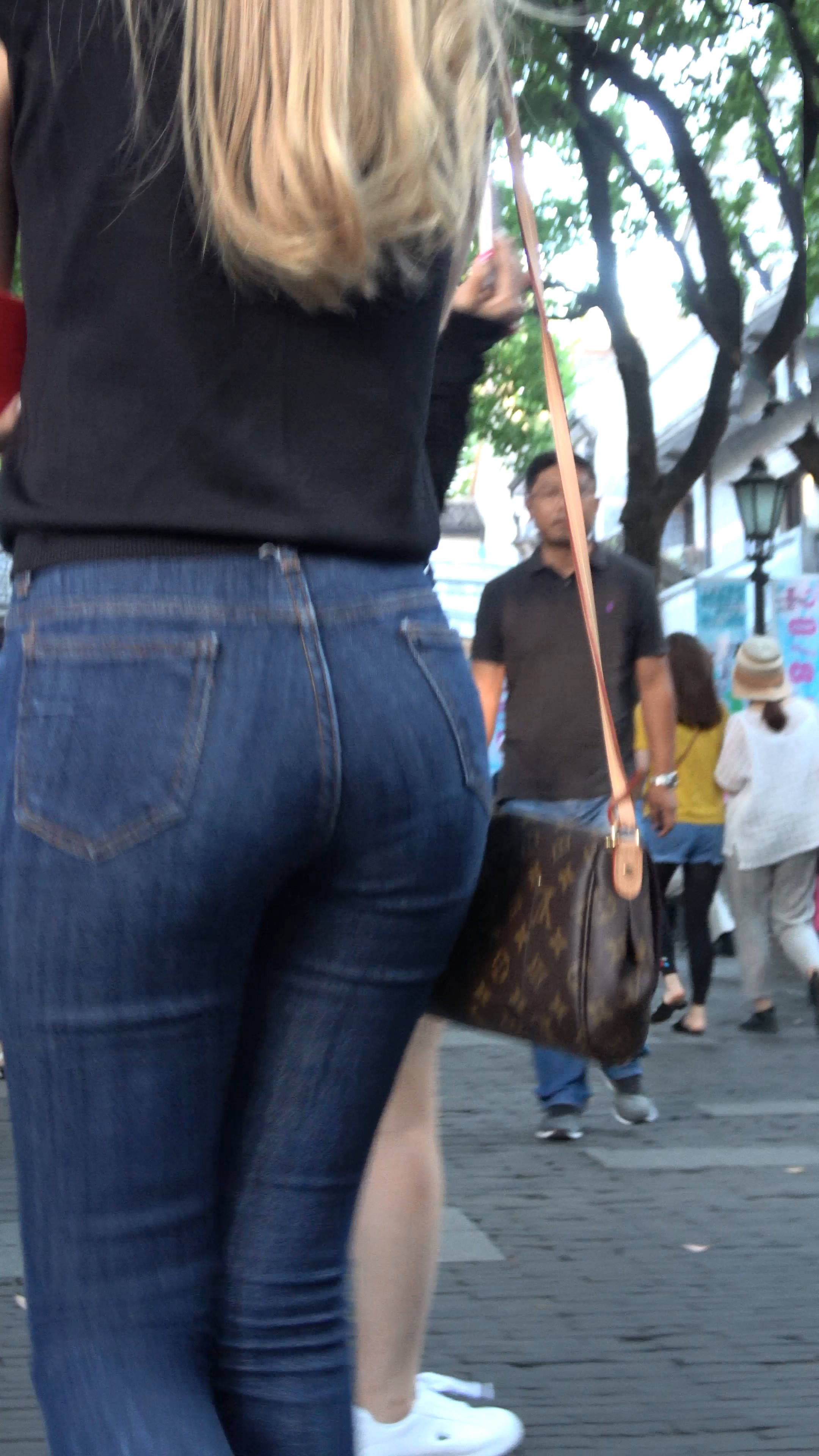 4k超清,街拍金发紧身蓝牛漂亮小姐姐 编号7688