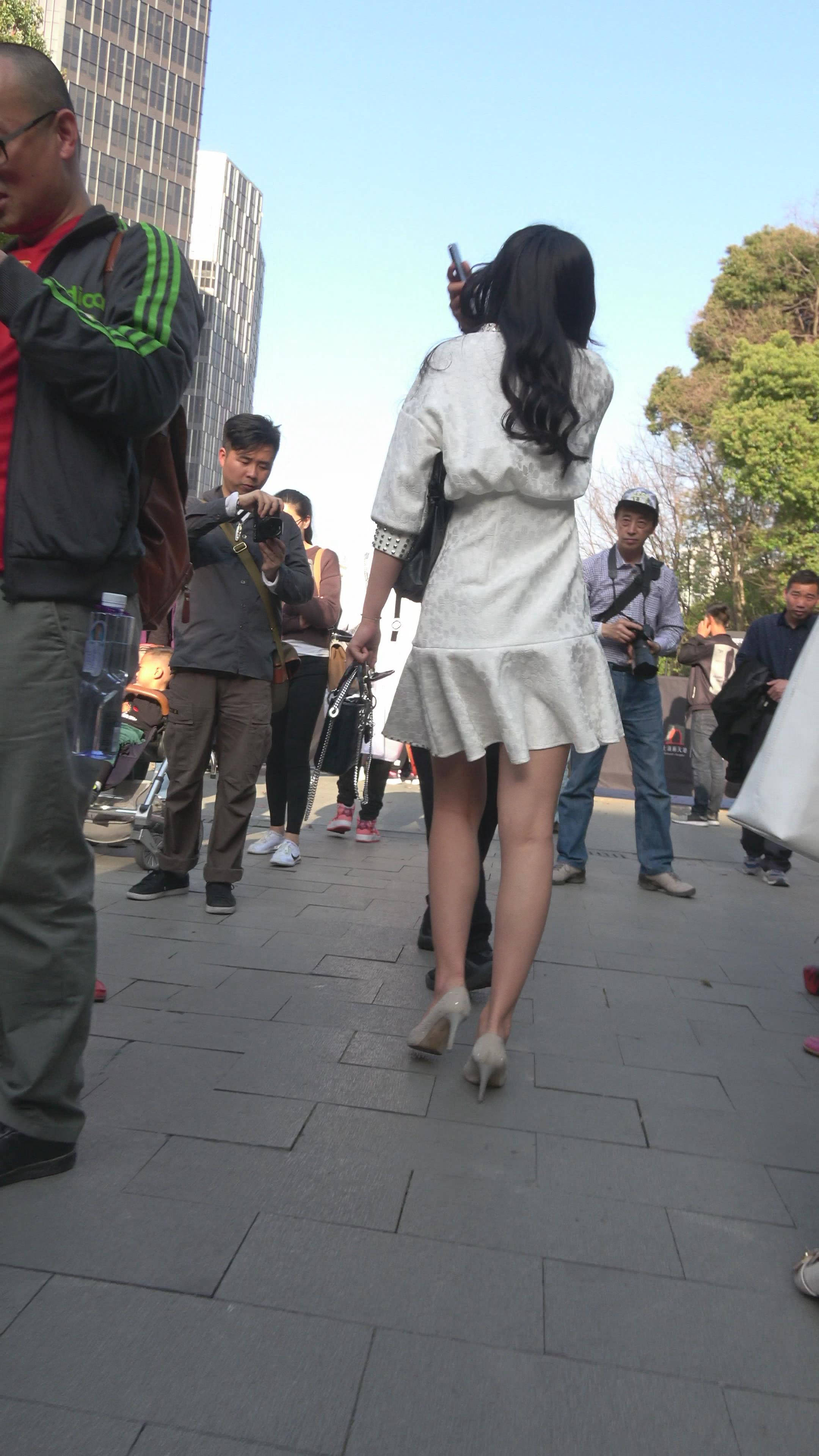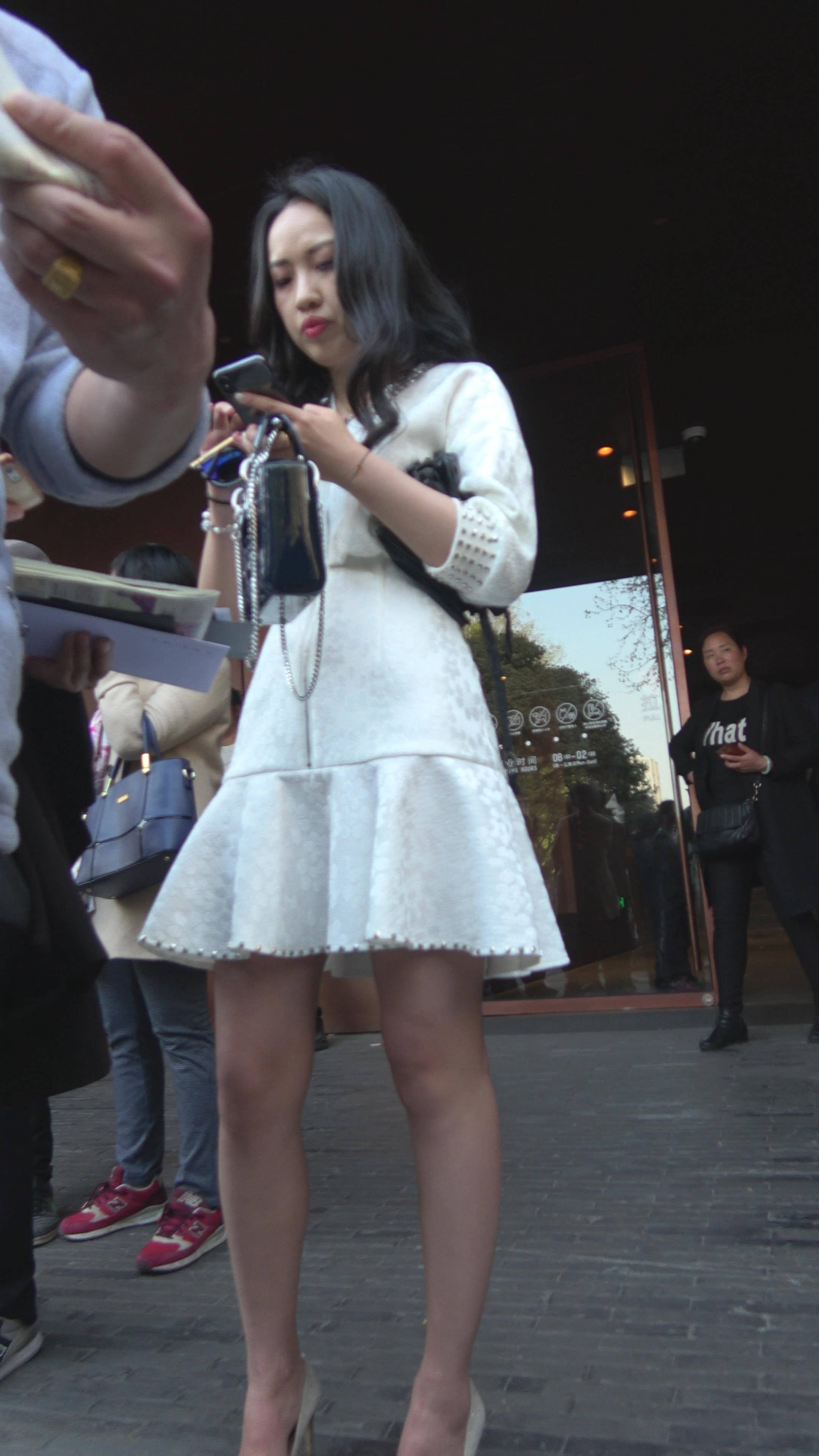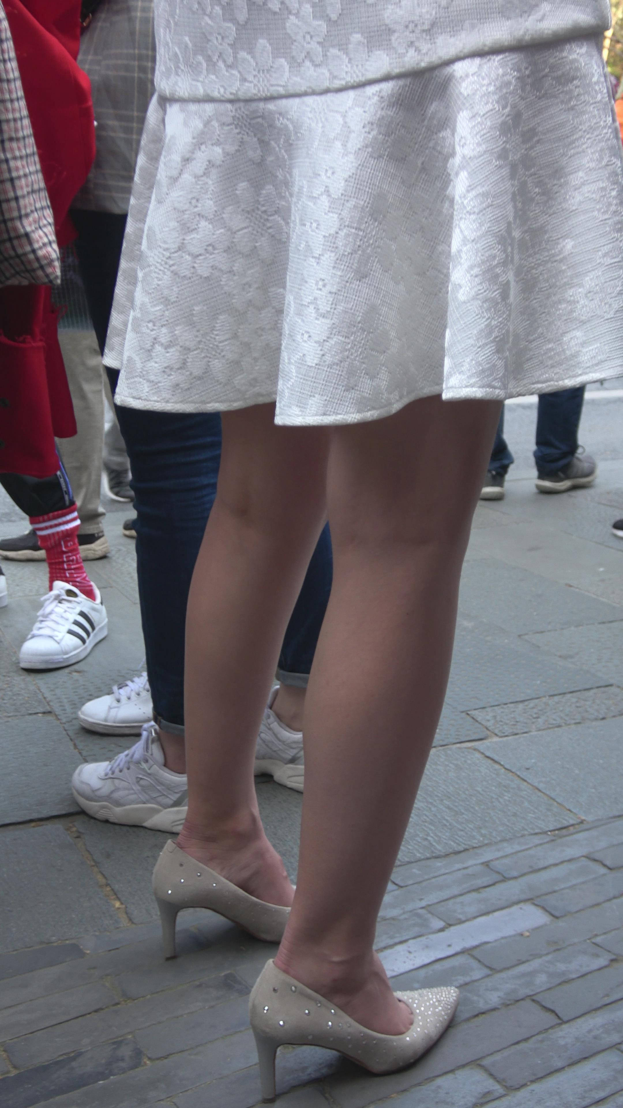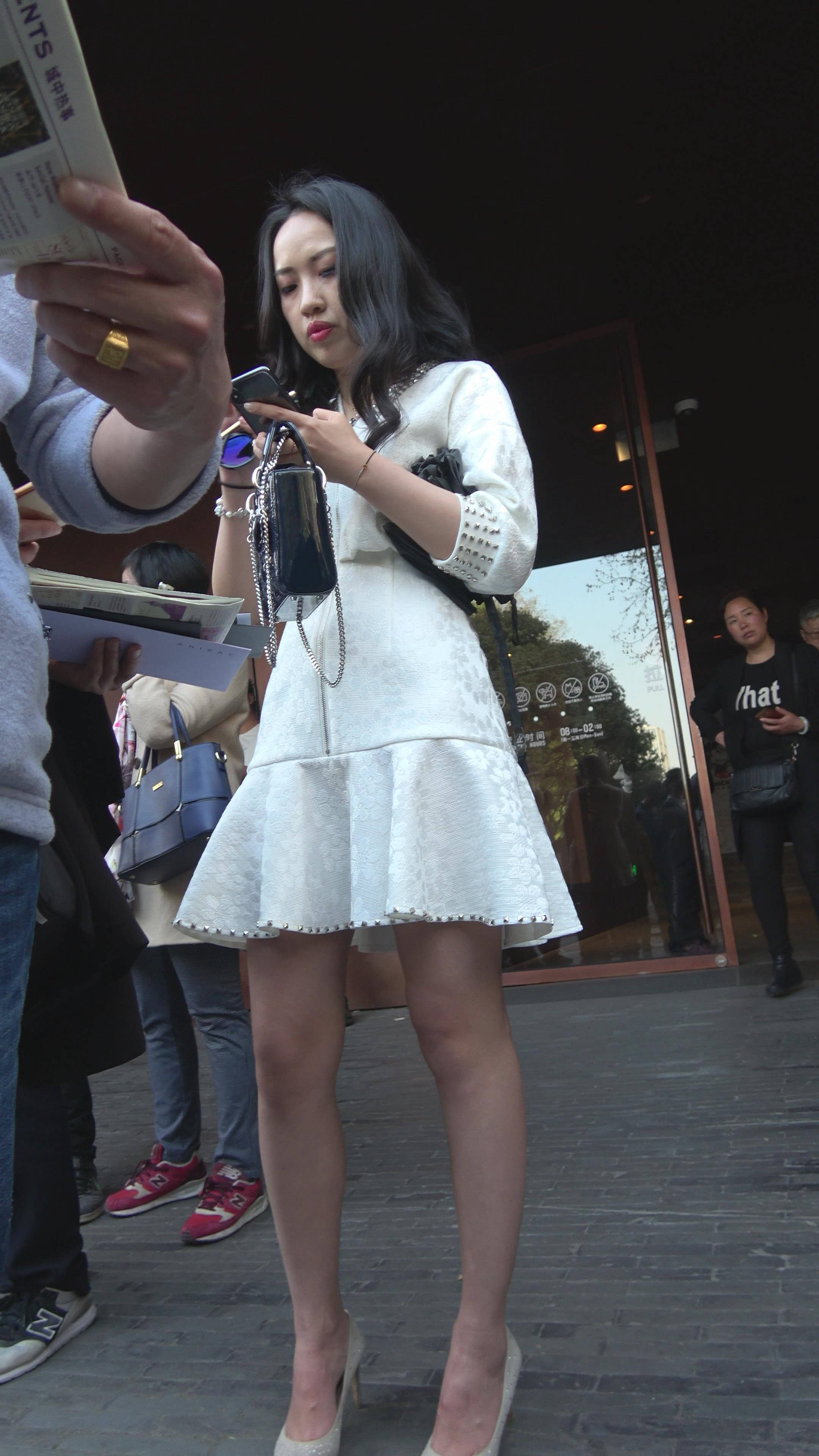 4K - 白裙高跟鞋街拍美腿气质女神大美女 编号7732