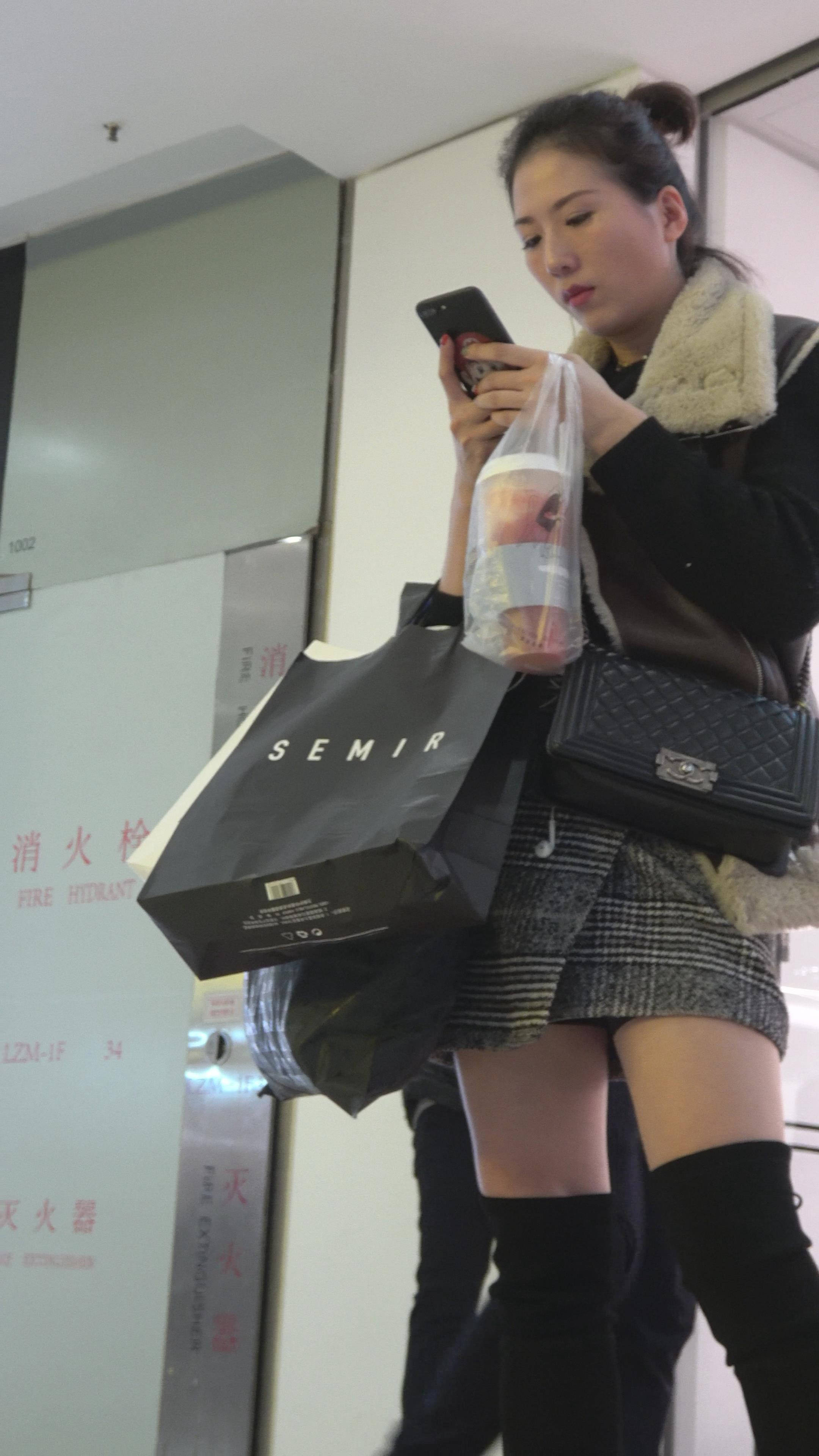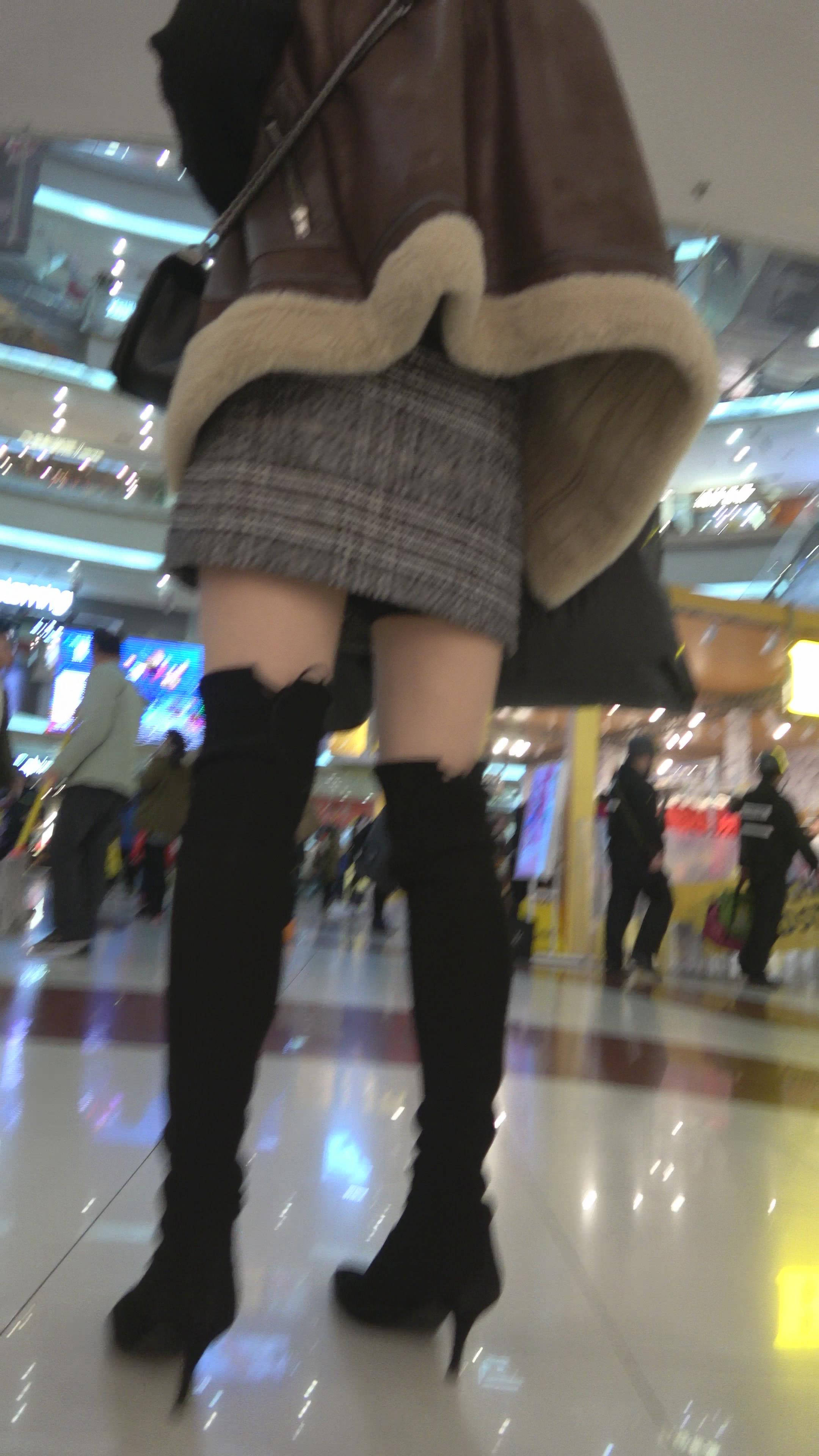 4K - 逛商场的短裙长筒靴街拍性感美女气质大美女 编号7733