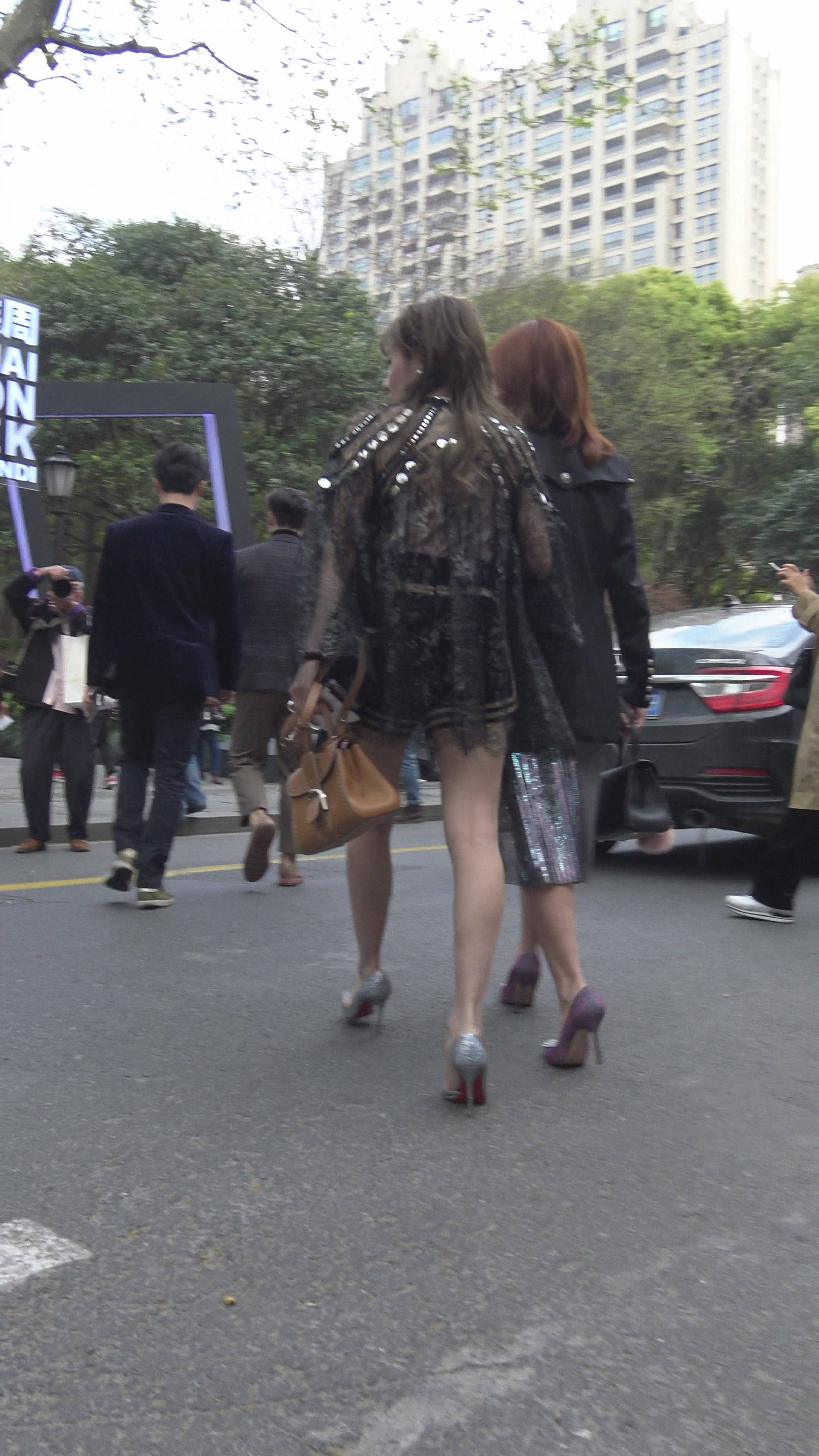 4K - 挽手逛街的气质成熟街拍美女 编号7735
