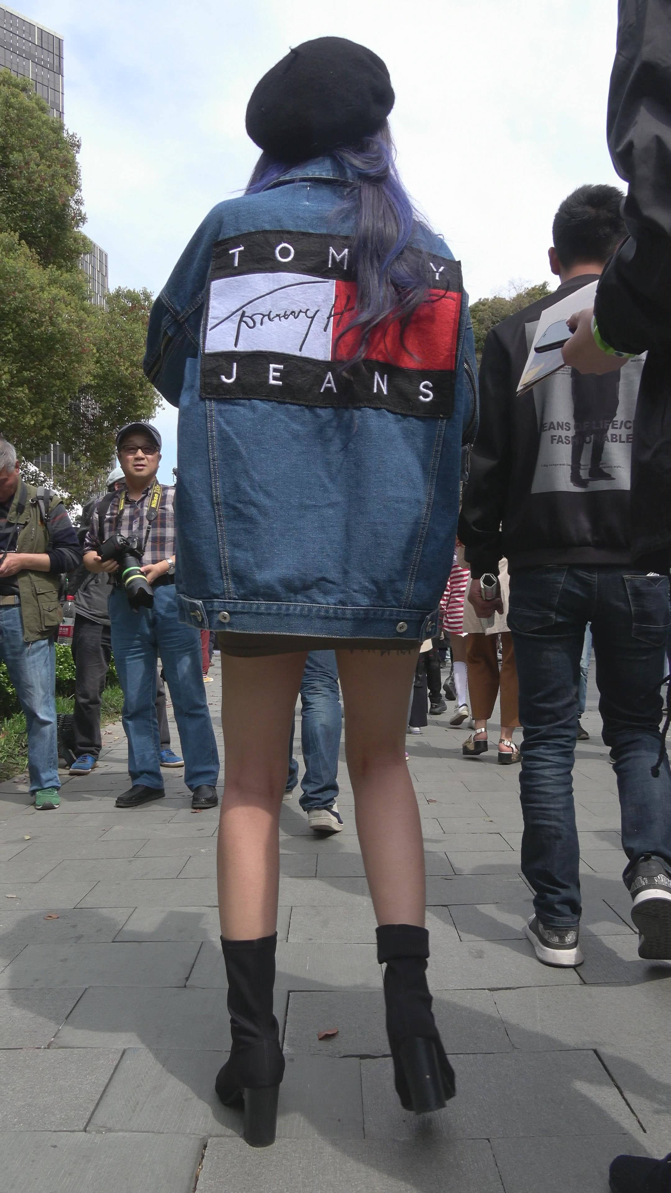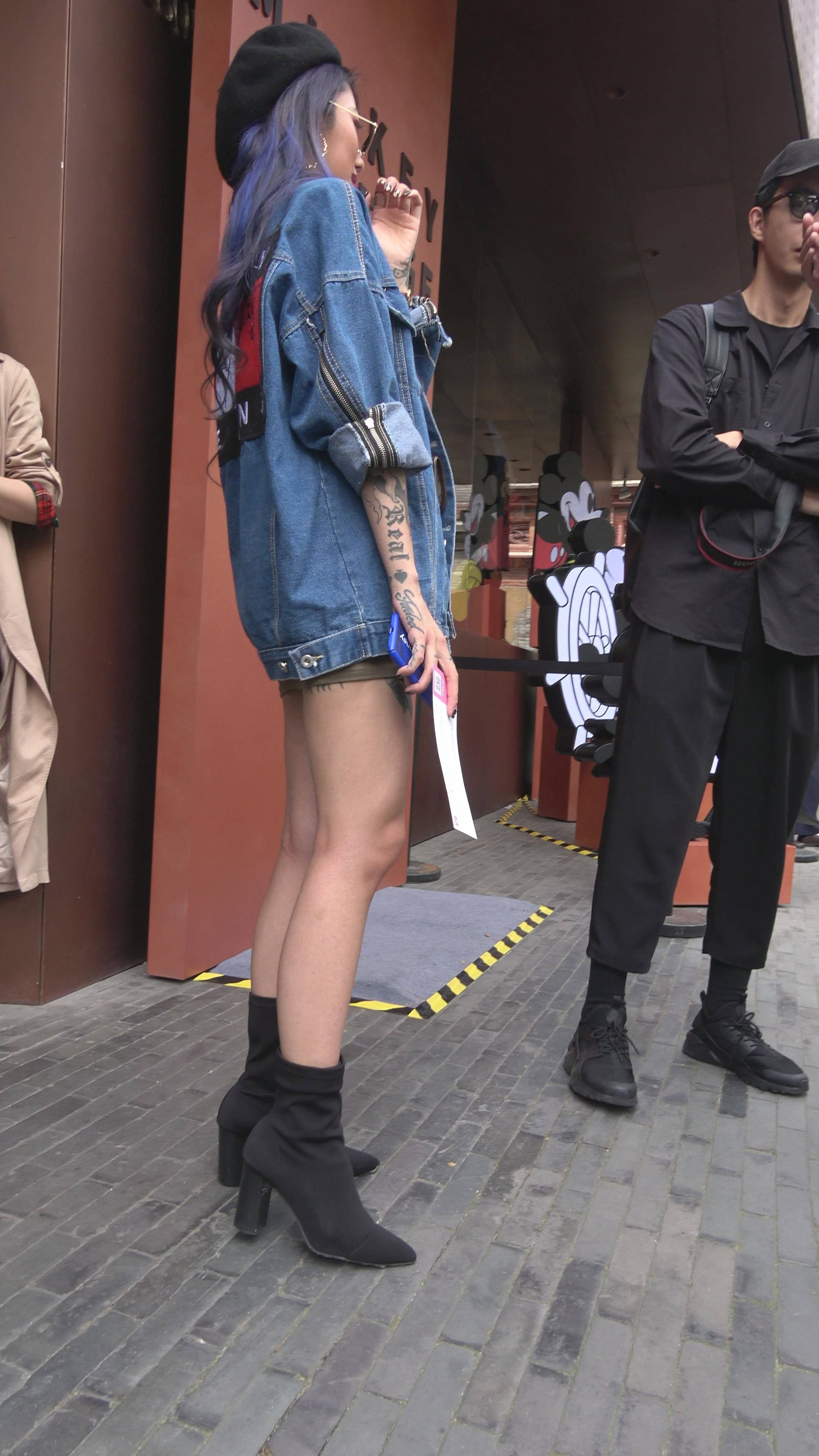 4K包臀裙牛仔外套街拍美腿小墨镜MM 编号7740