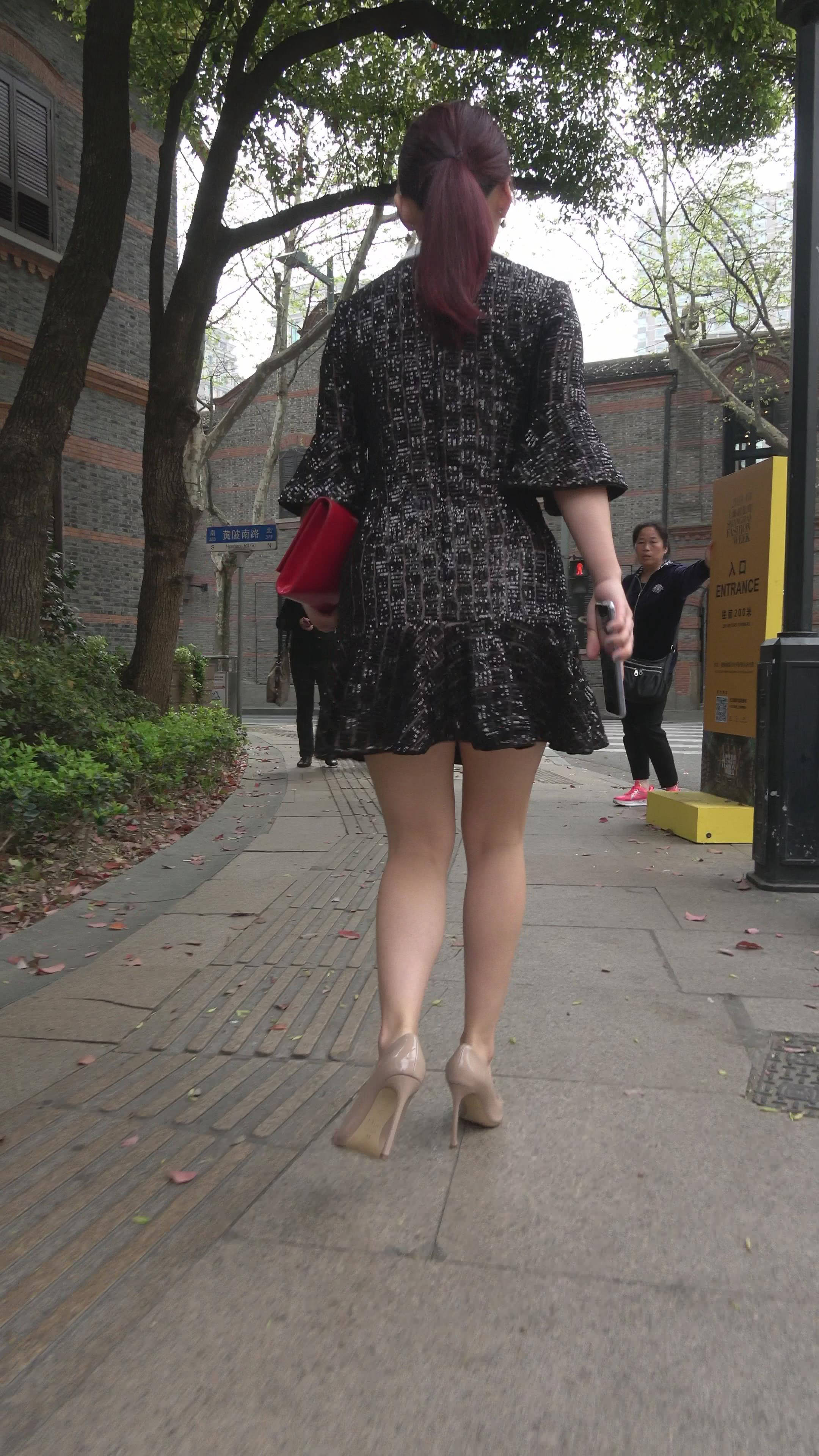 4K - 街拍米色高跟鞋干练小女人 编号7753