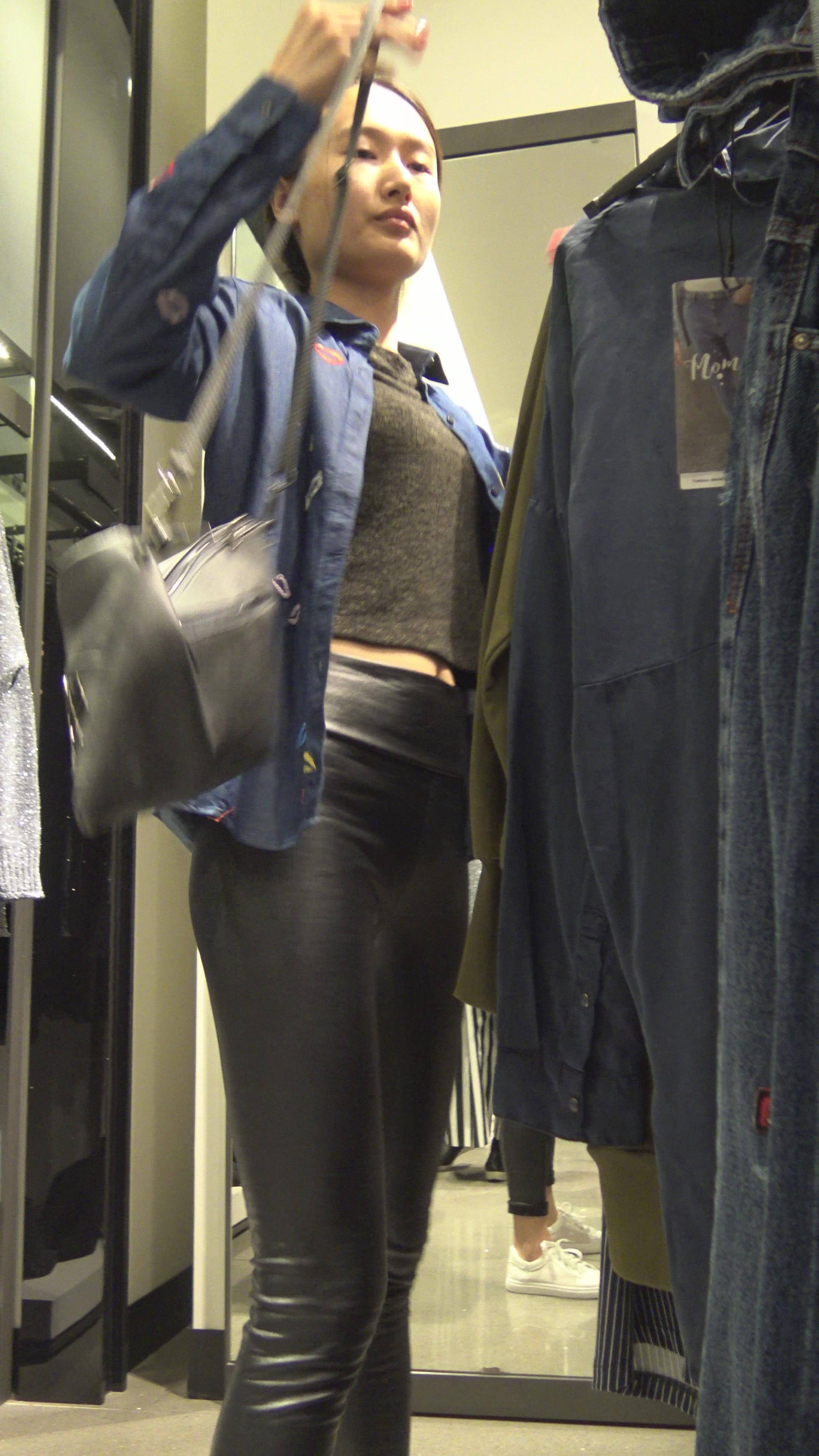 4K - 內痕明显的紧身皮裤姑娘服装店试衣 编号7756