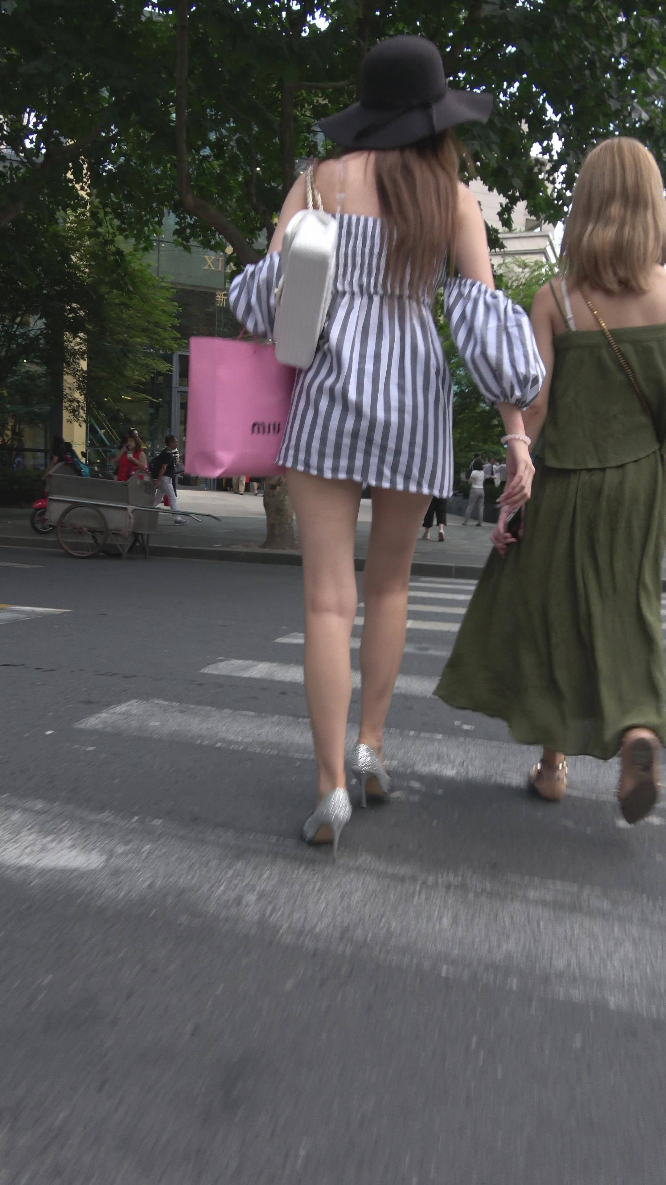 4K - 街拍大黑帽性感美腿街拍美女 编号7769
