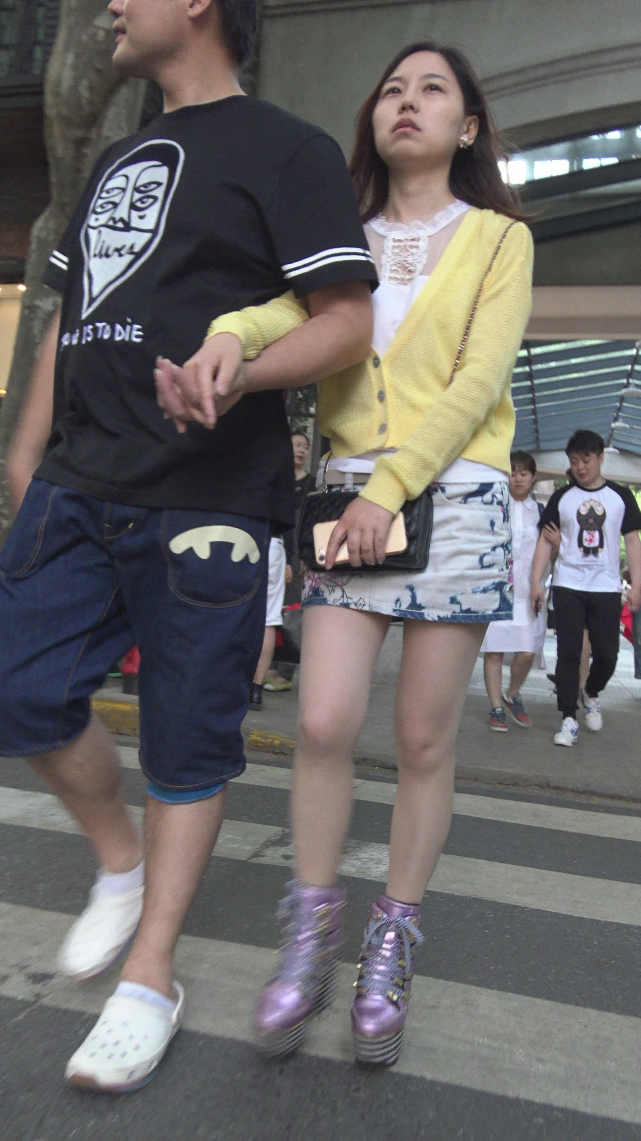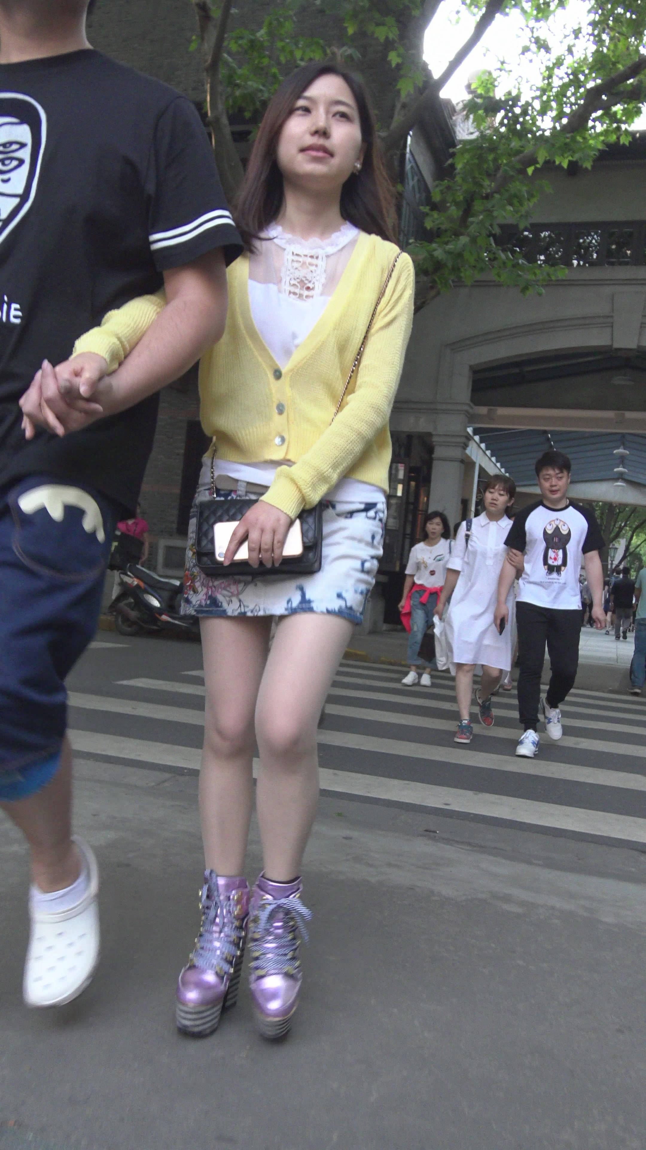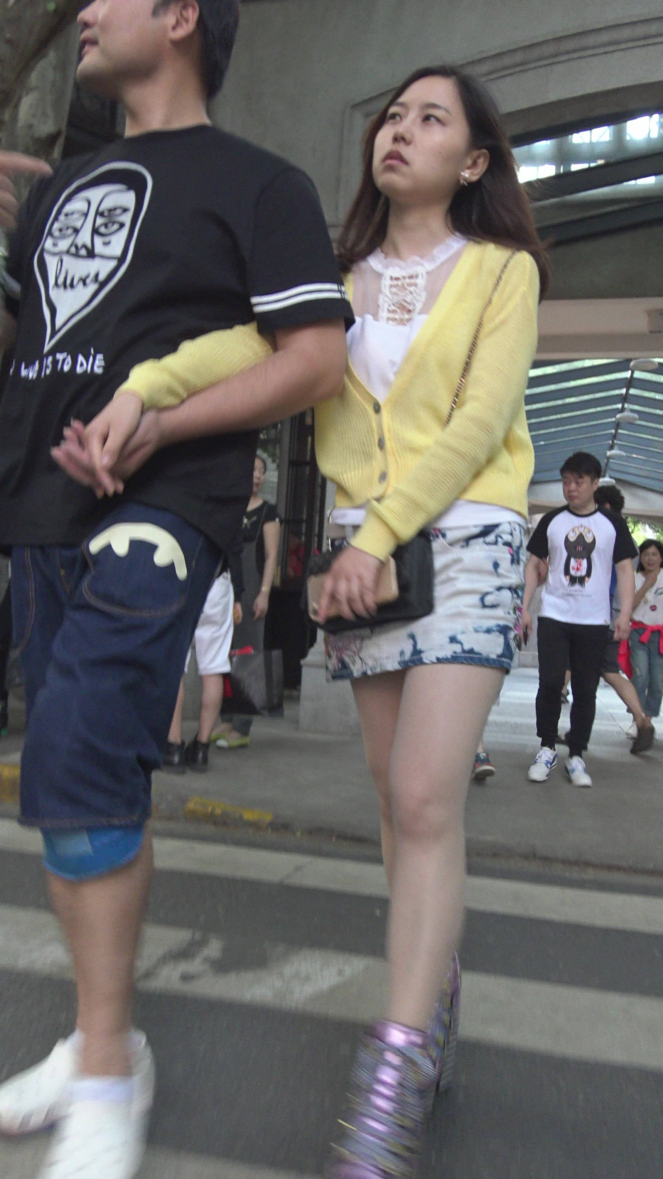 4K 黄色针织衫街拍短裙小姐姐 编号7775