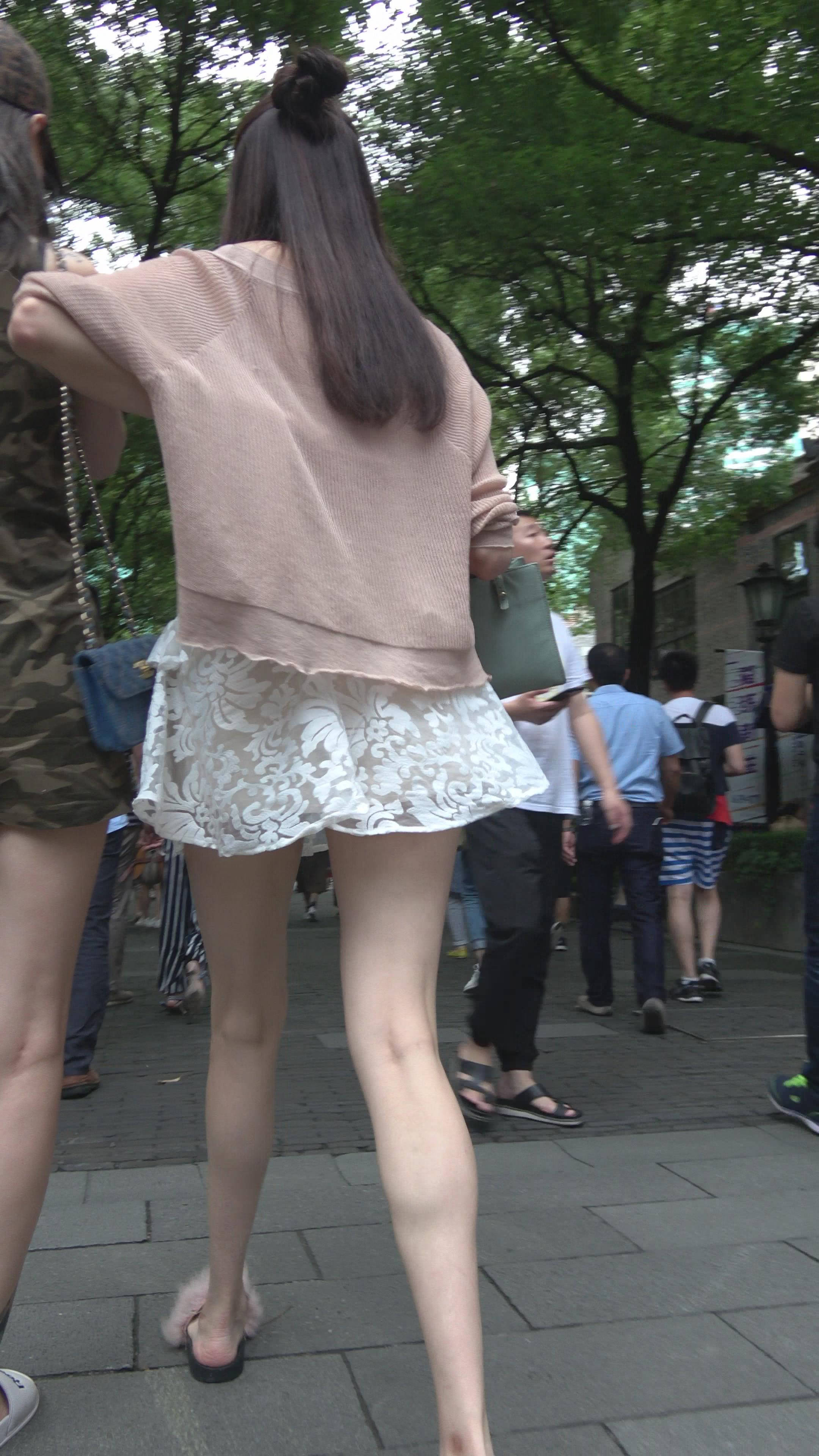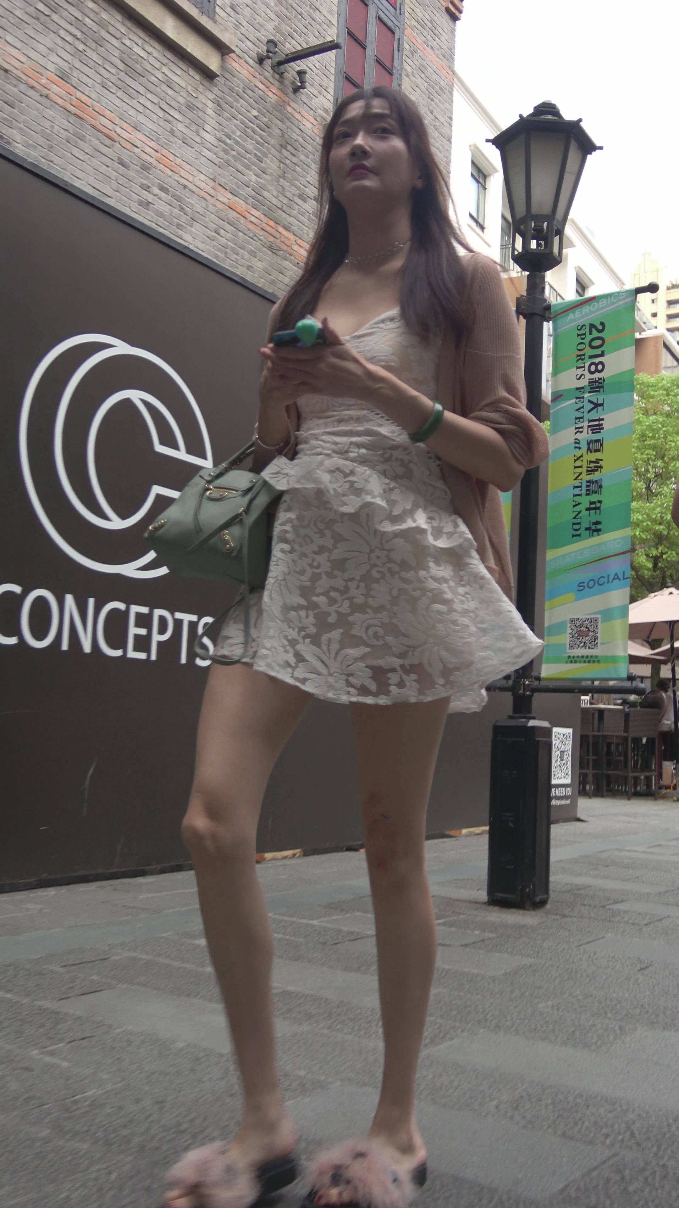 4K 街拍白色蕾丝连衣裙性感美女 编号7779