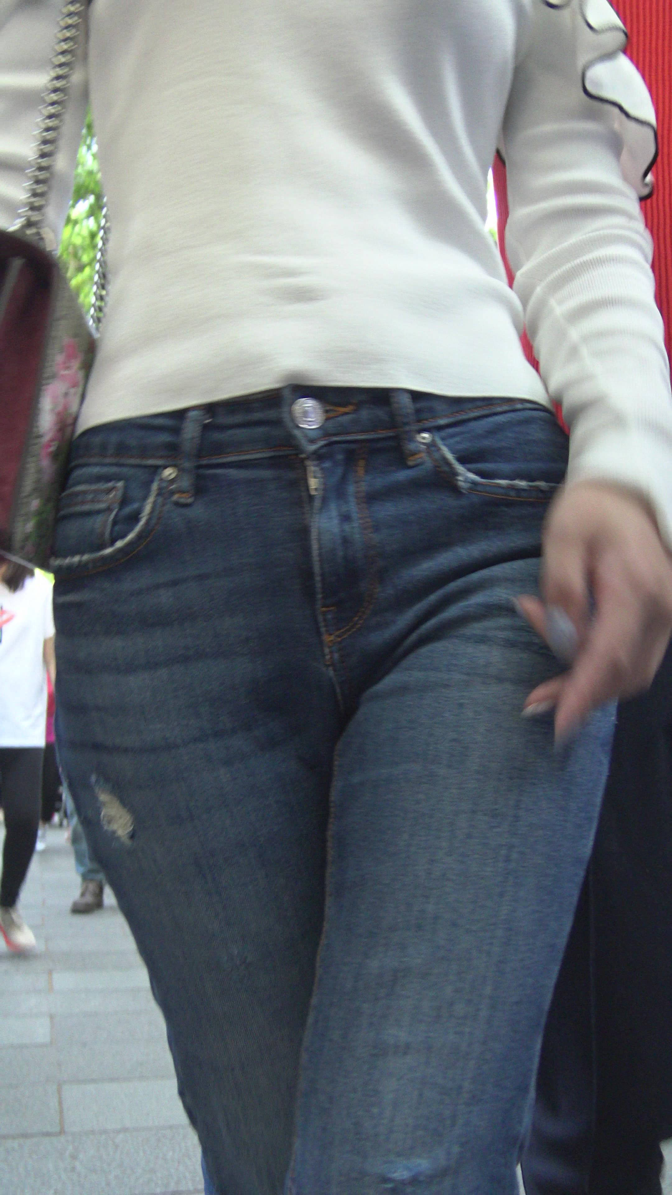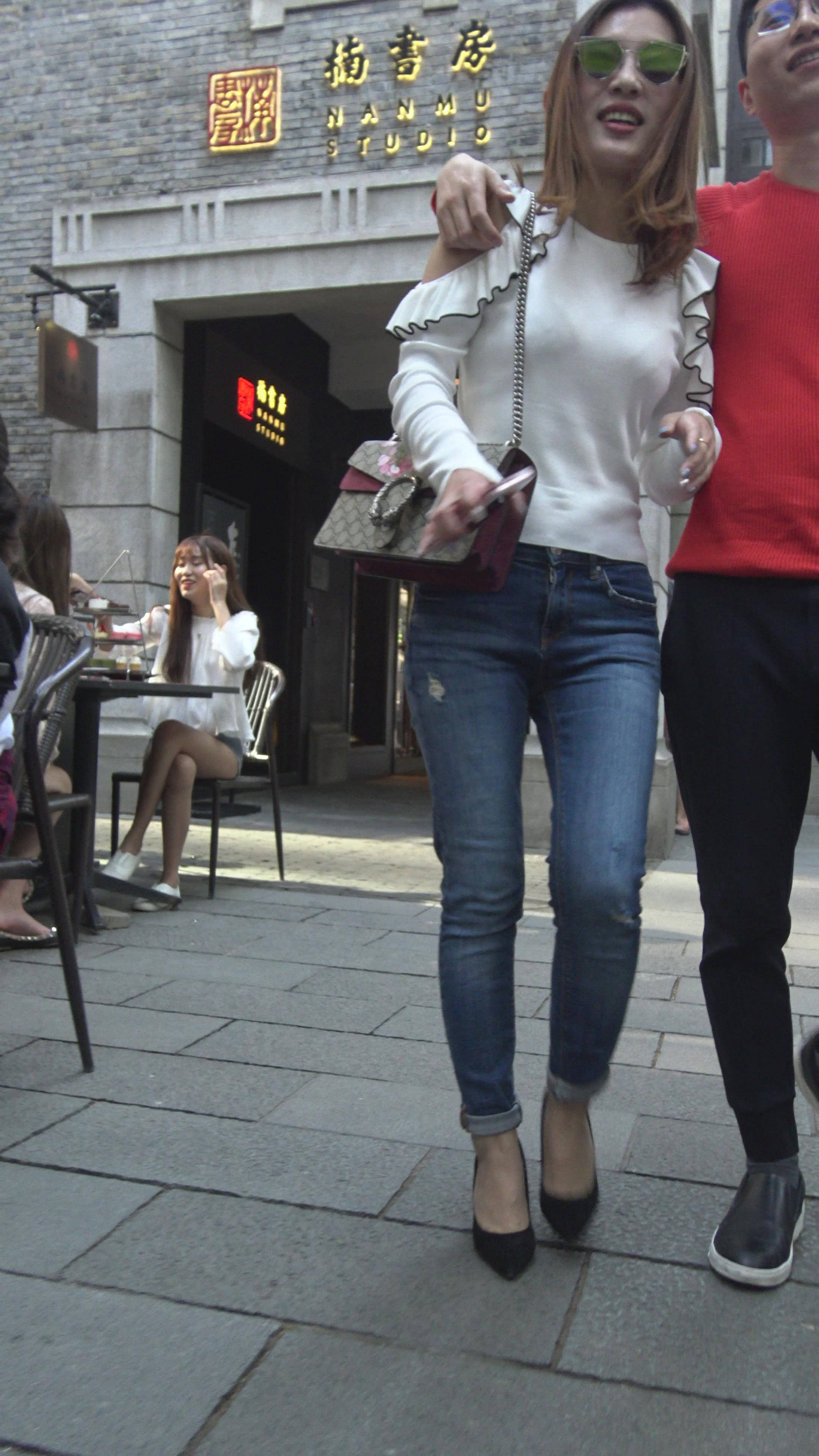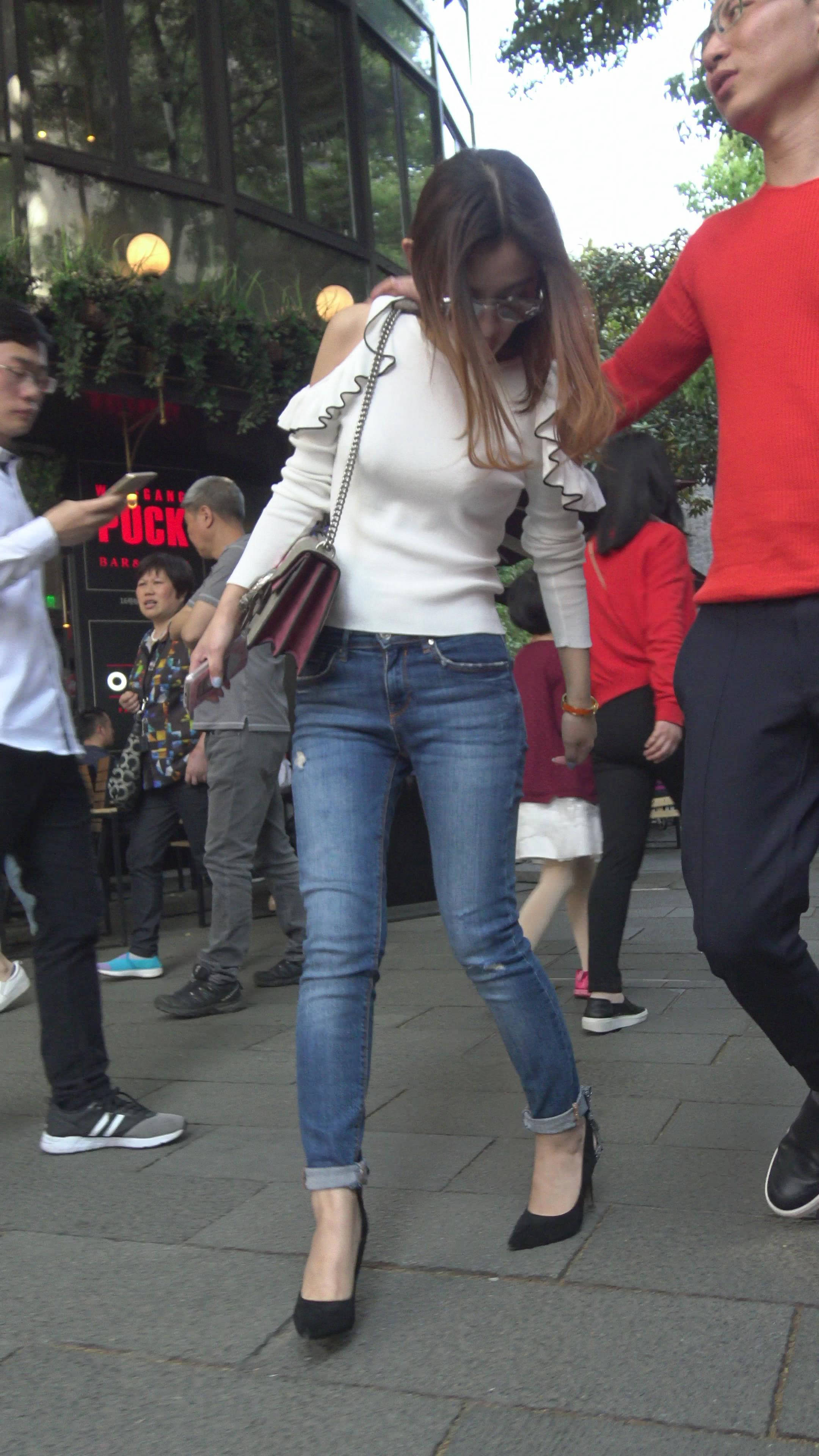 4K - 极品性感高跟紧身蓝牛墨镜美女 编号7819