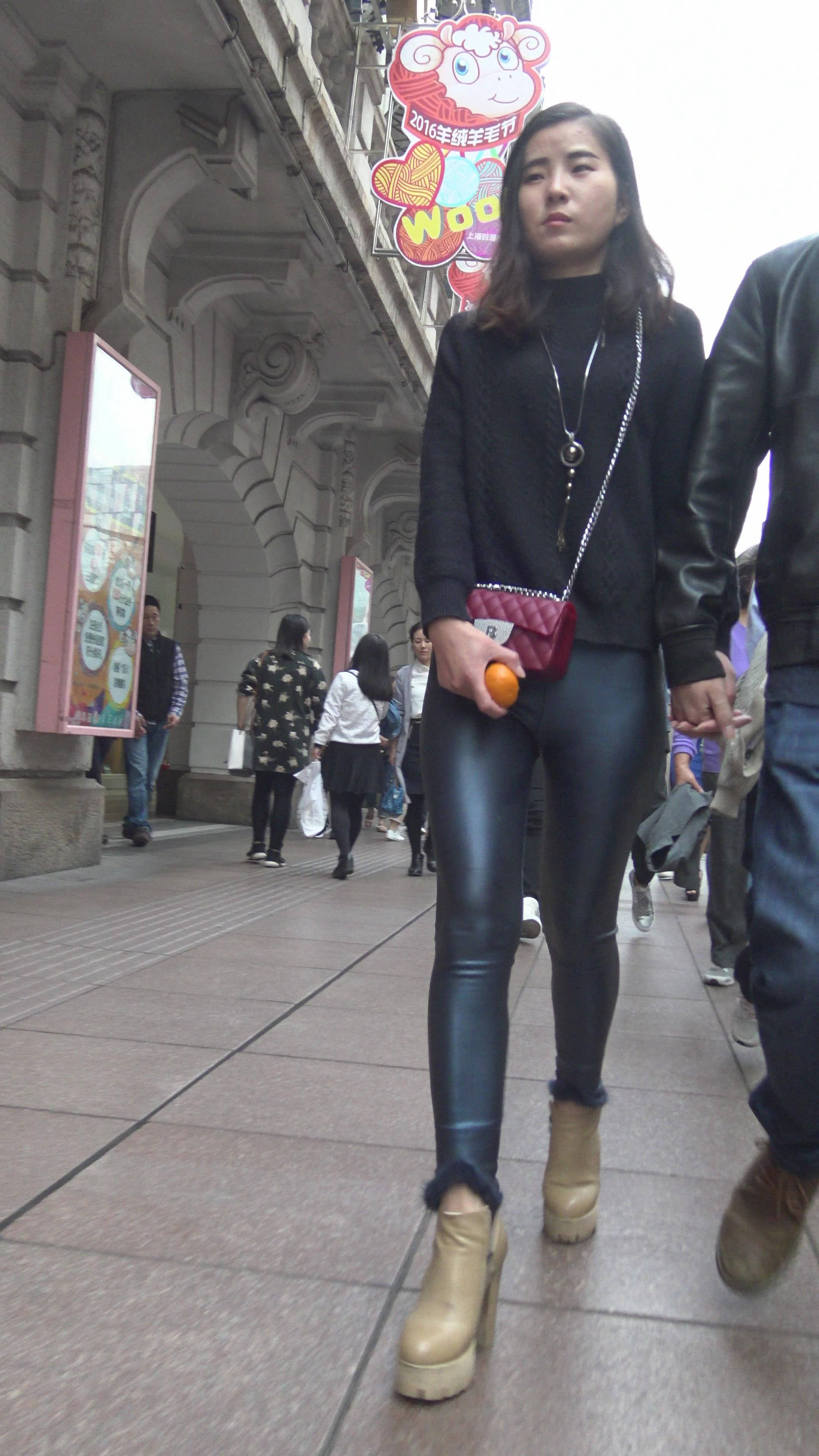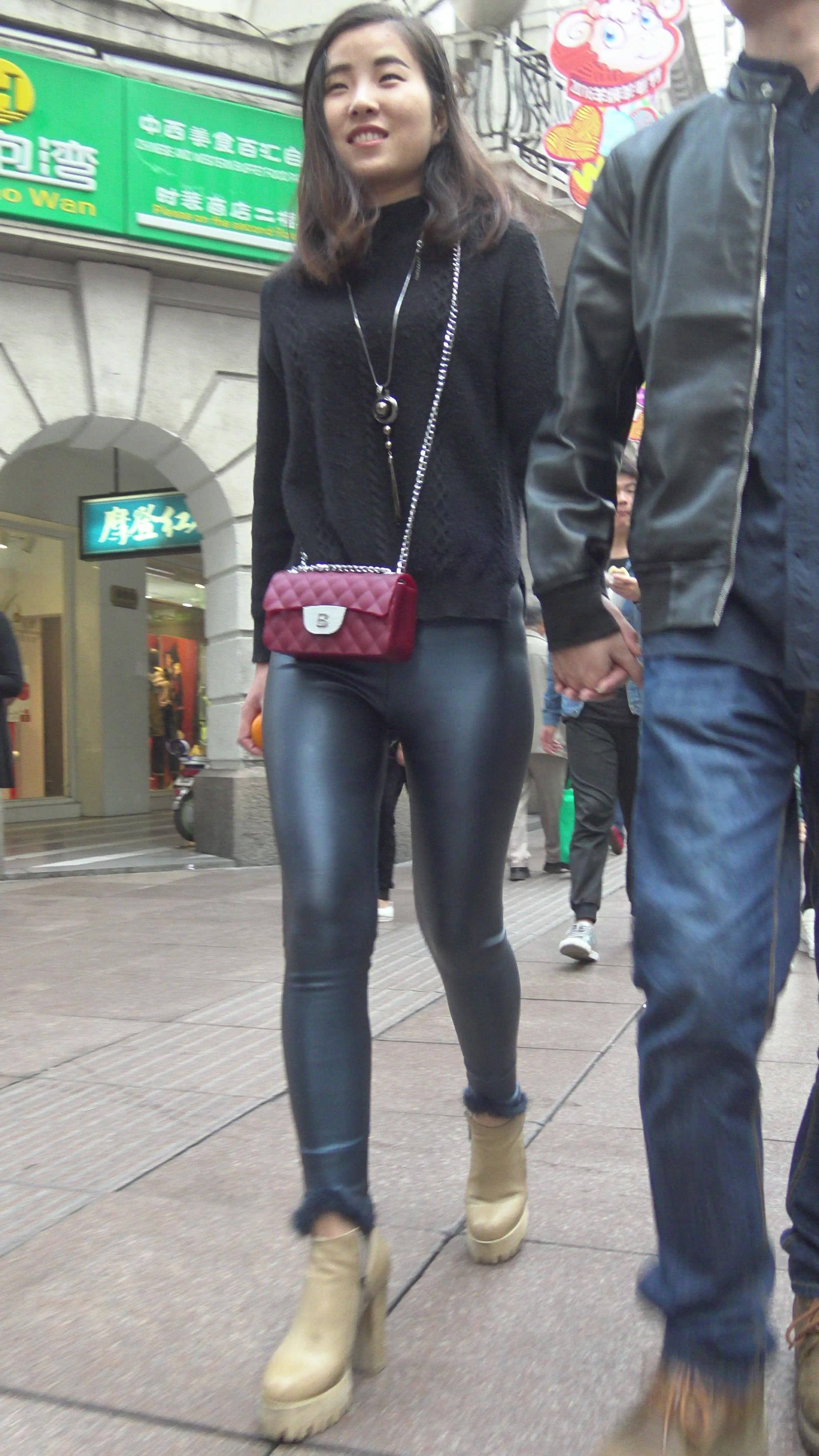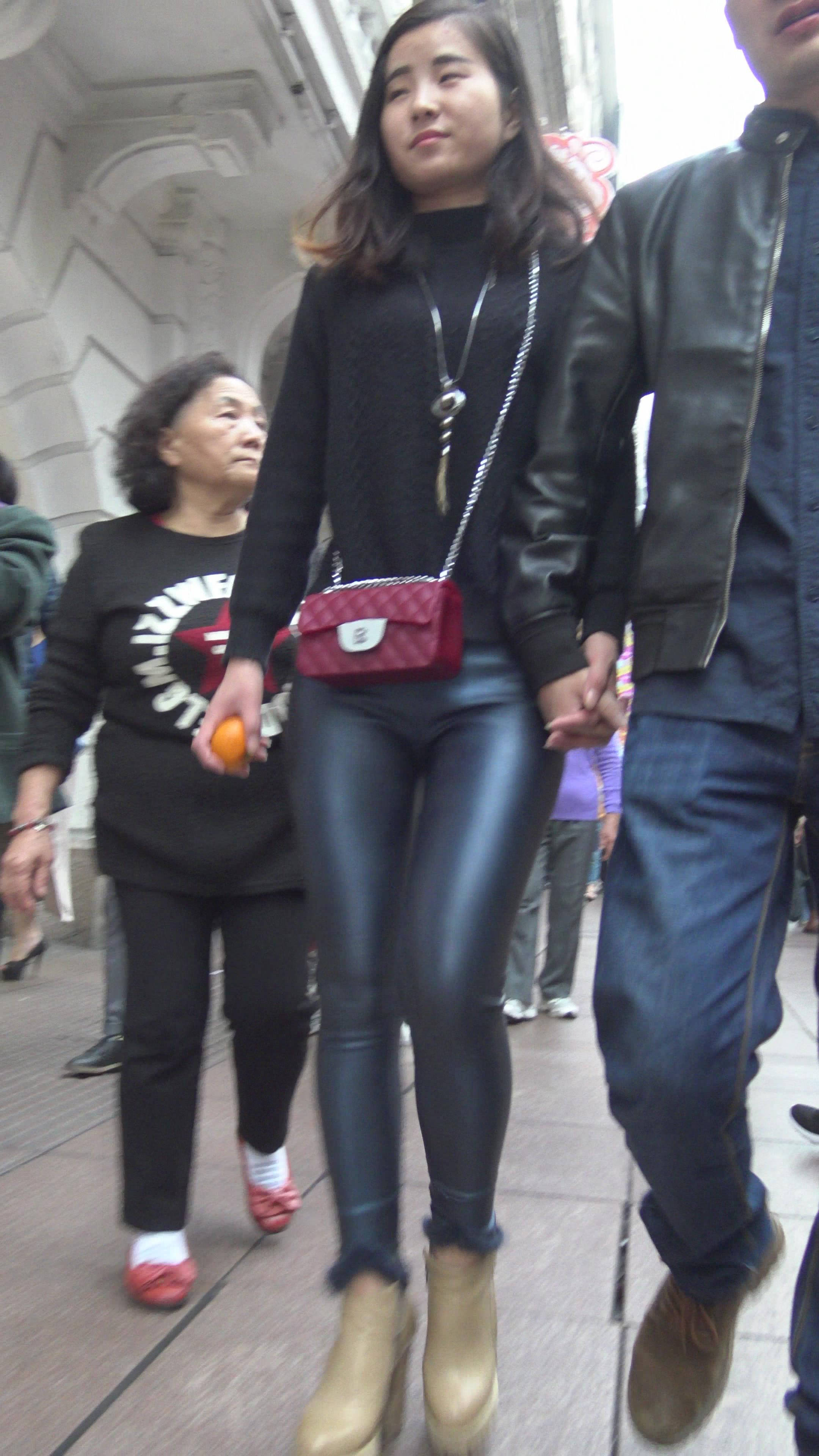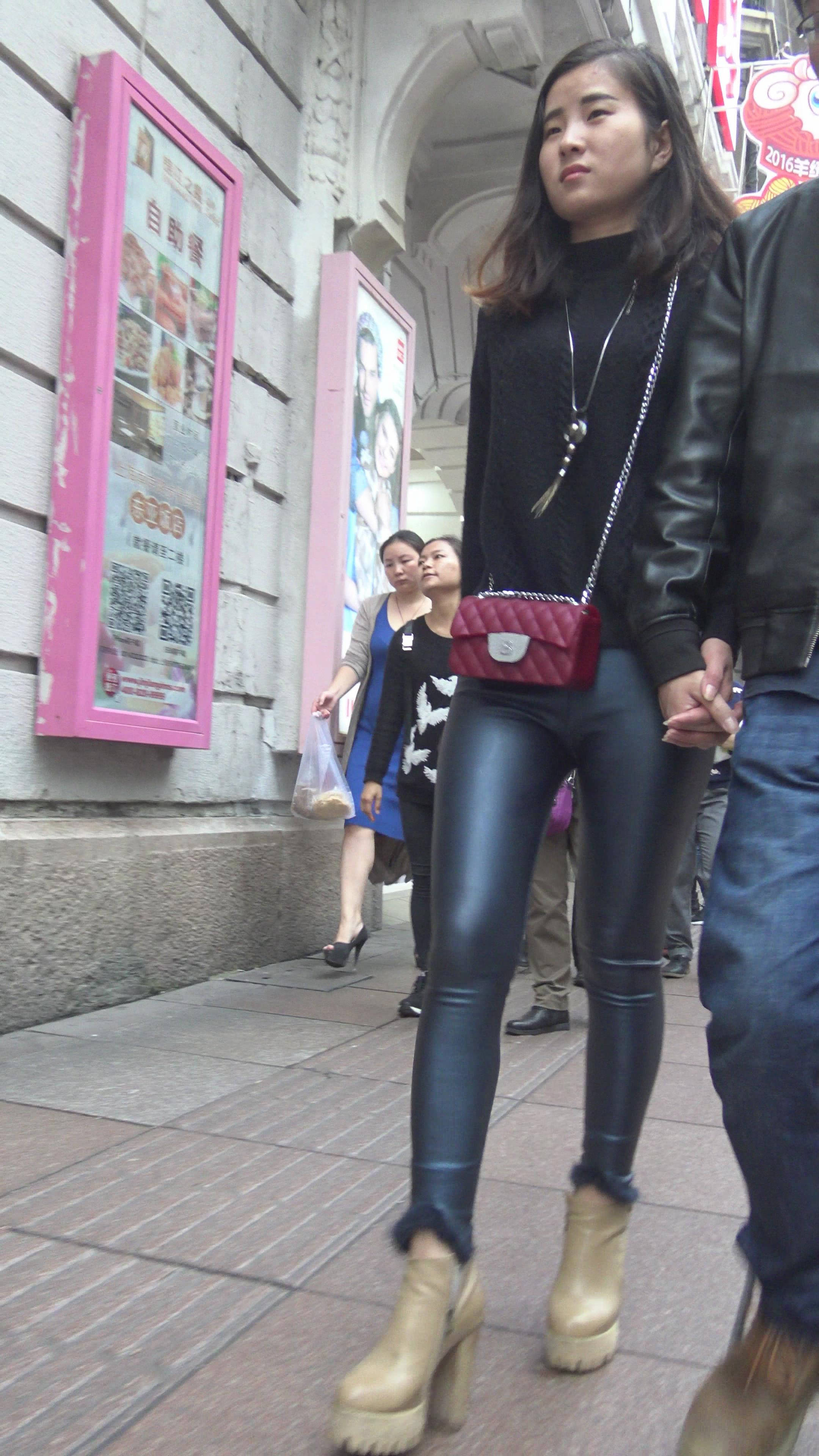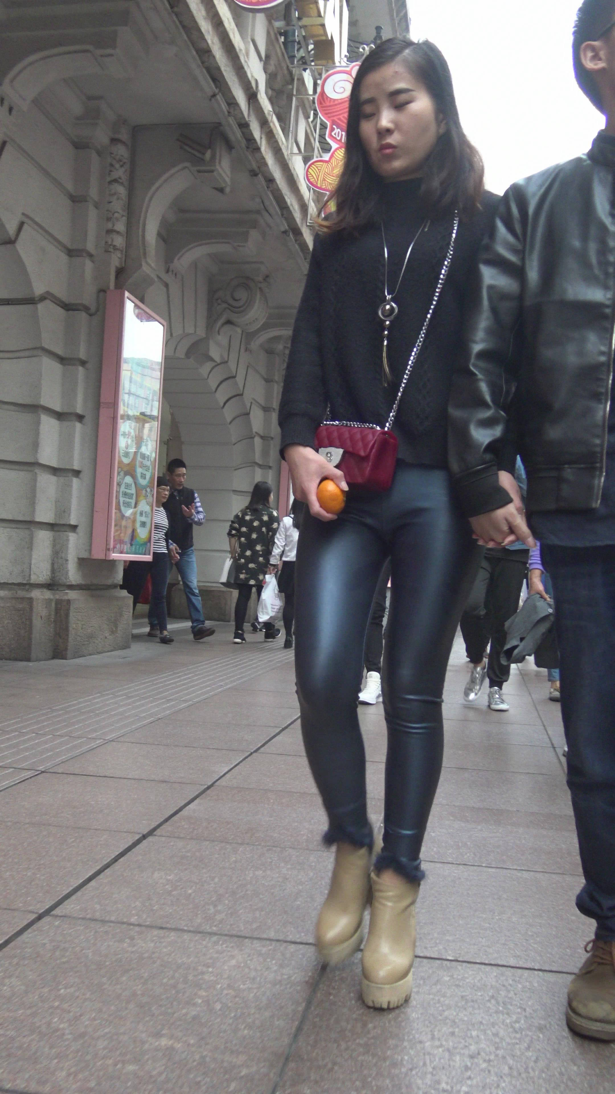 4K - 完美身材街拍皮裤性感美女 2 编号7826