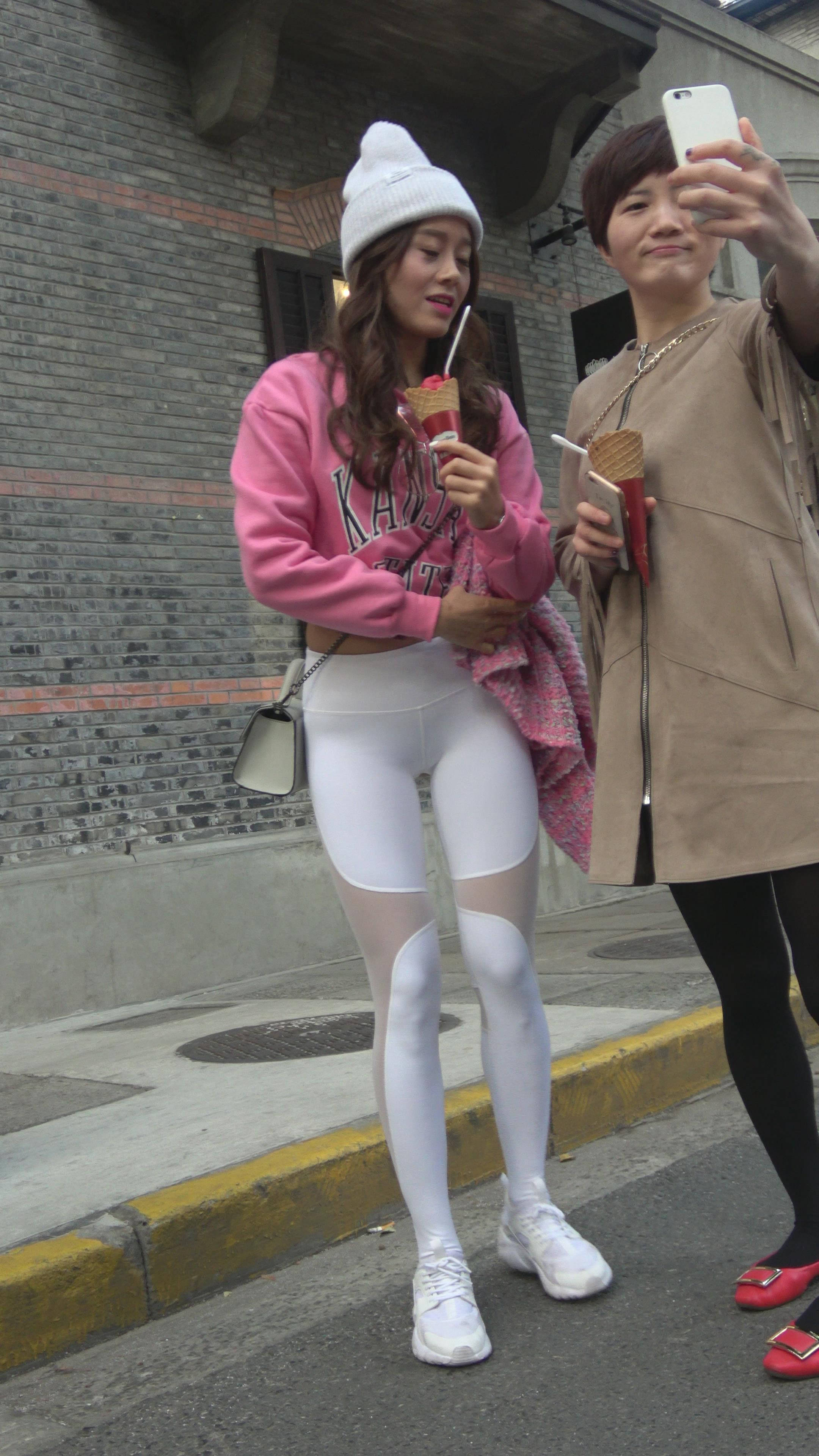 4K - 街拍紧身瑜伽裤粉衣性感美臀 1 编号7834