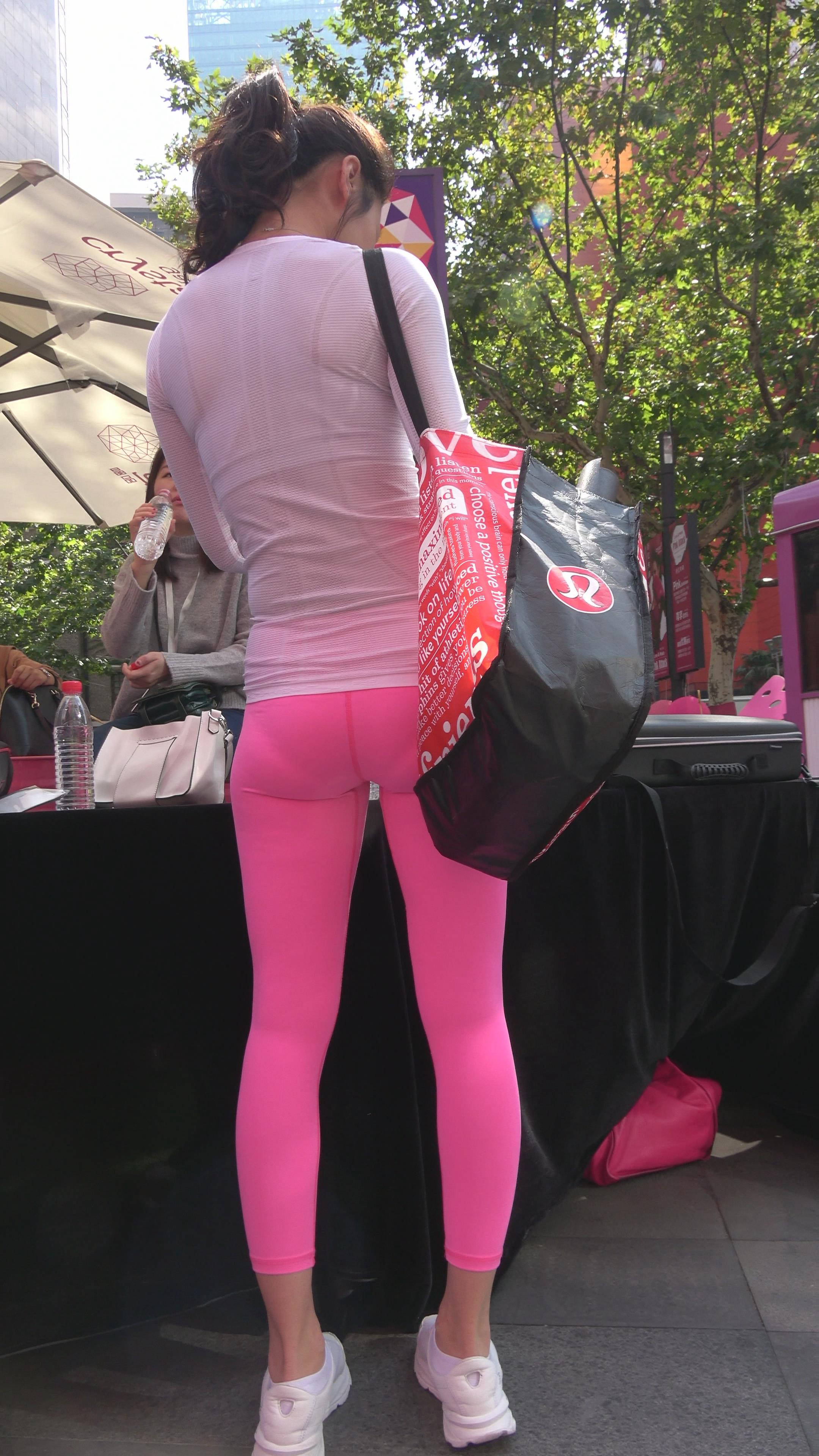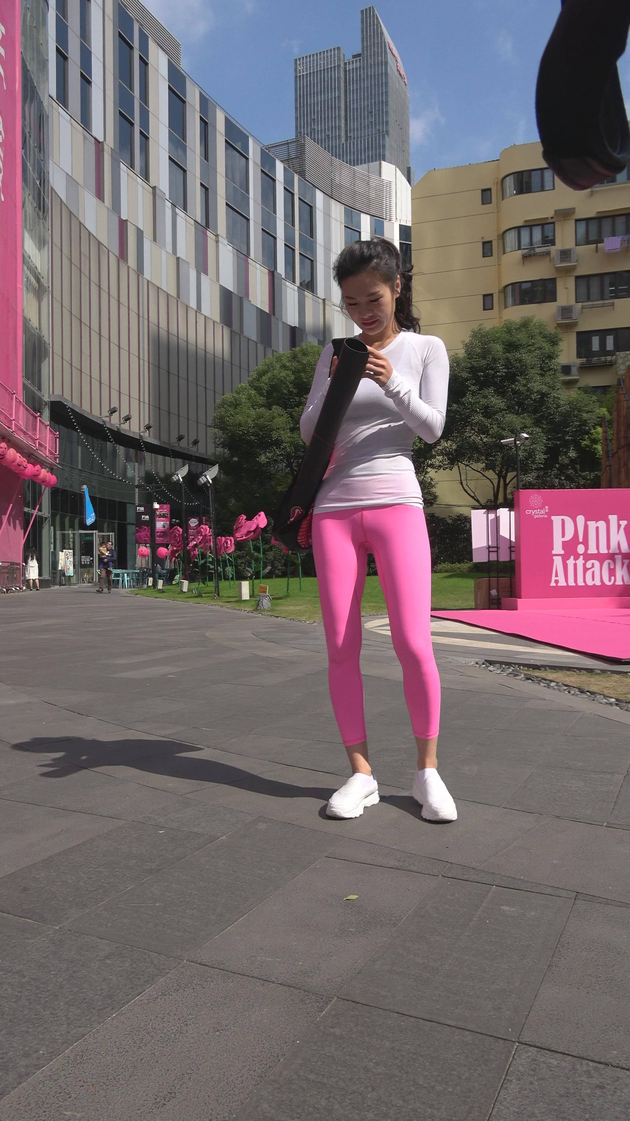 4K - 街拍紧身粉色瑜伽裤性感美女第二季 编号7838