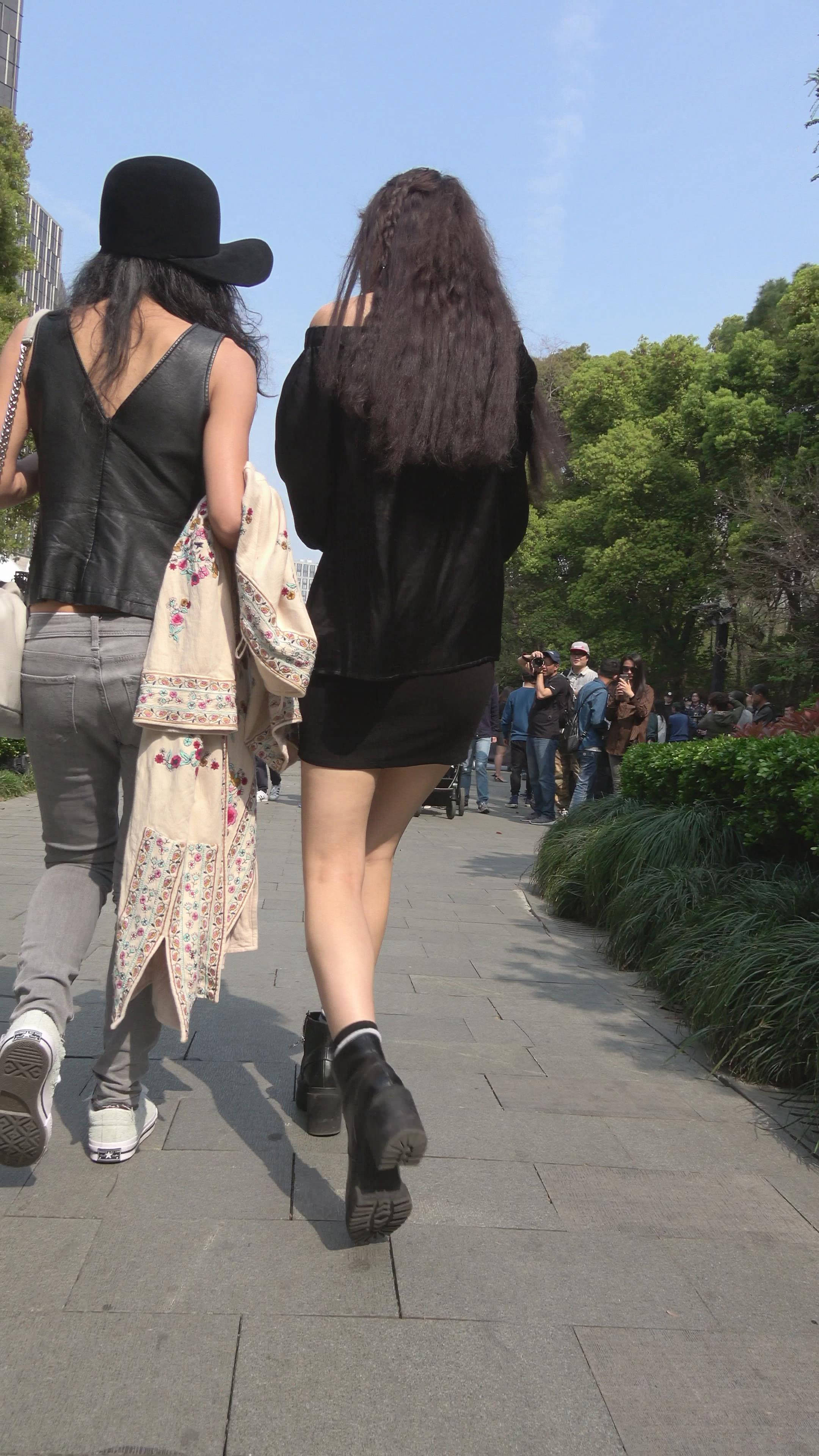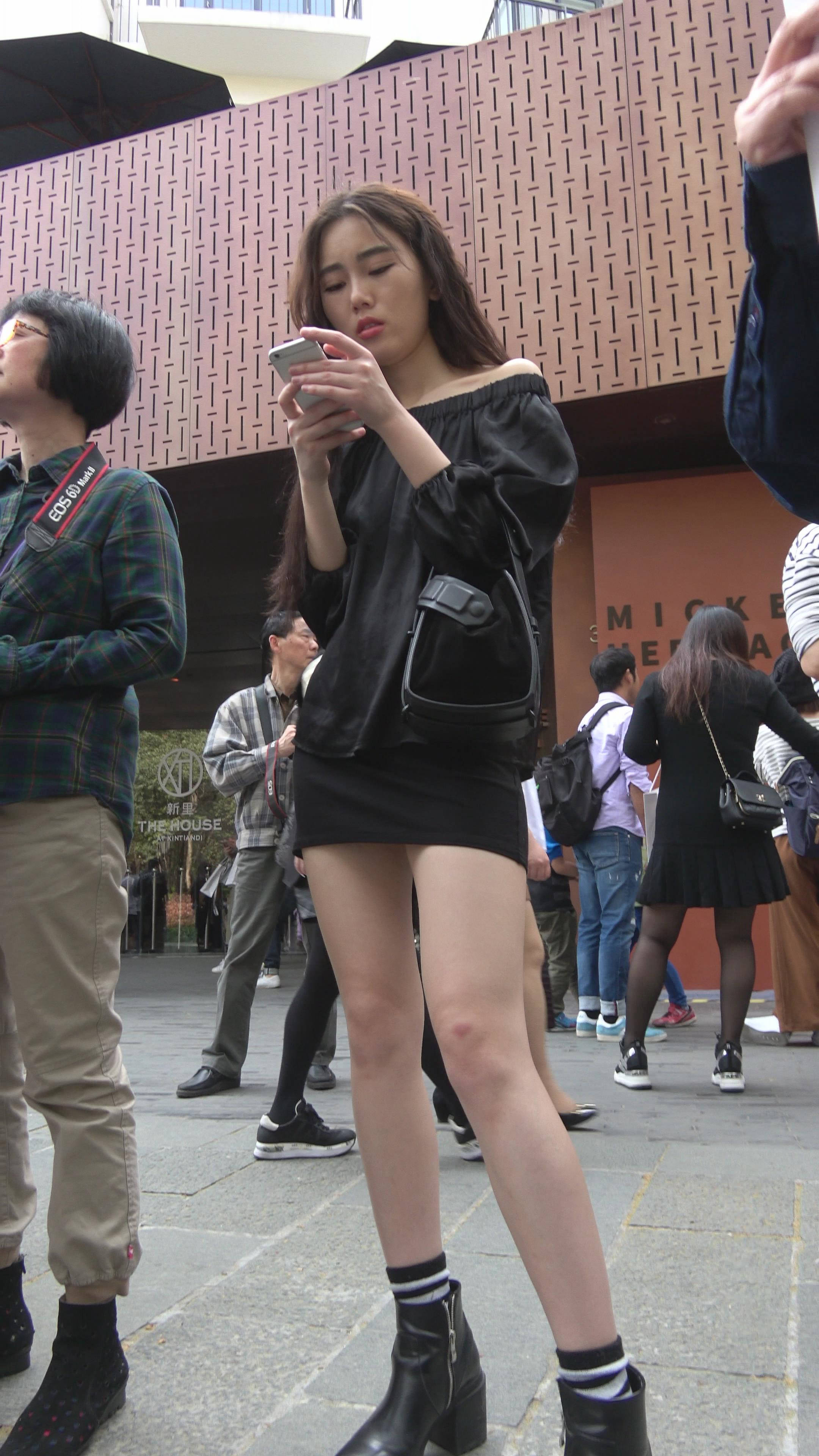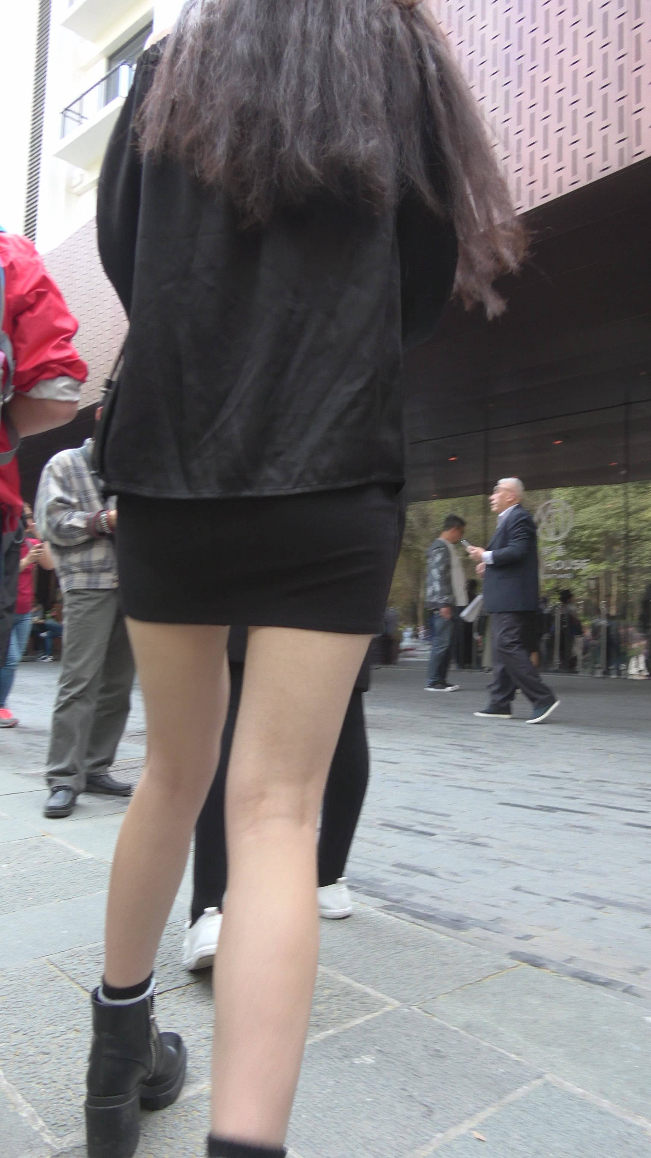 4K - 街拍黑裙性感美腿大头皮鞋小姐姐 编号7845