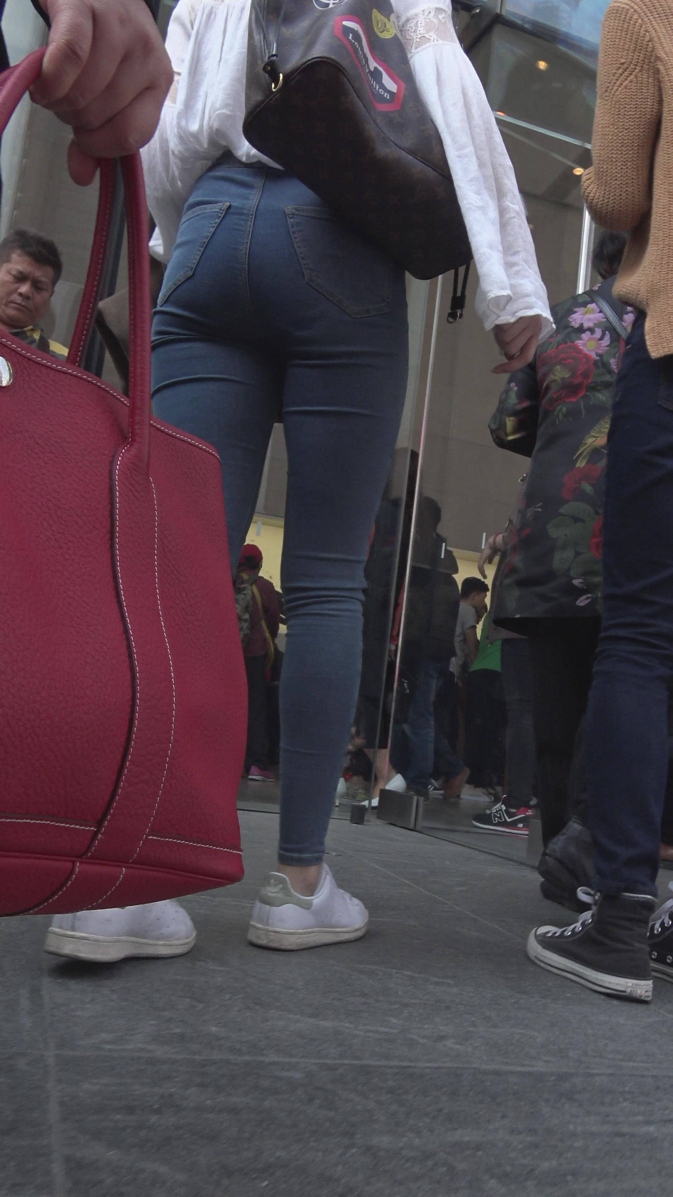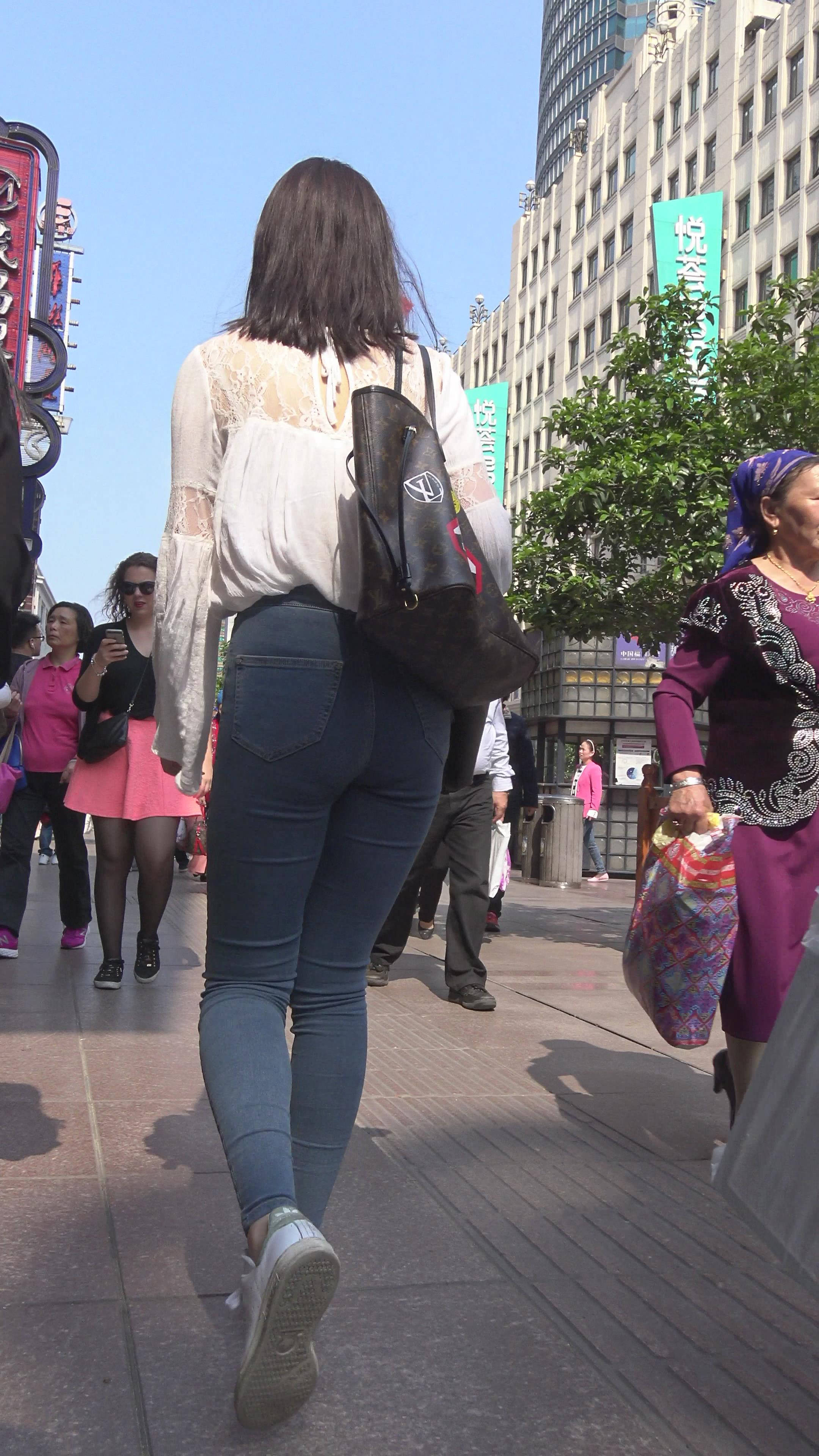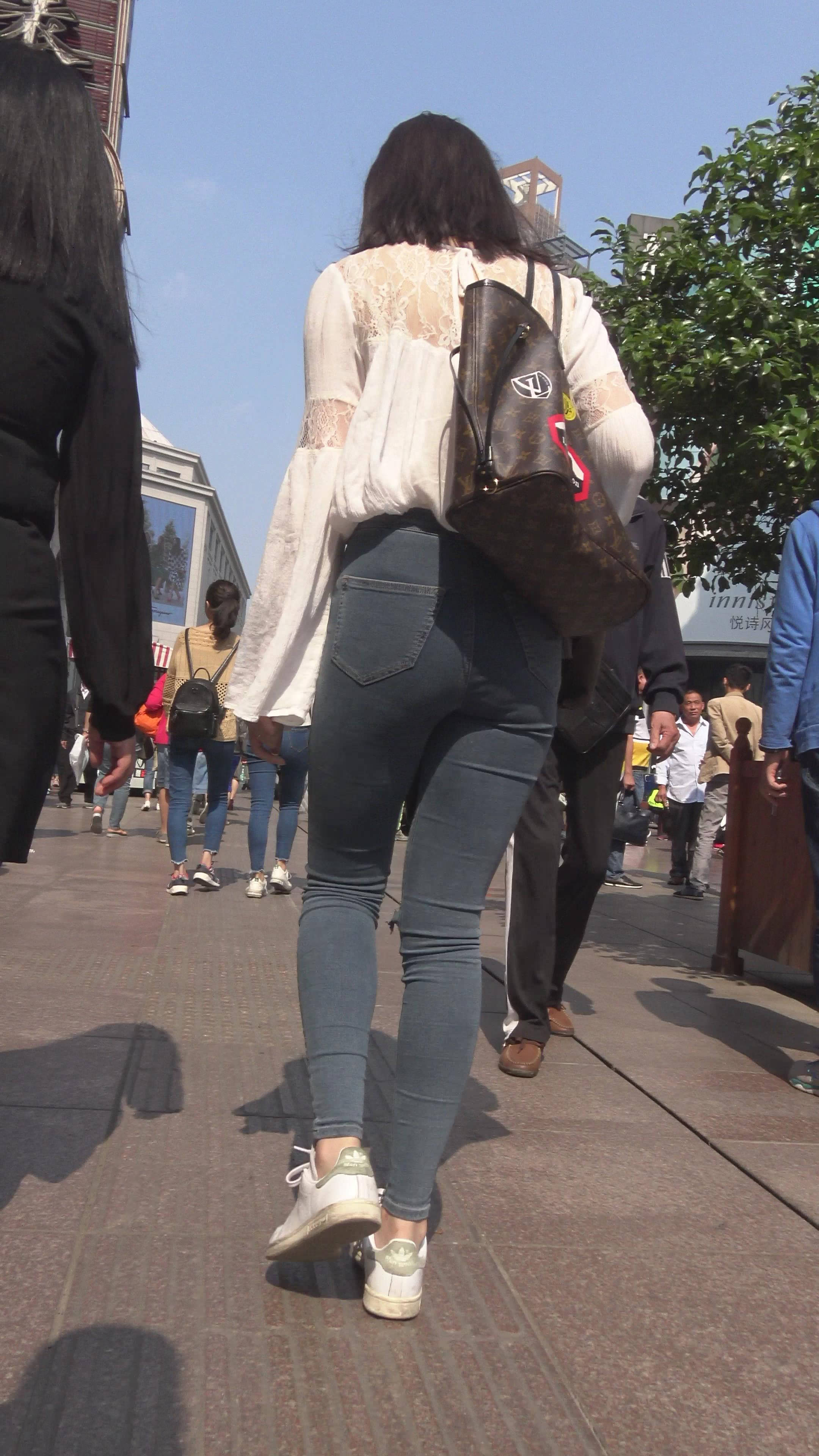 4K - 街拍紧身蓝色牛仔裤性感美臀 编号7849