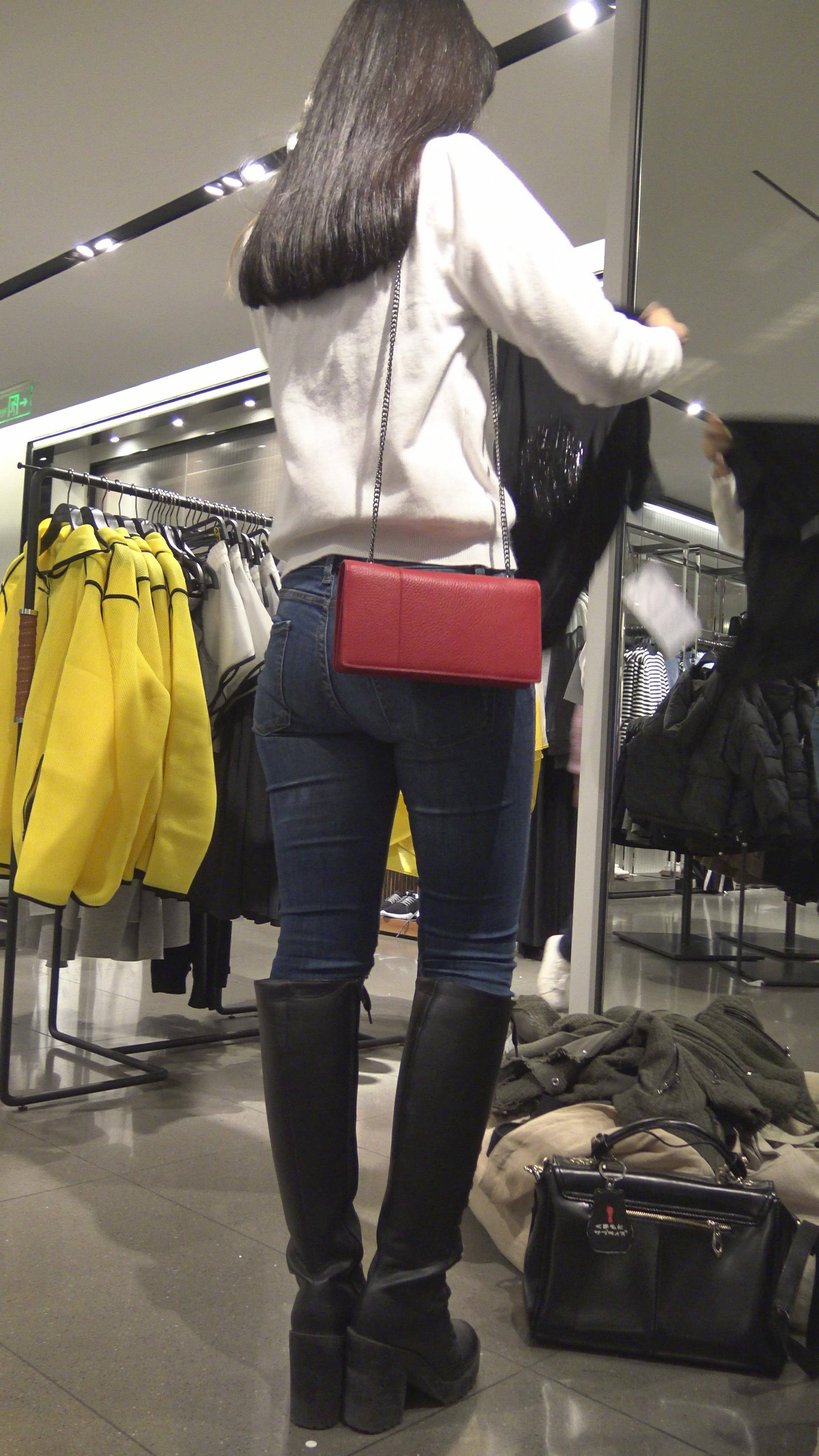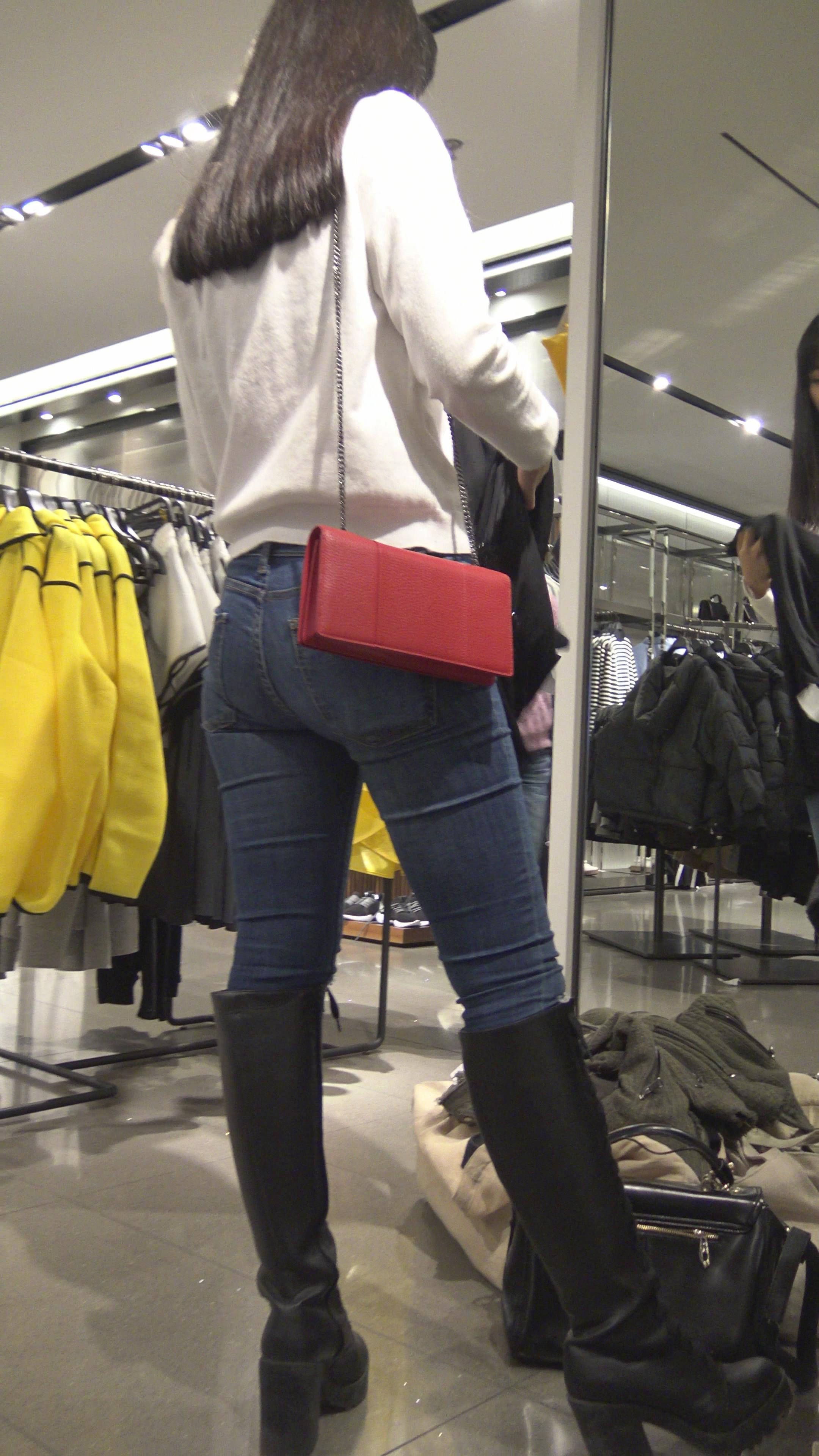 4K - 买衣服的性感街拍紧身牛仔裤美女 编号7850