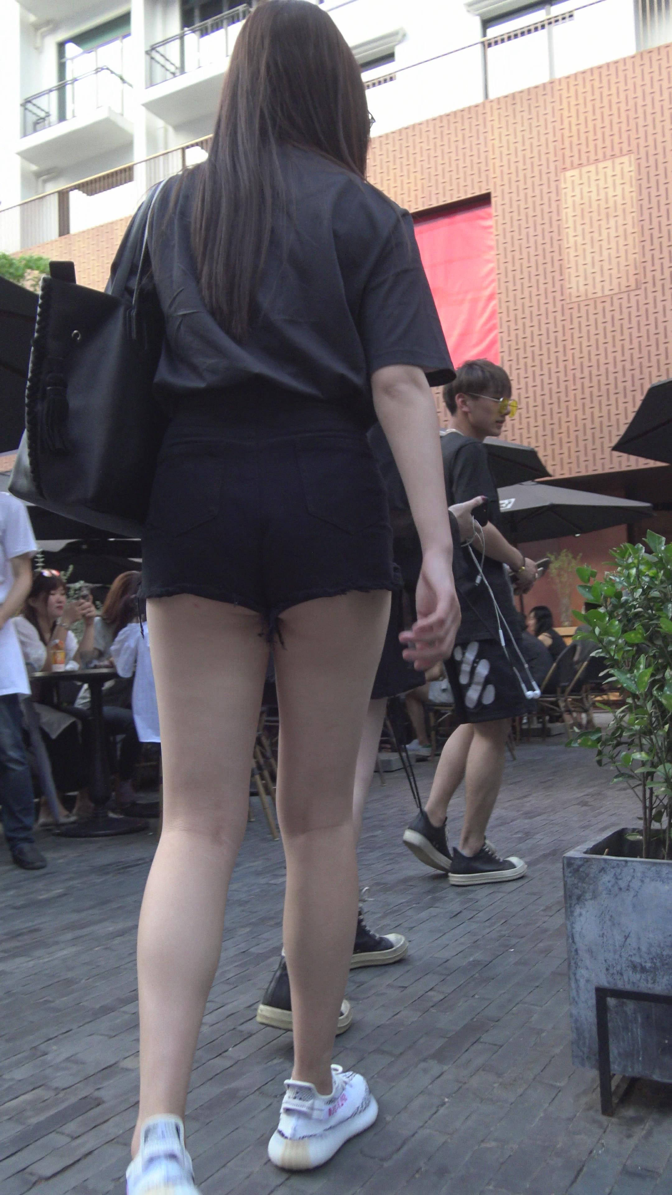 4K - 性感街拍美女的热裤包不住月牙臀 编号7859