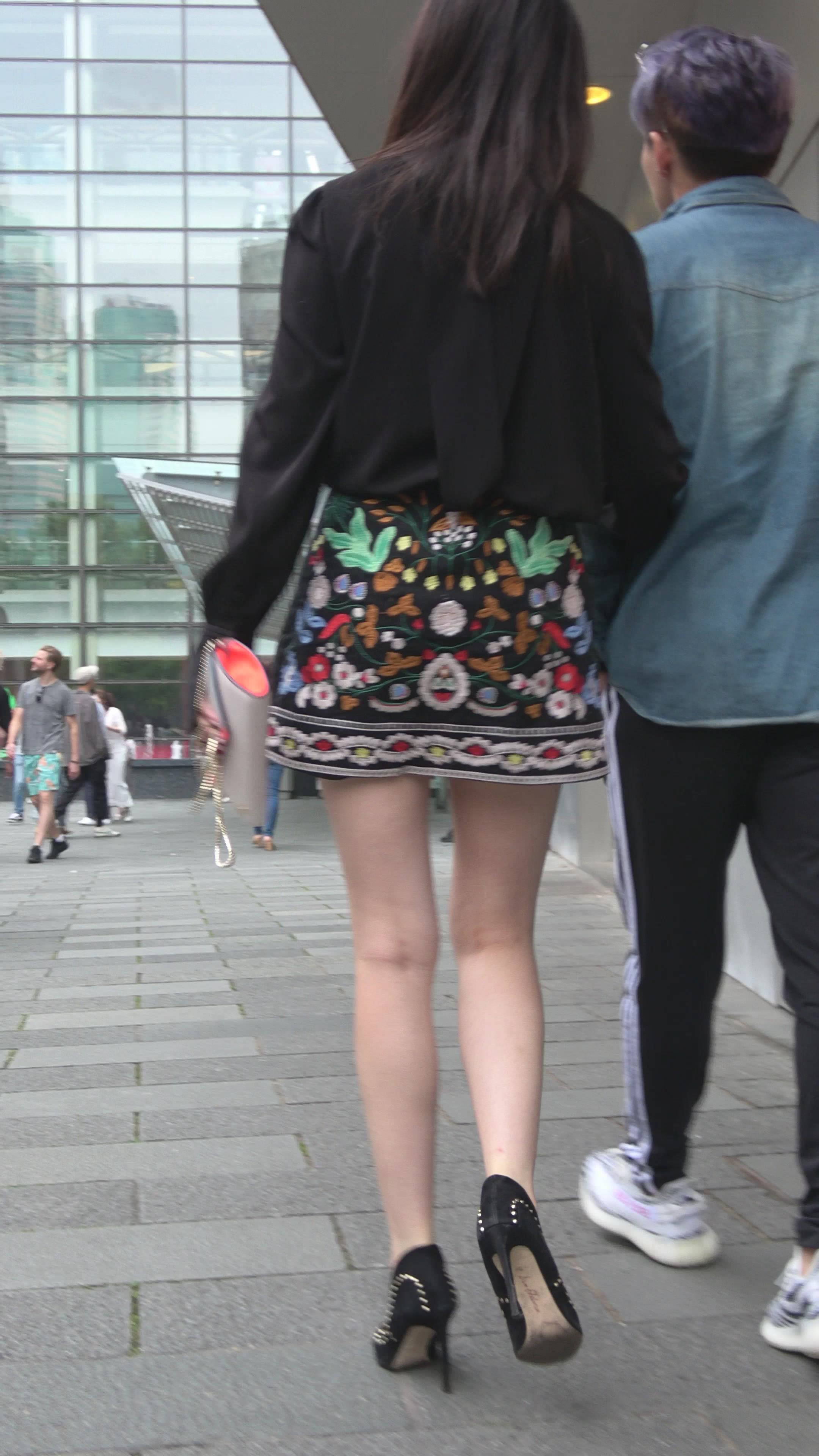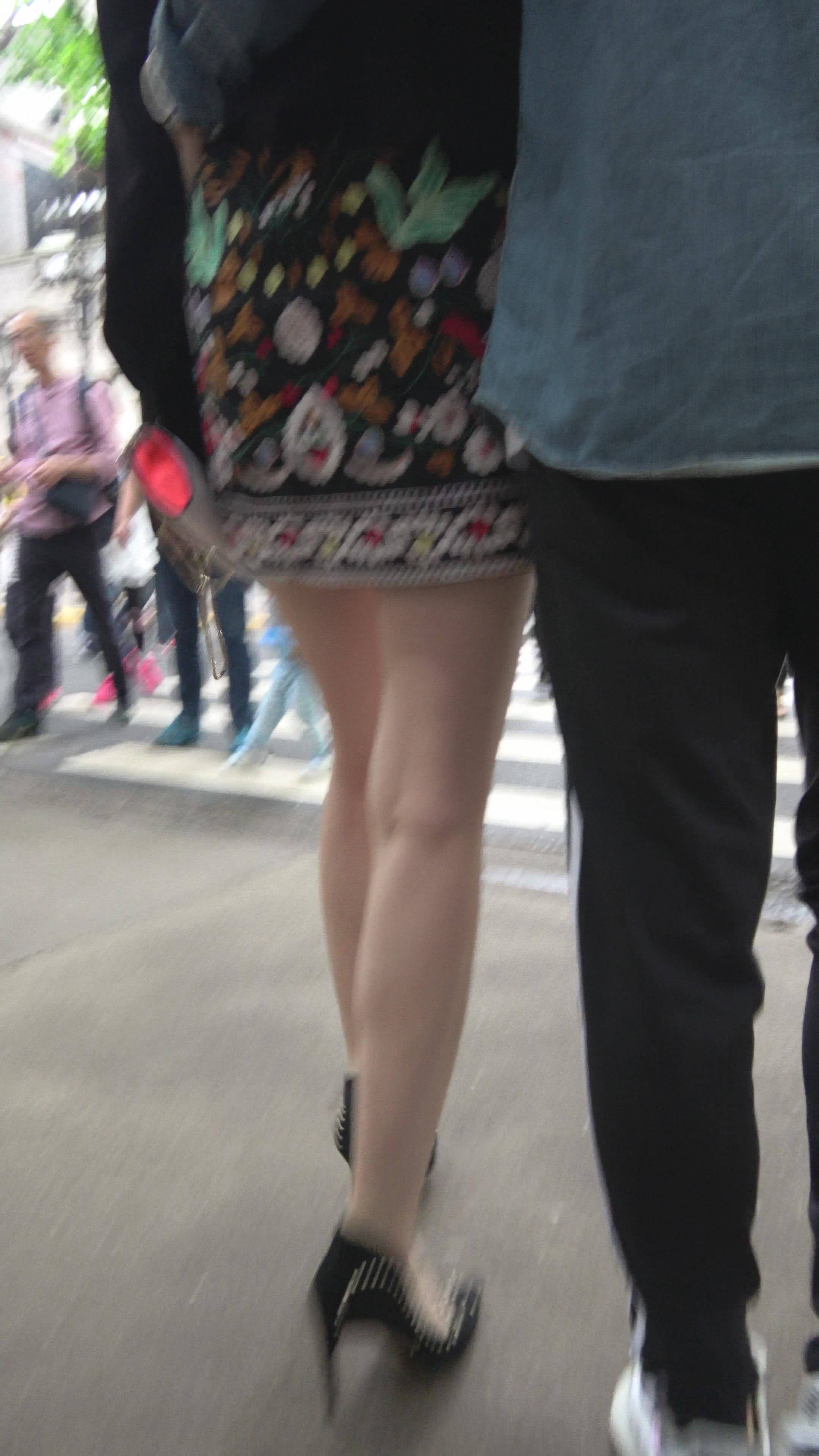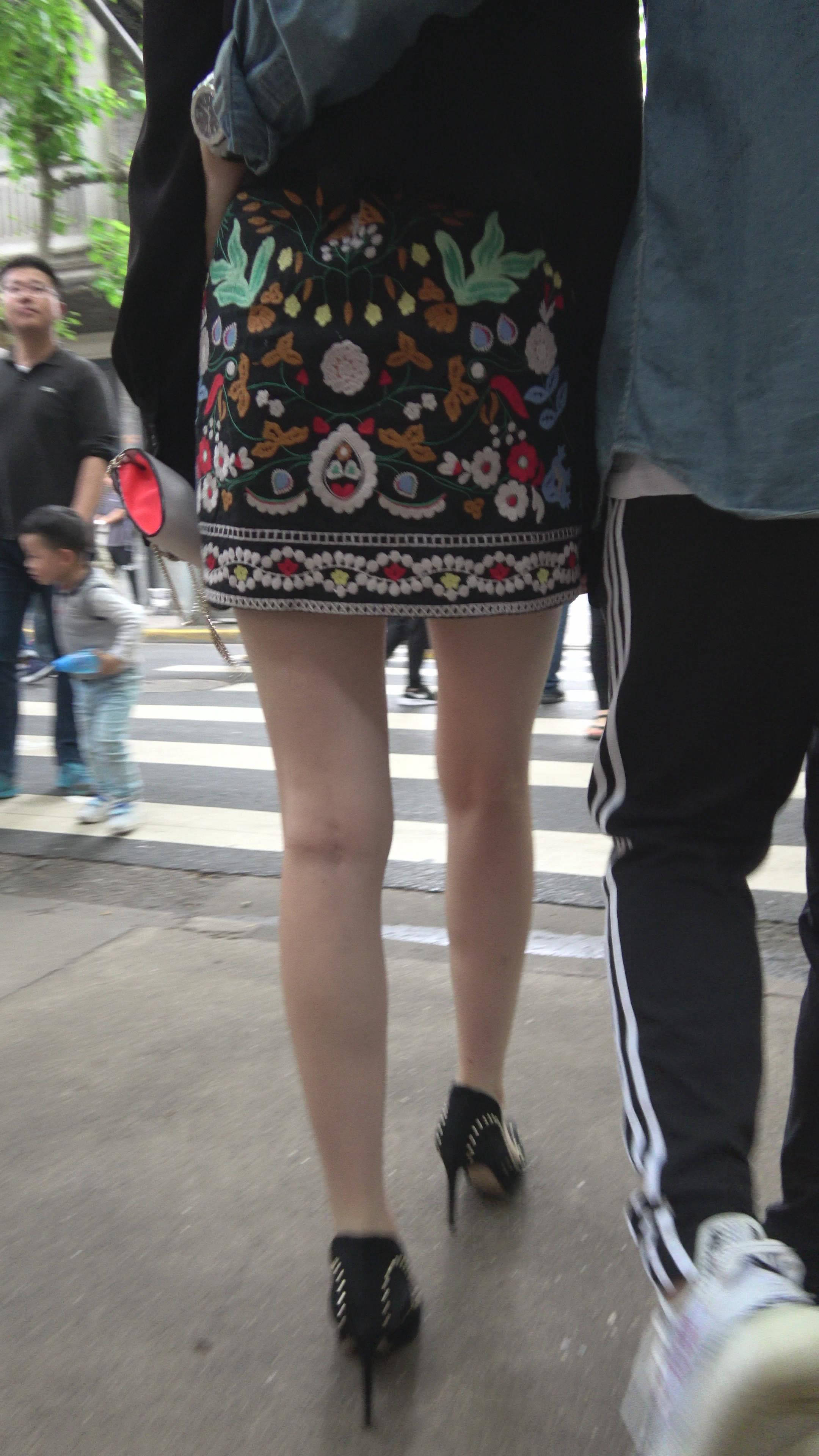 4K 大长腿街拍复古裙高跟美女 编号7866