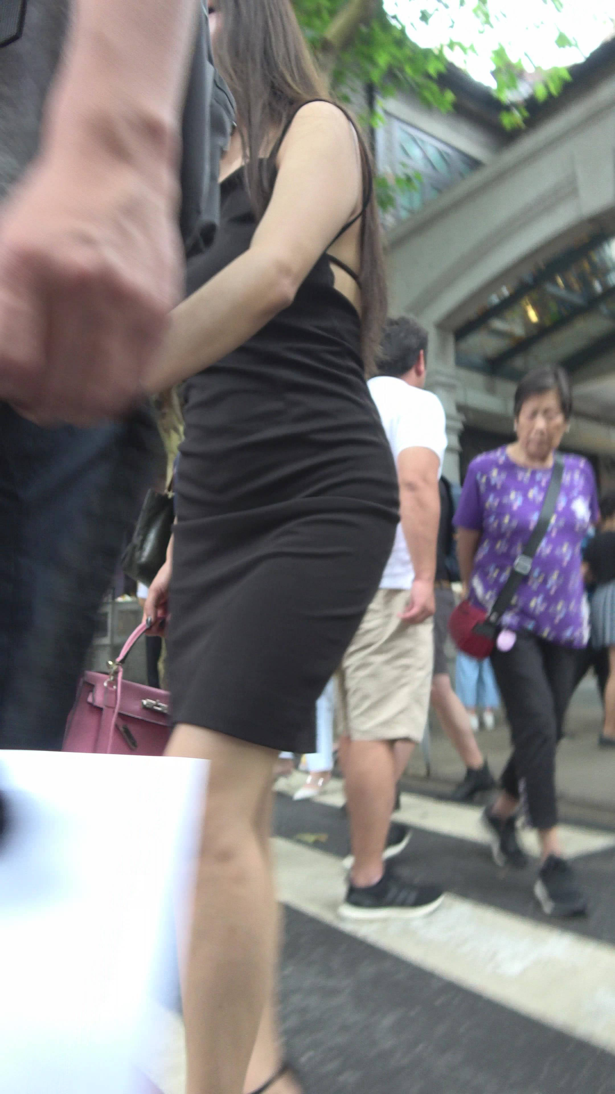 4K 黑色吊带裙街拍高跟美女姐姐 编号7877
