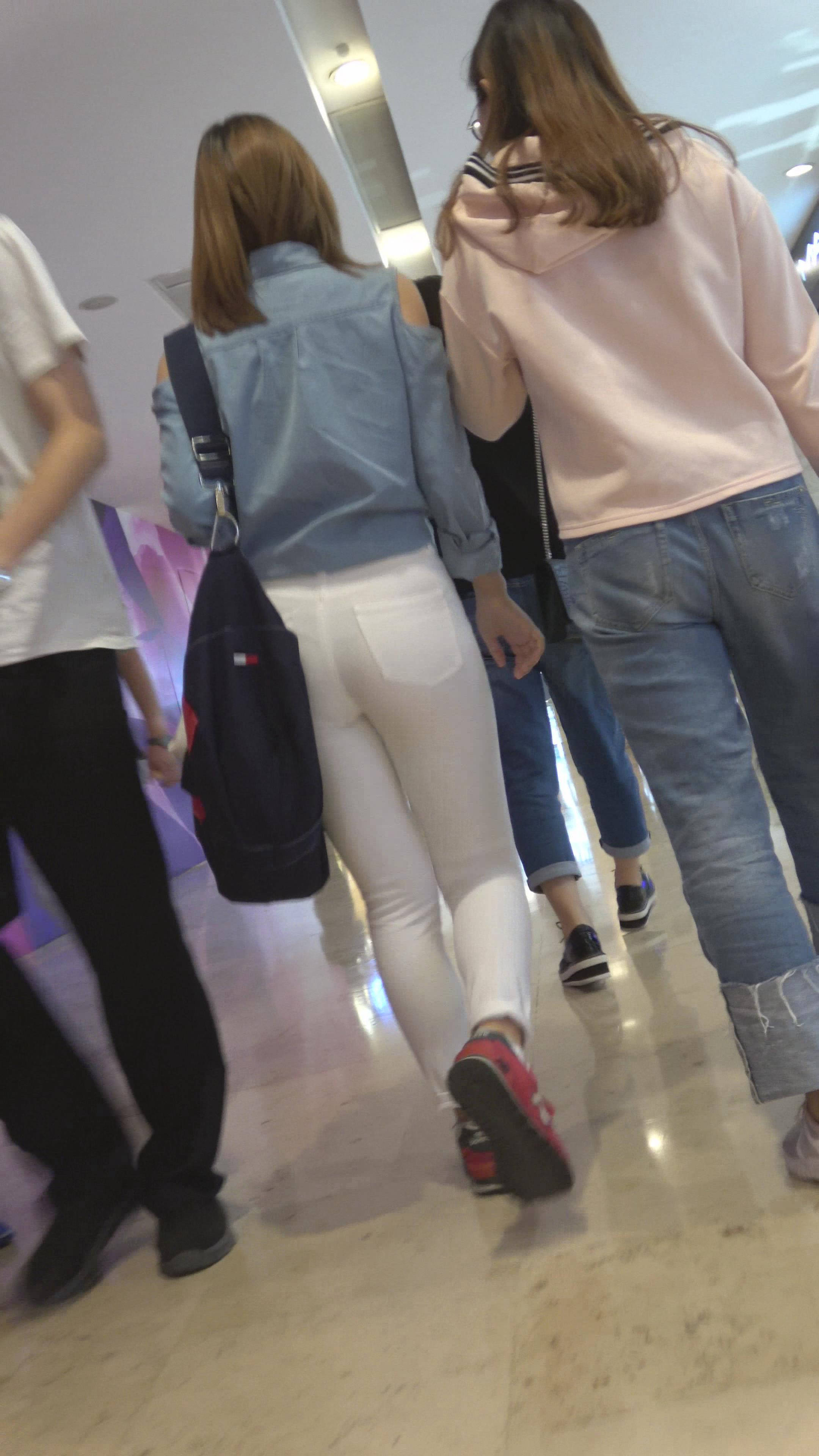 4K 街拍紧身白裤苹果臀漂亮美女 编号7894