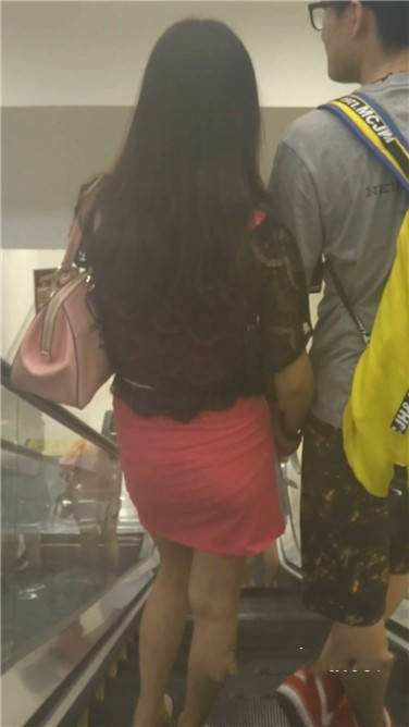 街拍粉色包臀裙性感美颜小姐姐 编号3677