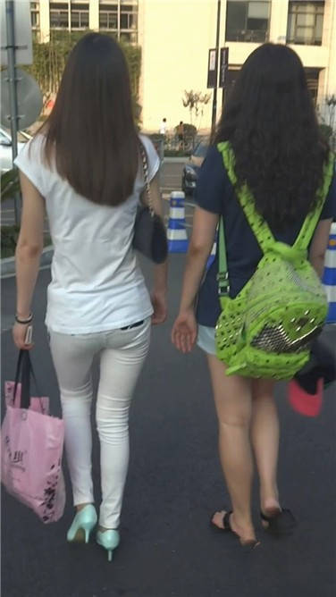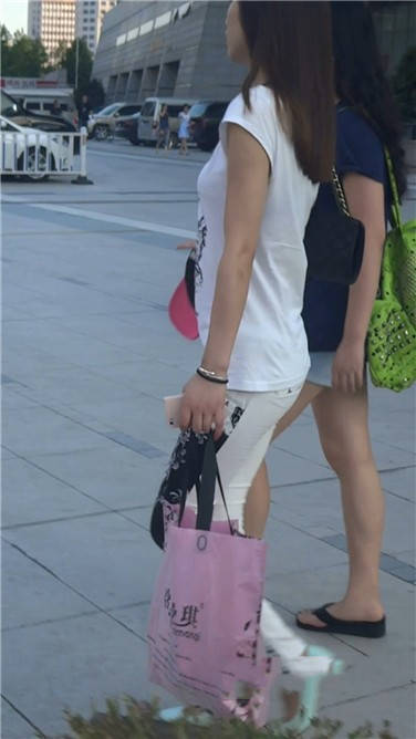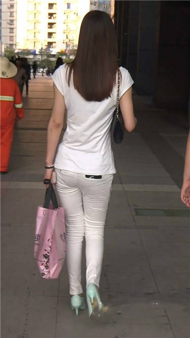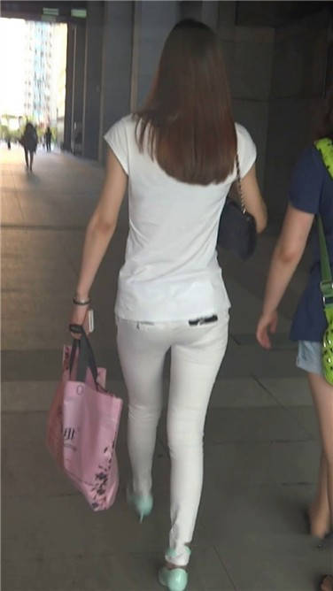 街拍苗条身材紧身白裤高跟鞋美女 编号3716