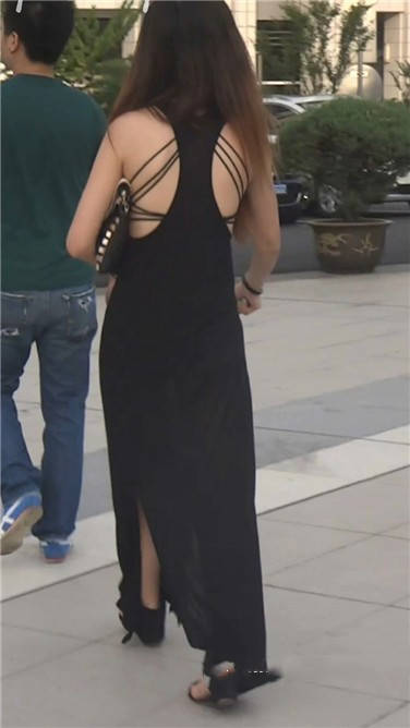 街拍性感露背黑色连衣裙美眉 编号3741