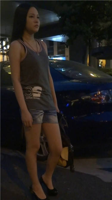 夜晚路边打电话的牛仔热裤妹子 编号3753