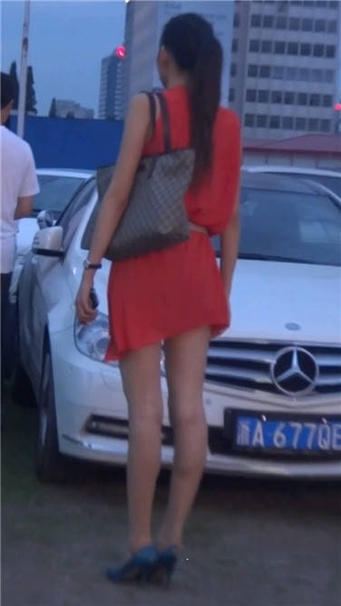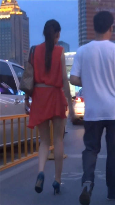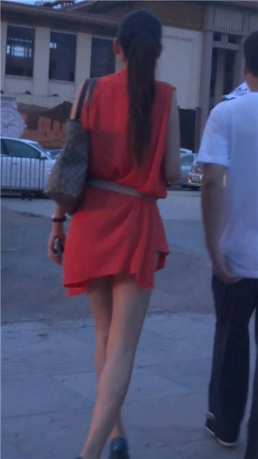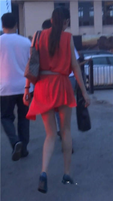 街拍红色连衣裙苗条美女姐姐 编号3832
