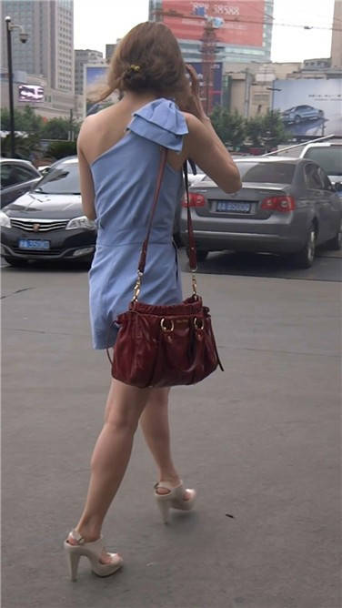街拍性感露肩装高跟鞋漂亮美女 编号3836