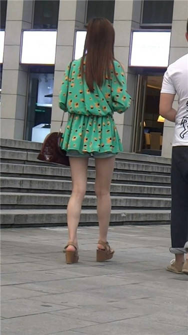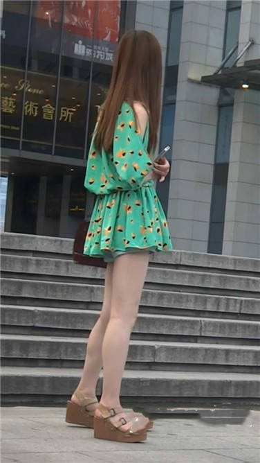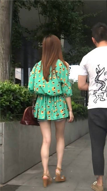 街拍碎花连衣裙小姐姐在等男友一起逛街 编号3849