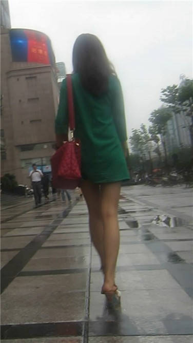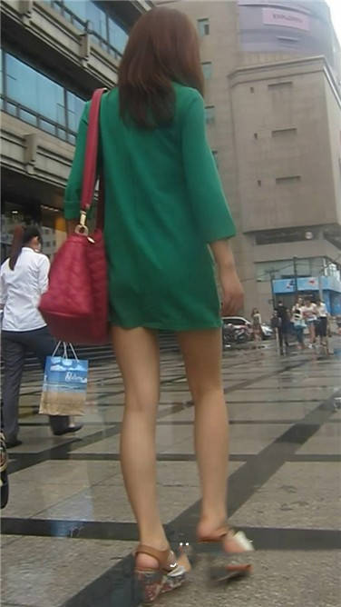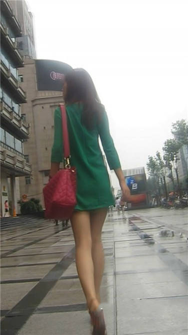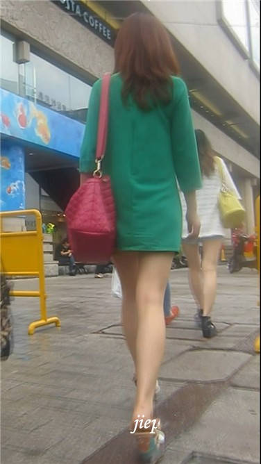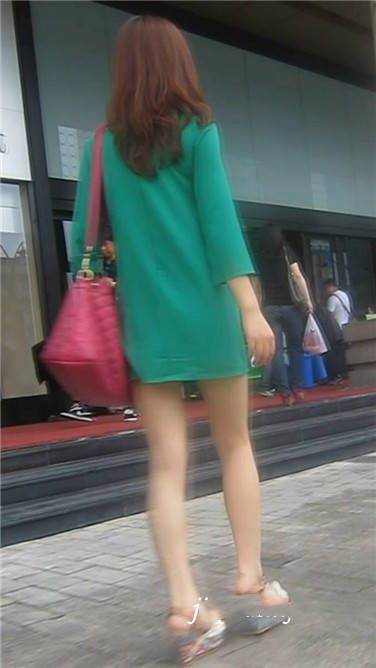 街拍绿色连衣裙好身材清秀妹子 编号3890