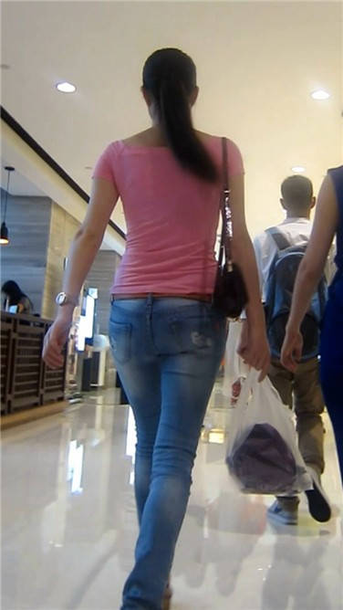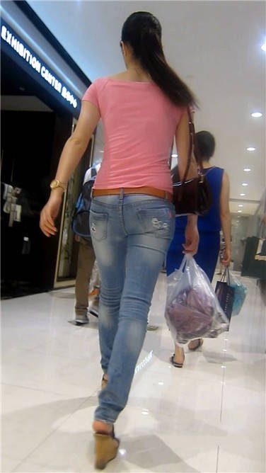 街拍极品紧身蓝牛圆臀性感少妇 编号3892