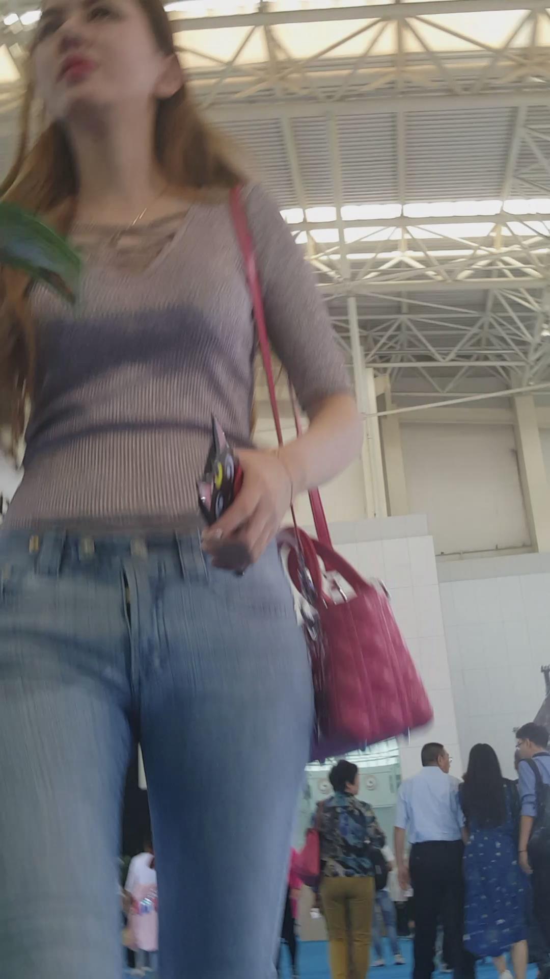 街拍紧身牛仔性感大美女编号3917