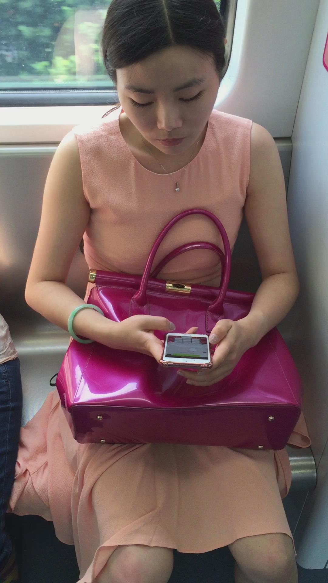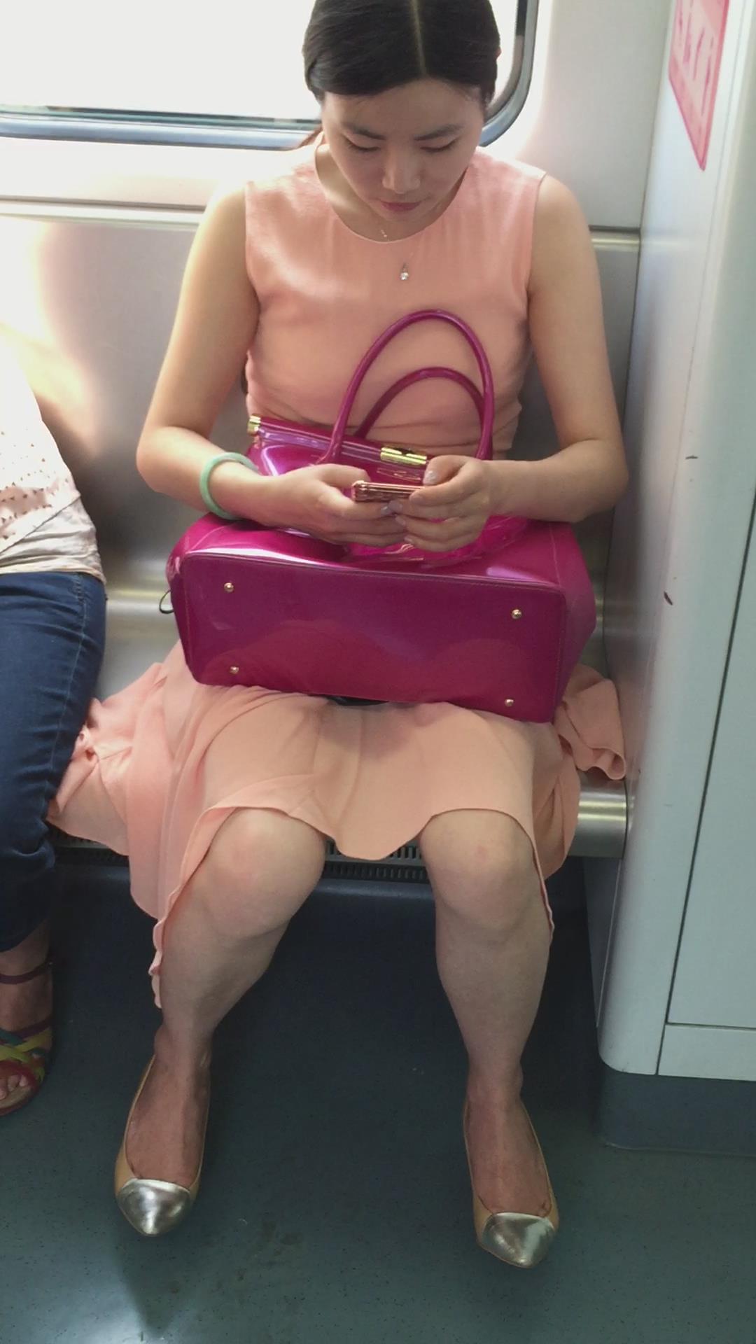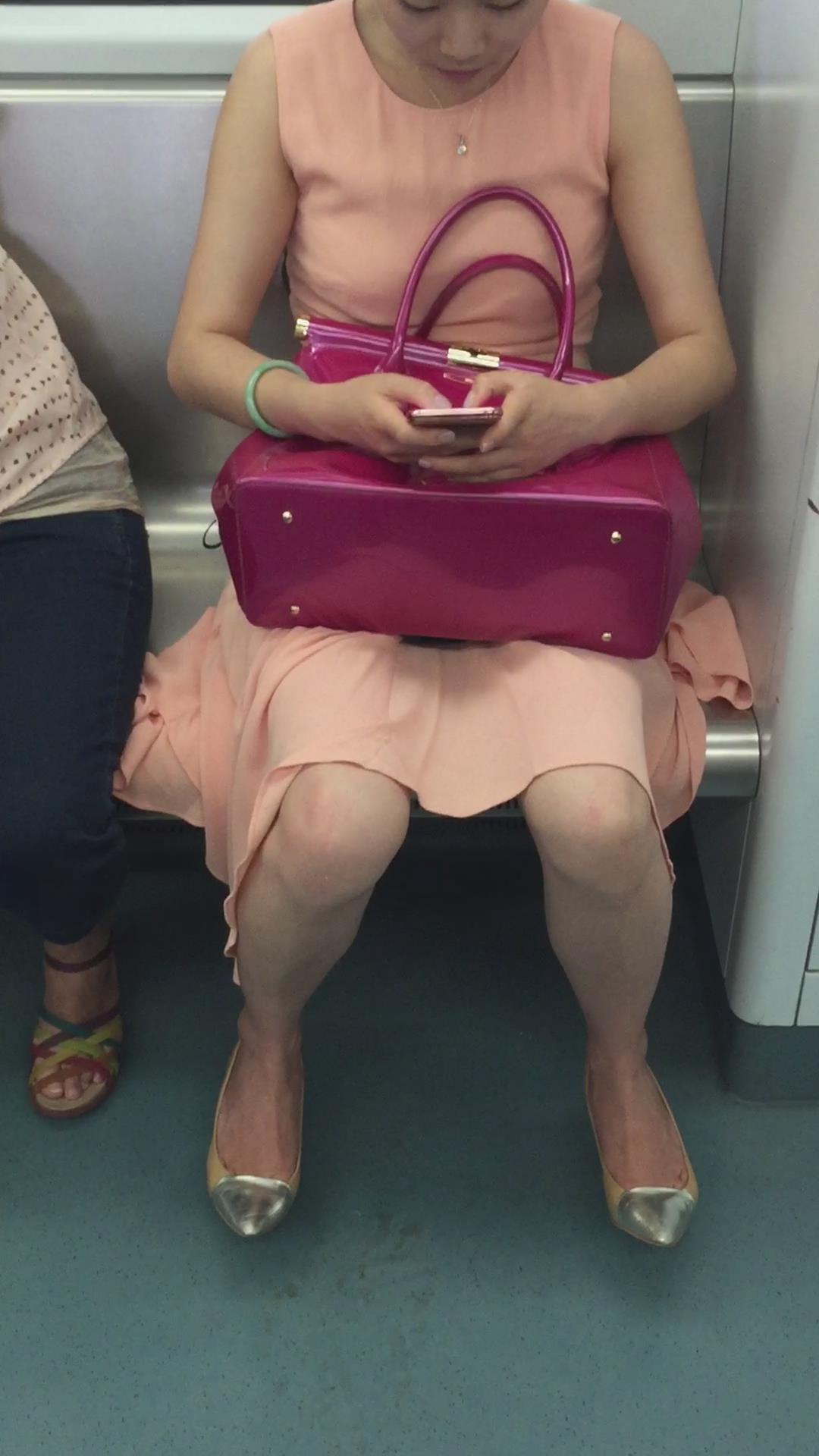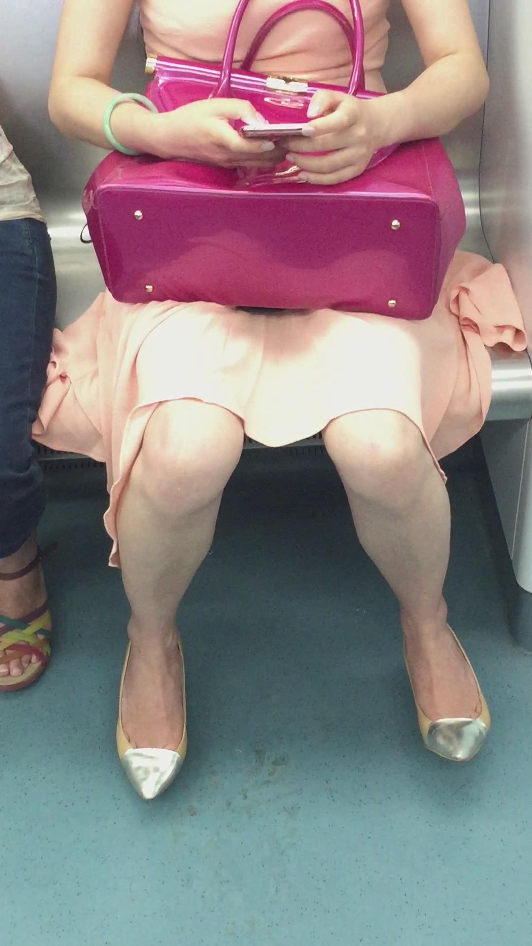 地铁上拍摄粉色连衣裙美少妇 编号5215