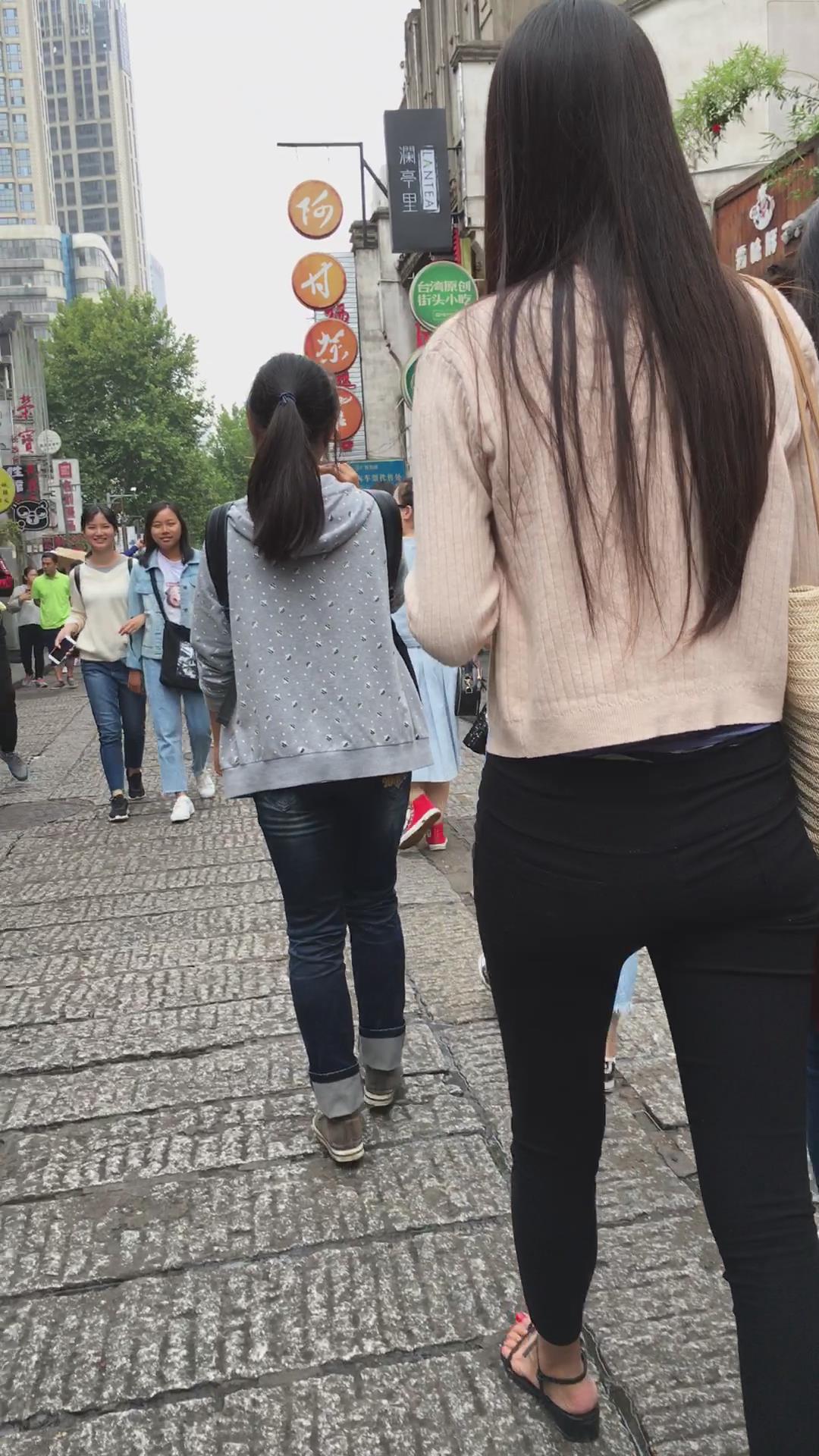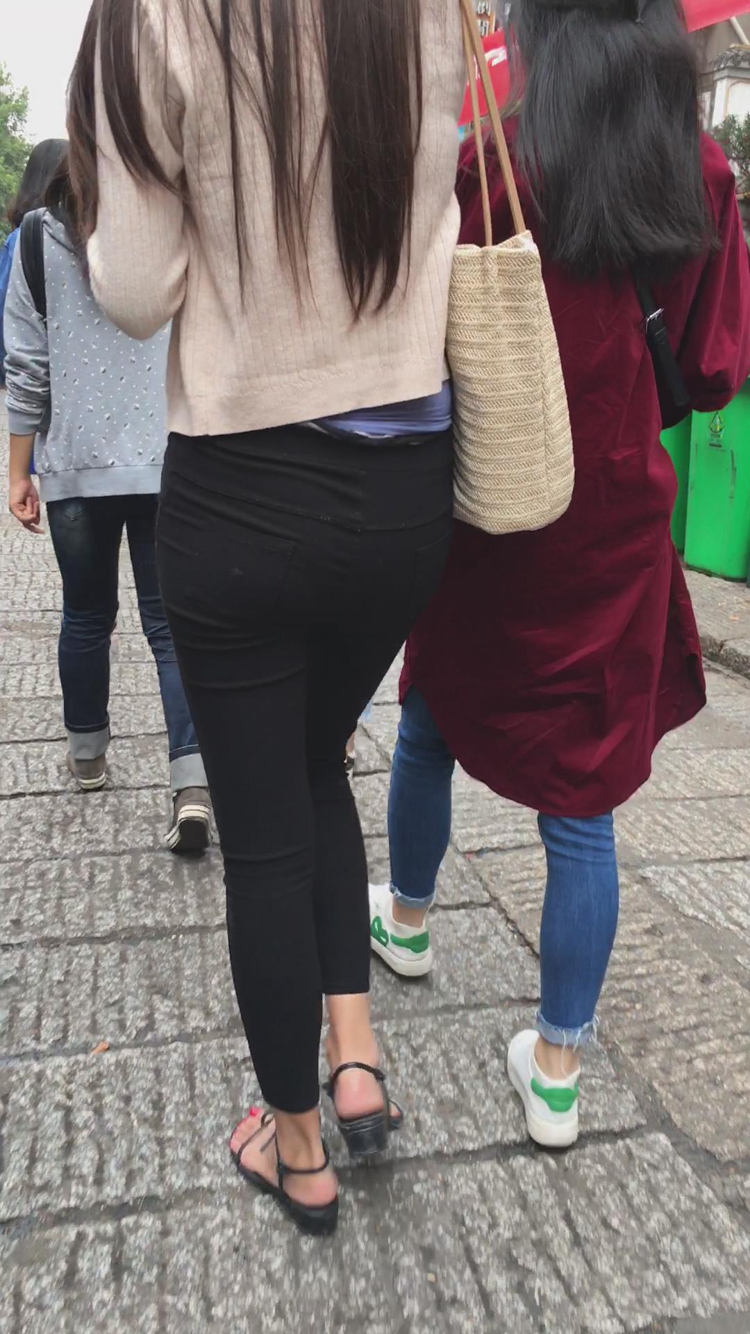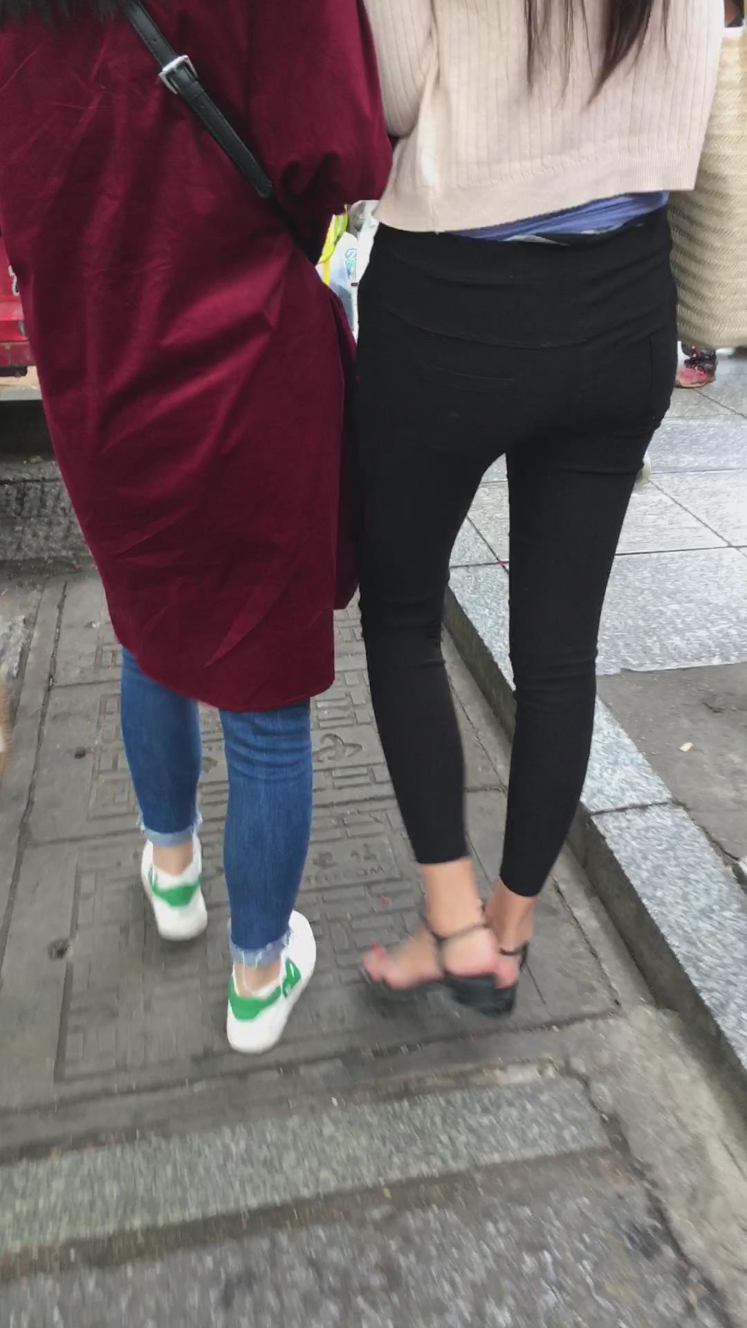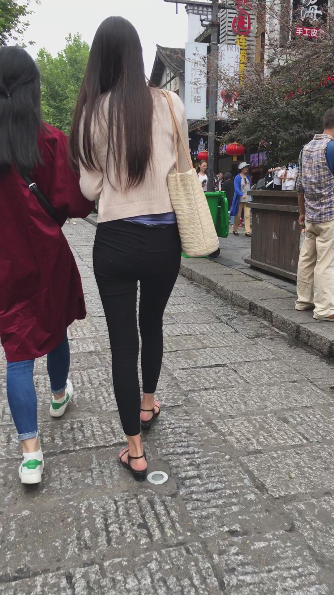 街拍米色小外套黑色紧身裤街拍美女视频 编号6074