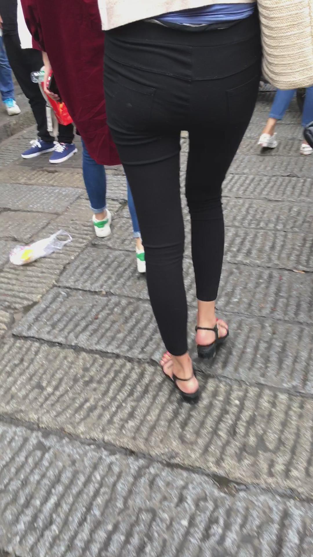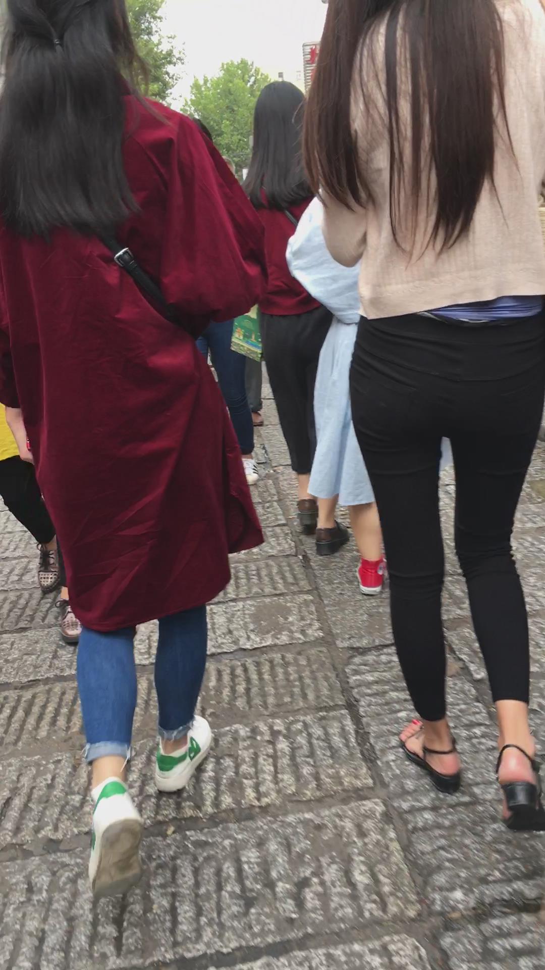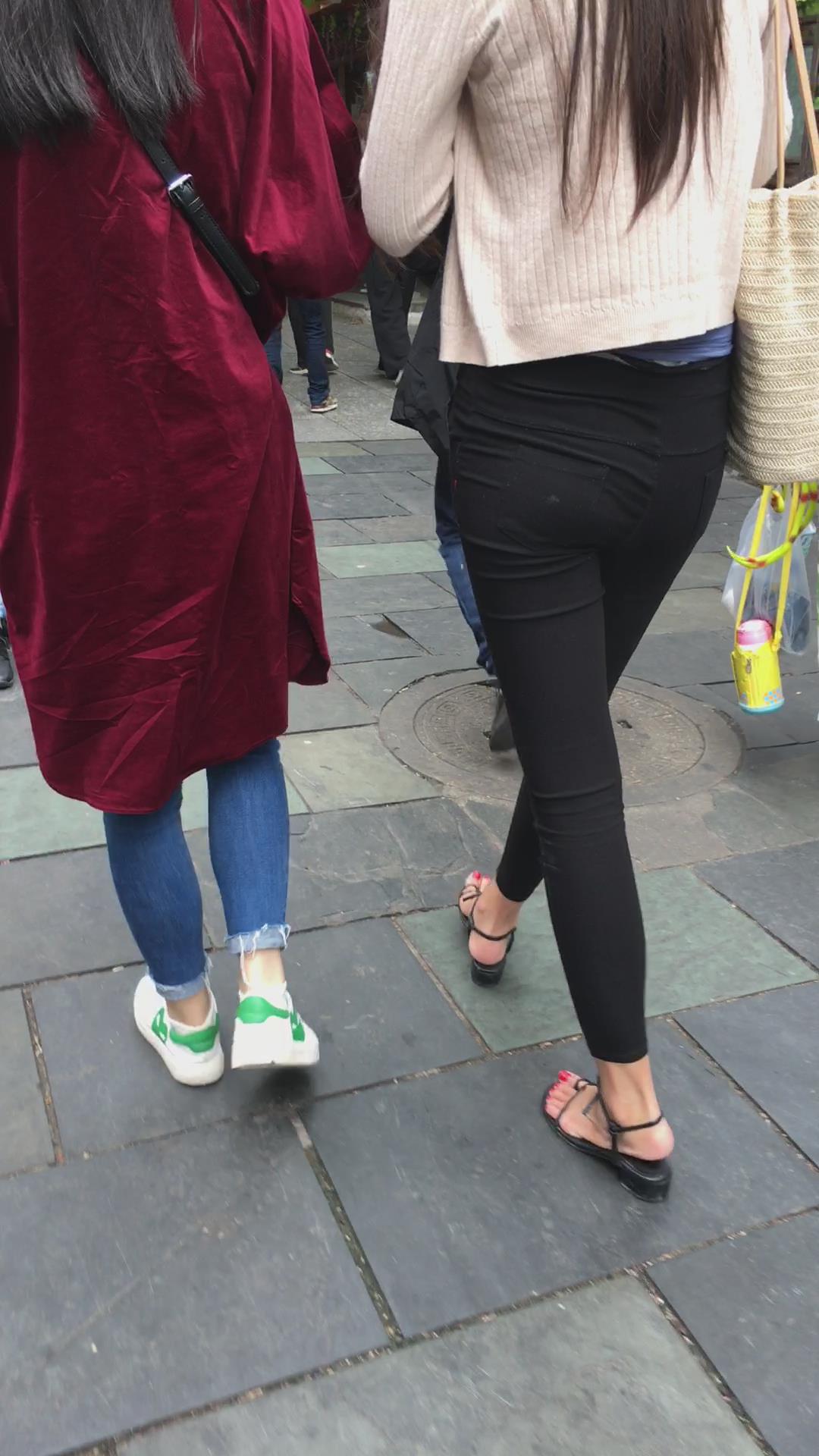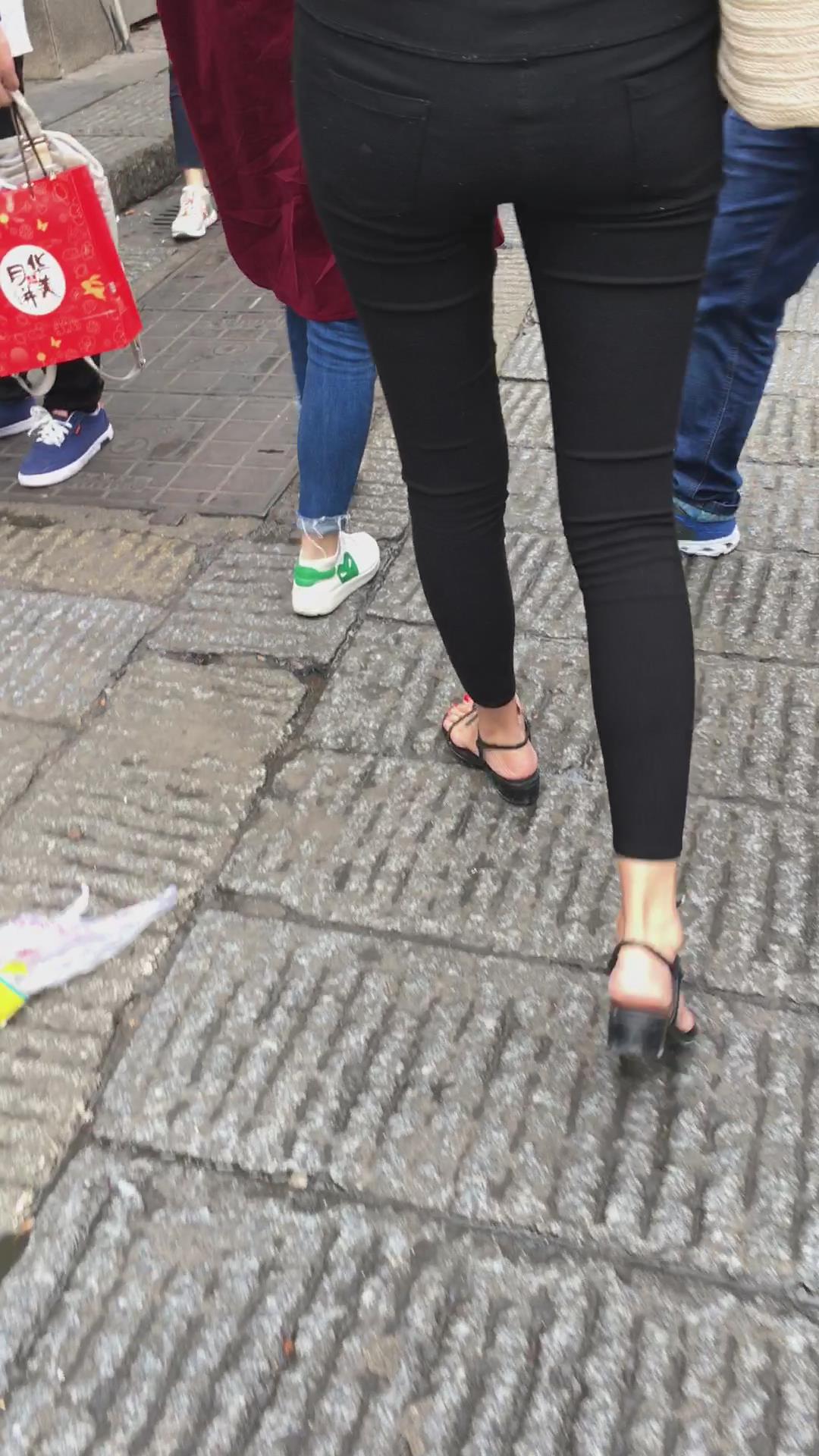街拍米色小外套黑色紧身裤街拍美女视频 编号6074