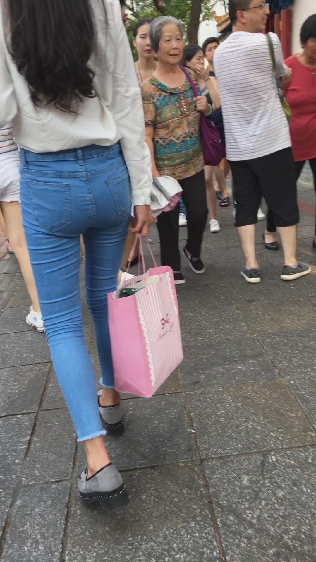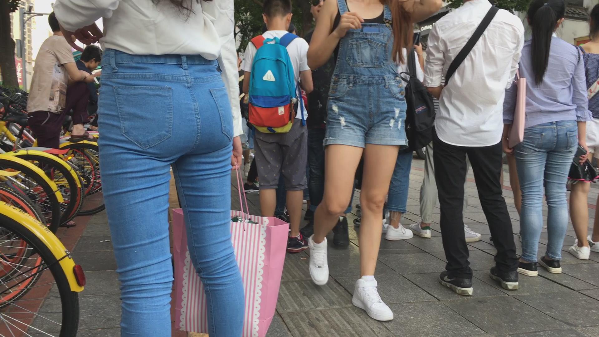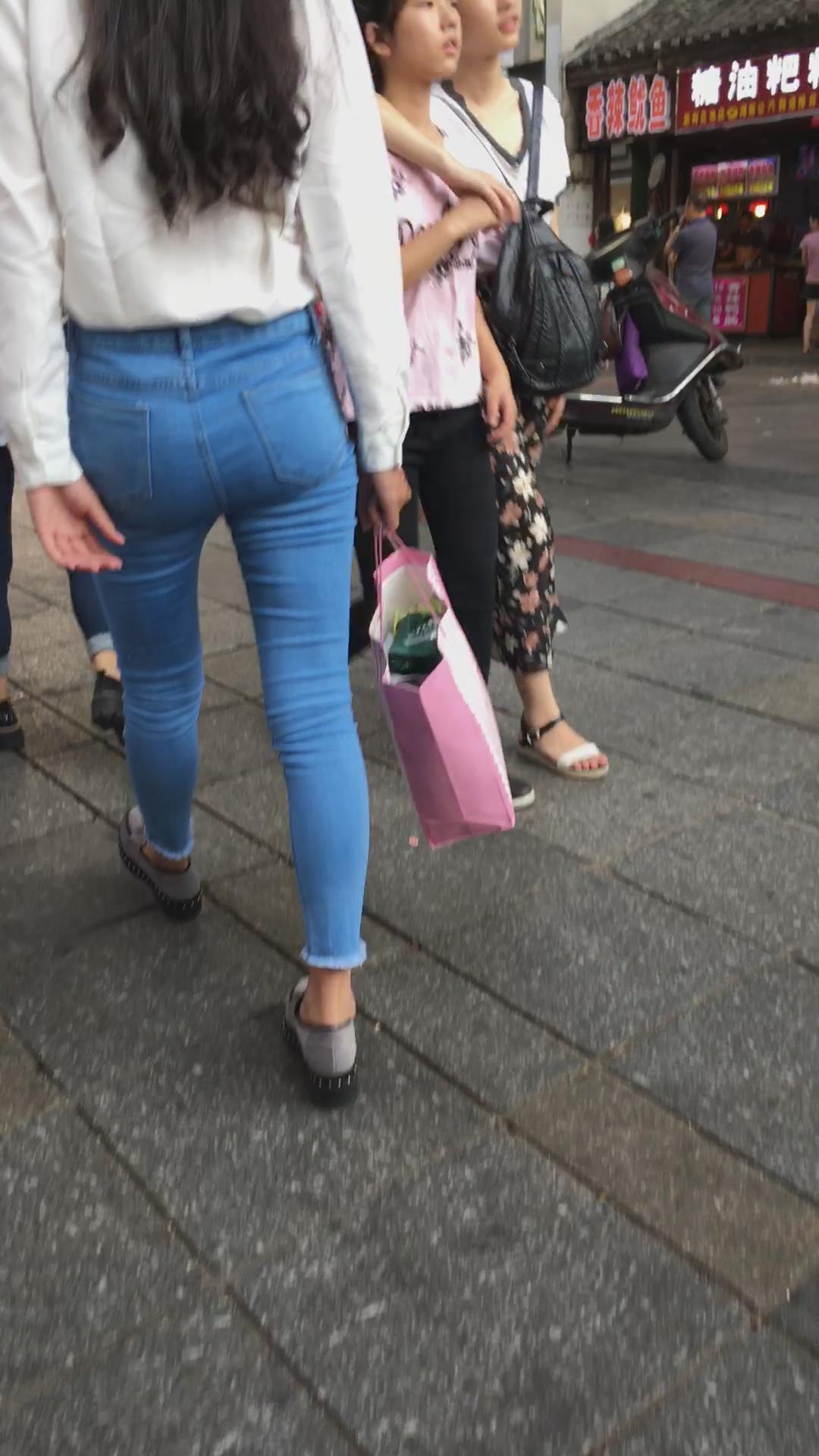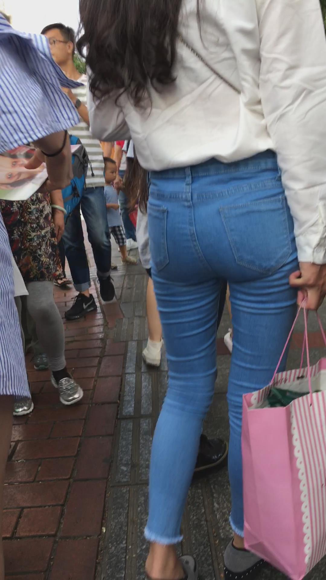 街拍绝世美臀紧身蓝色牛仔裤小清纯美女 编号6079
