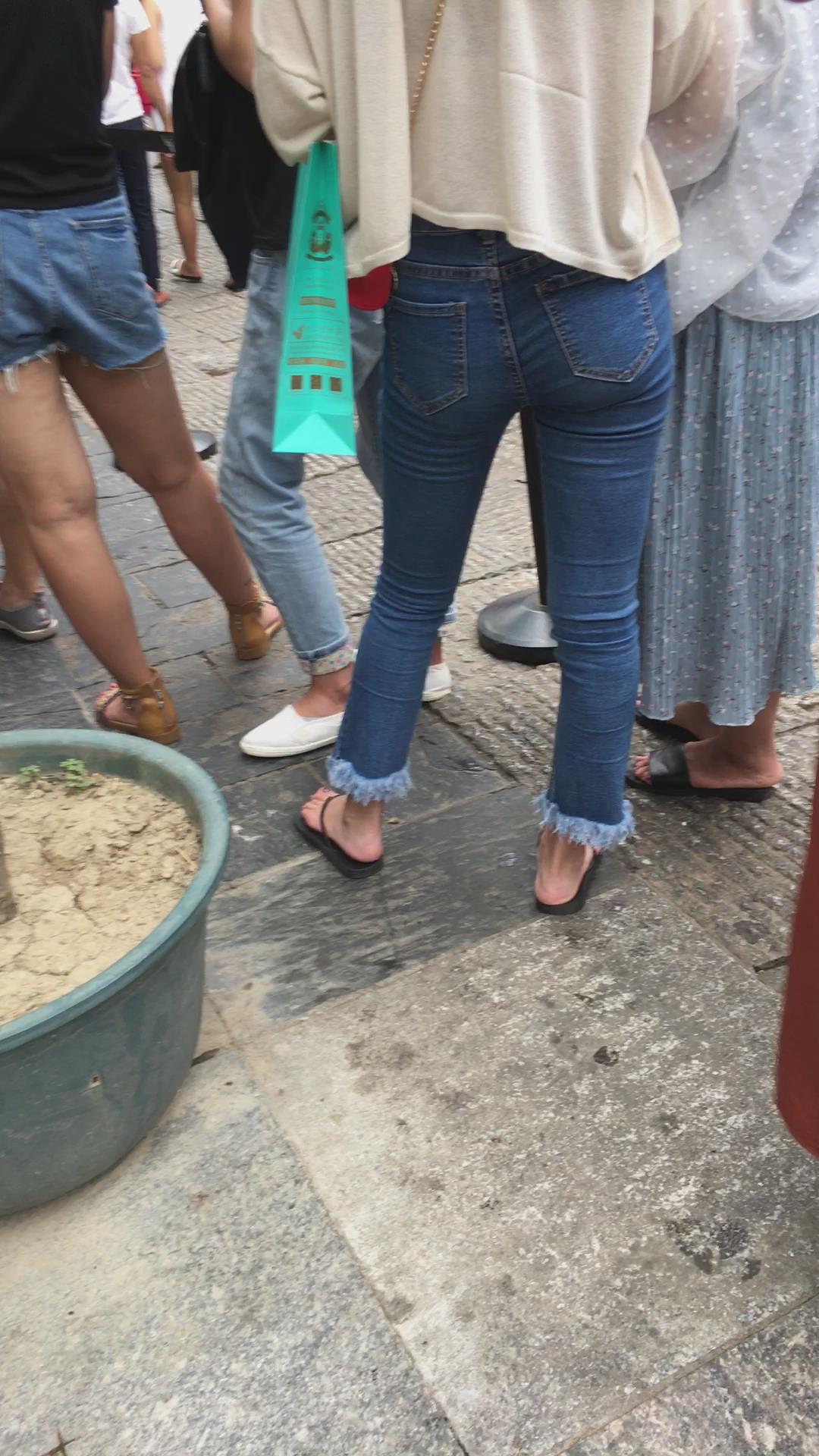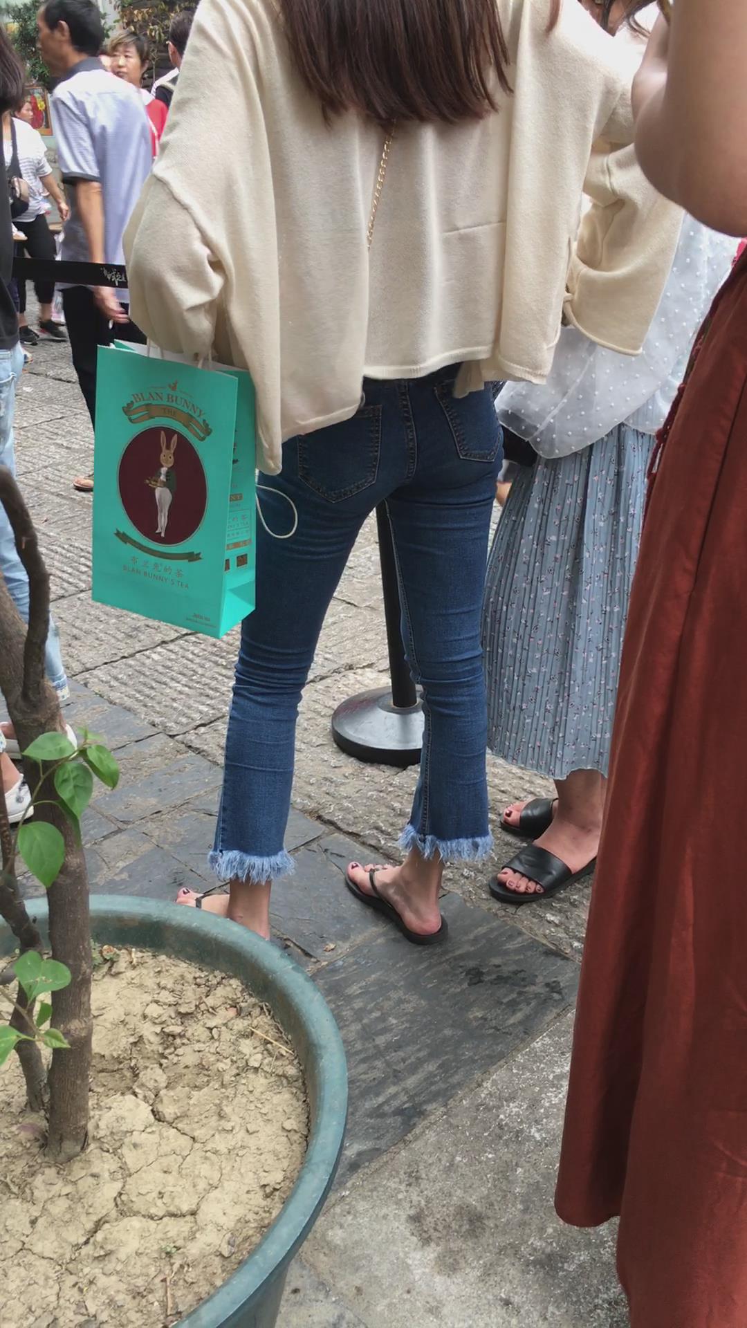 街拍清纯紧身蓝色牛仔裤可人娇小美女 编号6083